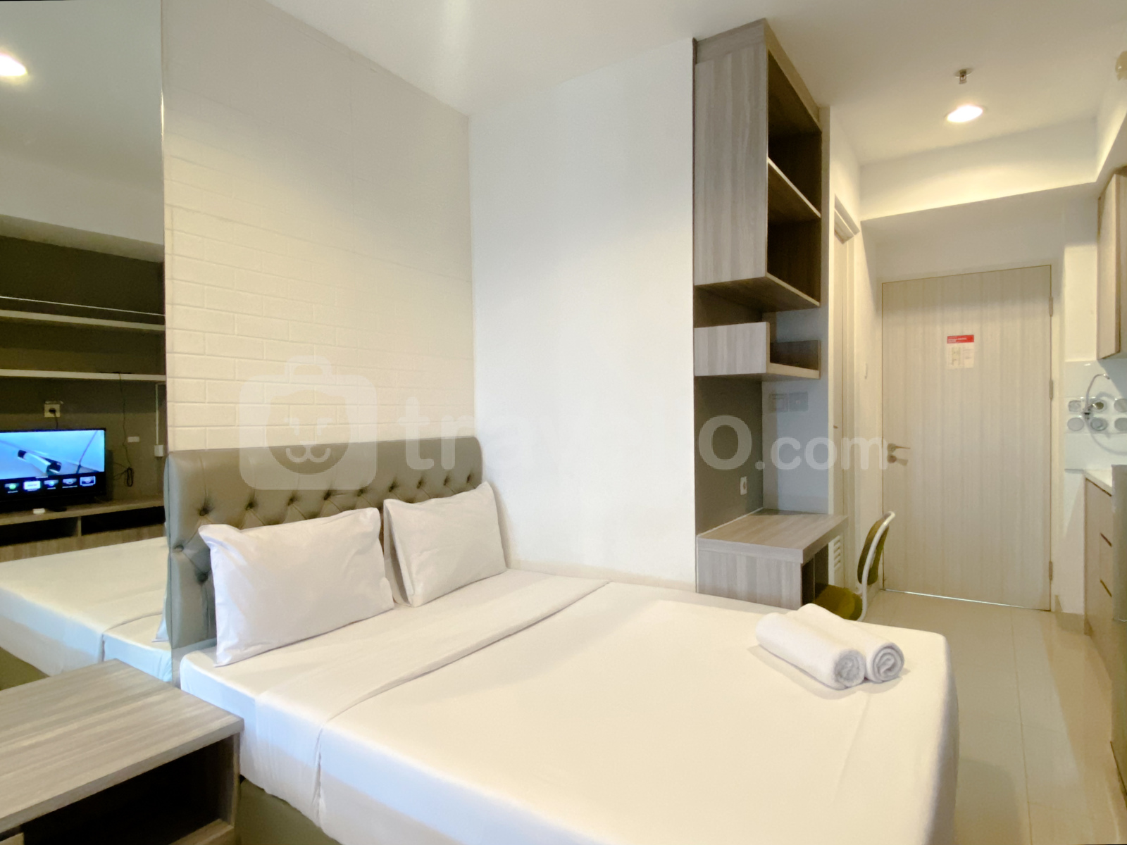 Nikmati pengalaman tinggal yang nyaman di apartemen studio yang rapi ini di Grand Kamala Lagoon. Hubungi kami sekarang untuk jadwal kunjungan!
