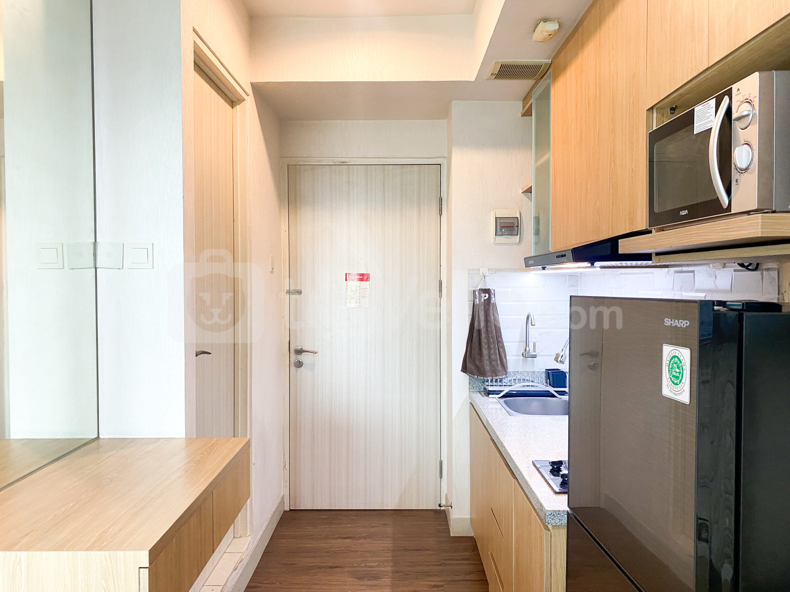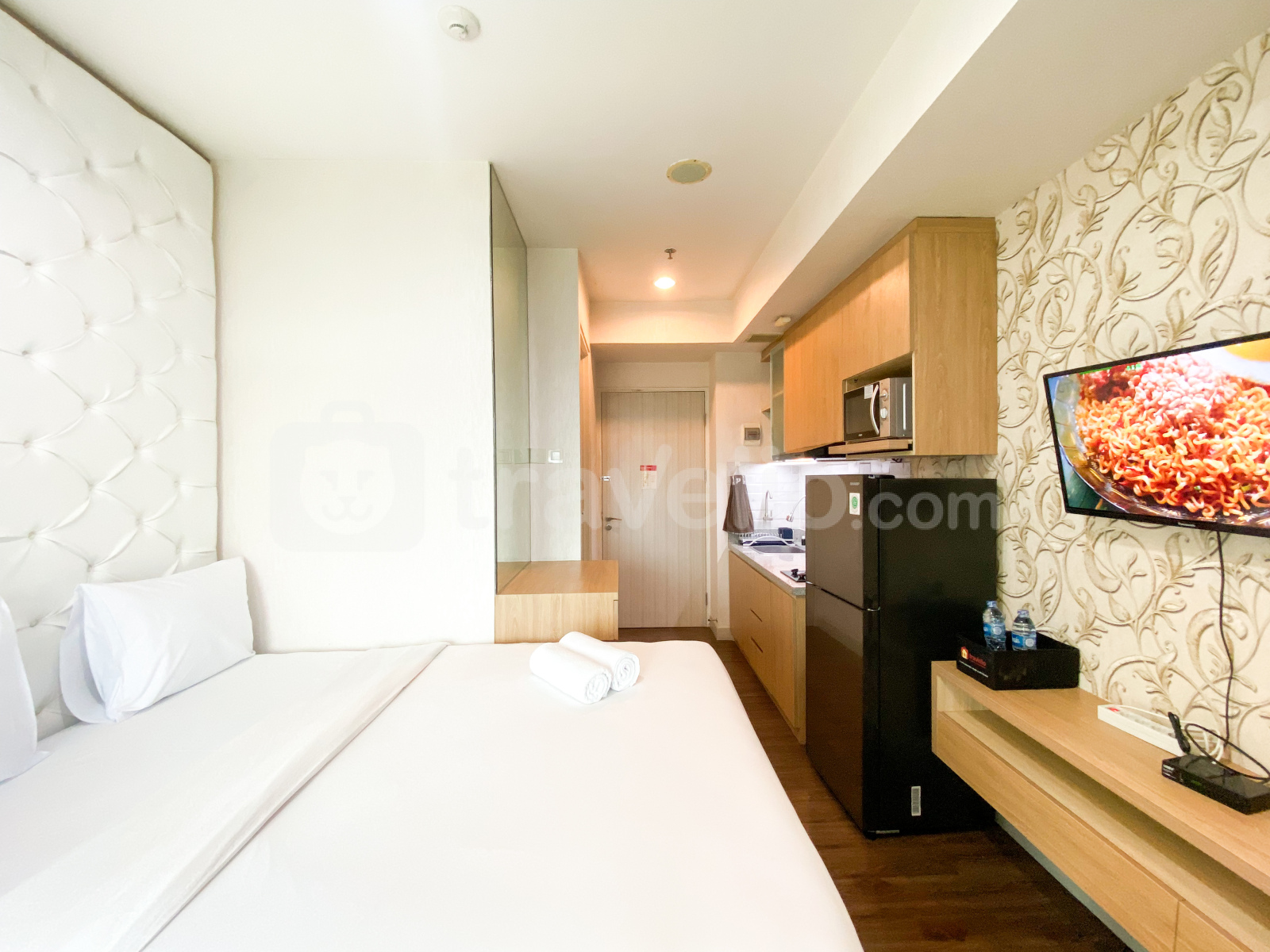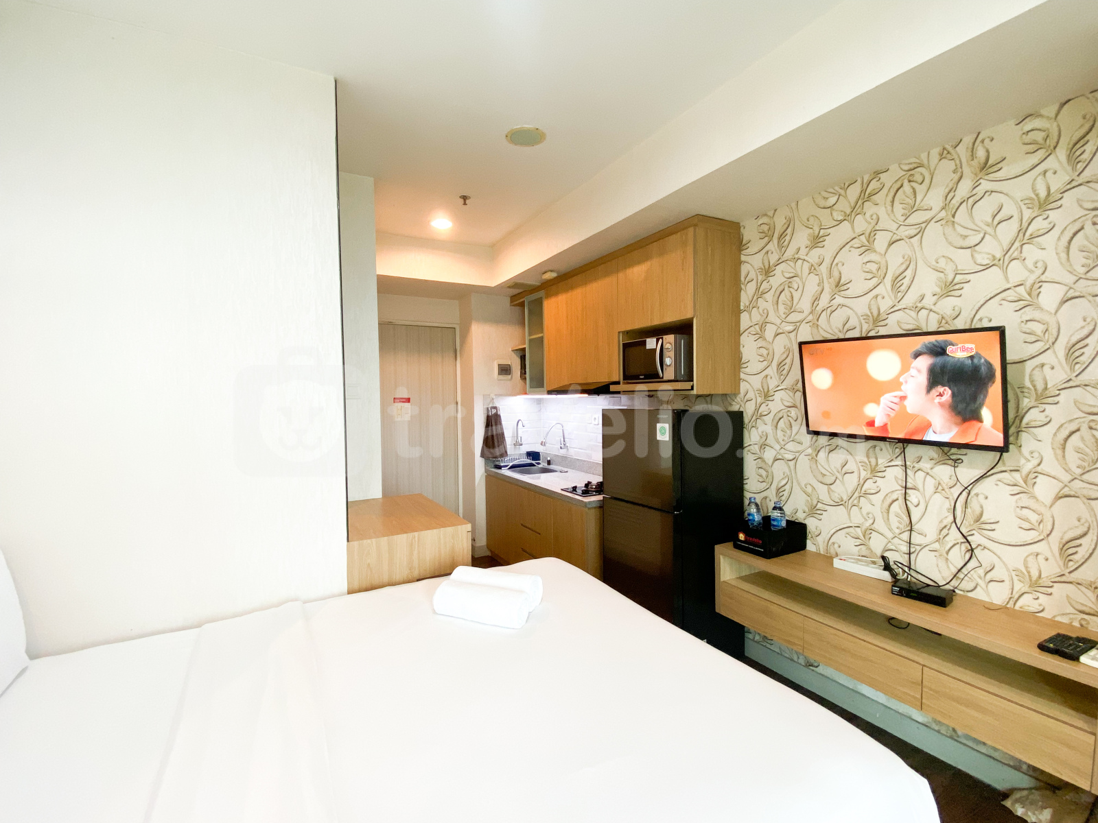 Apartemen studio ini memiliki 1 kamar tidur dan 1 kamar mandi, dengan luas yang nyaman sekitar 26,38 meter persegi. Dilengkapi dengan fasilitas penting termasuk TV, kulkas, dan microwave, memastikan pengalaman tinggal yang nyaman bagi penghuninya.