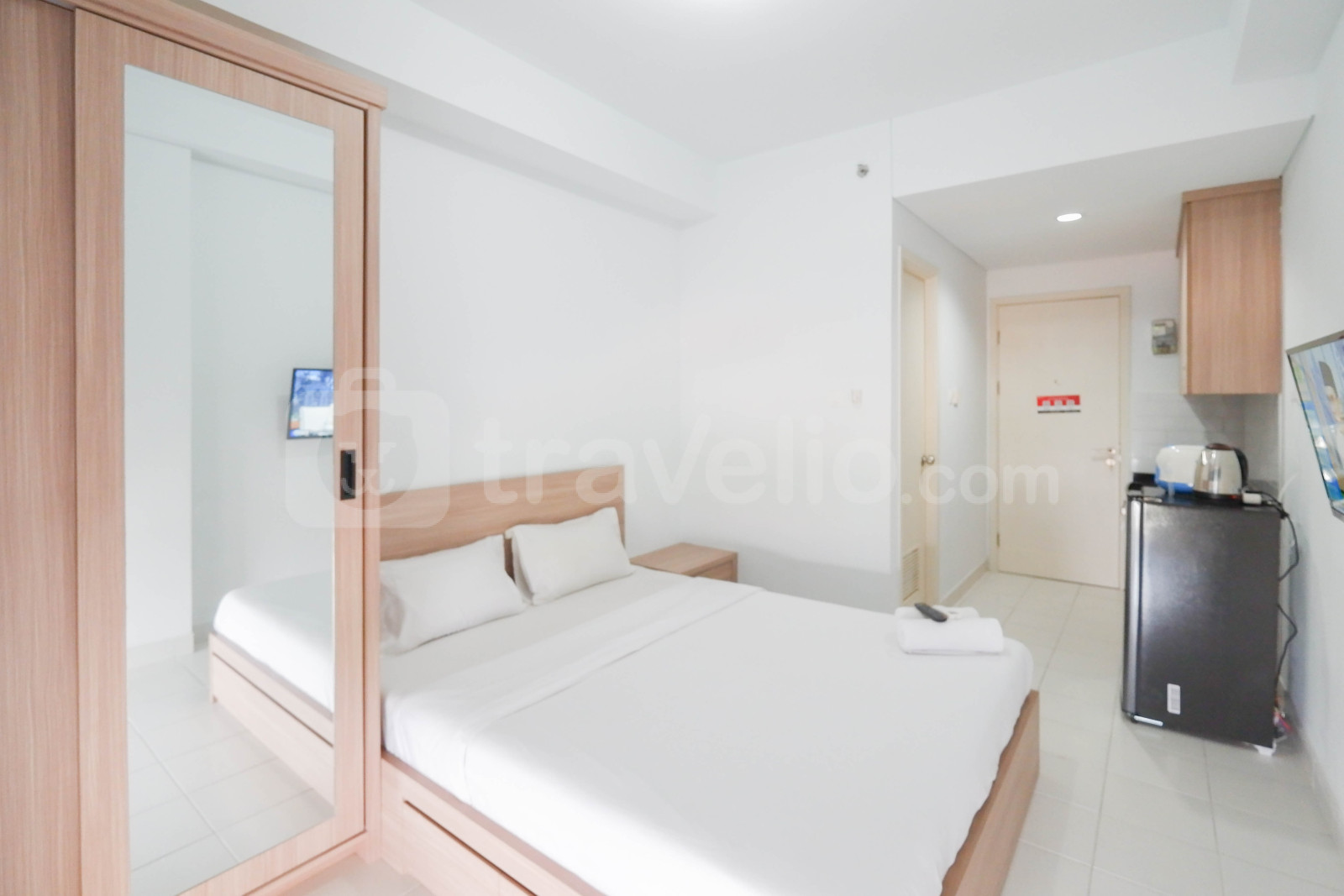 Unit-unit apartemen Apartemen Patraland Urbano yang dikelola oleh Travelio memiliki standar hotel berbintang untuk menjaga kenyamanan anda selama tinggal di sini. Unit ini bertipe Studio memiliki luas 21.41 meter persegi. Tiap kamar tidur memiliki kasur bertipe Queen Bed (160x200) dan dibalut dengan linen berkualitas. Unit ini juga dilengkapi dengan fasilitas dalam ruangan yang dapat anda gunakan untuk mempermudah kegiatan sehari-hari. Unit apartemen milik Travelio dapat disewa secara bulanan\ dan tahunan.