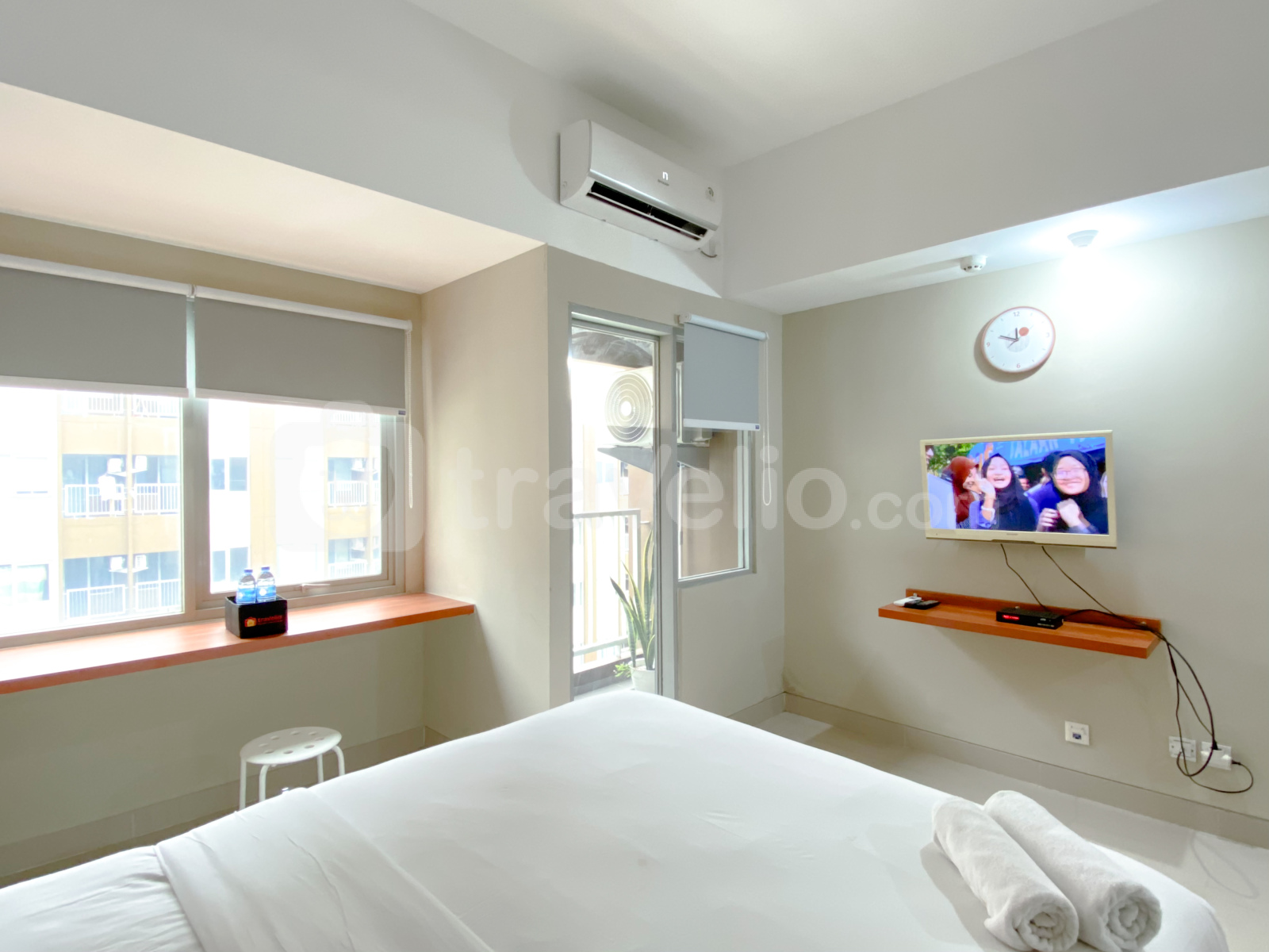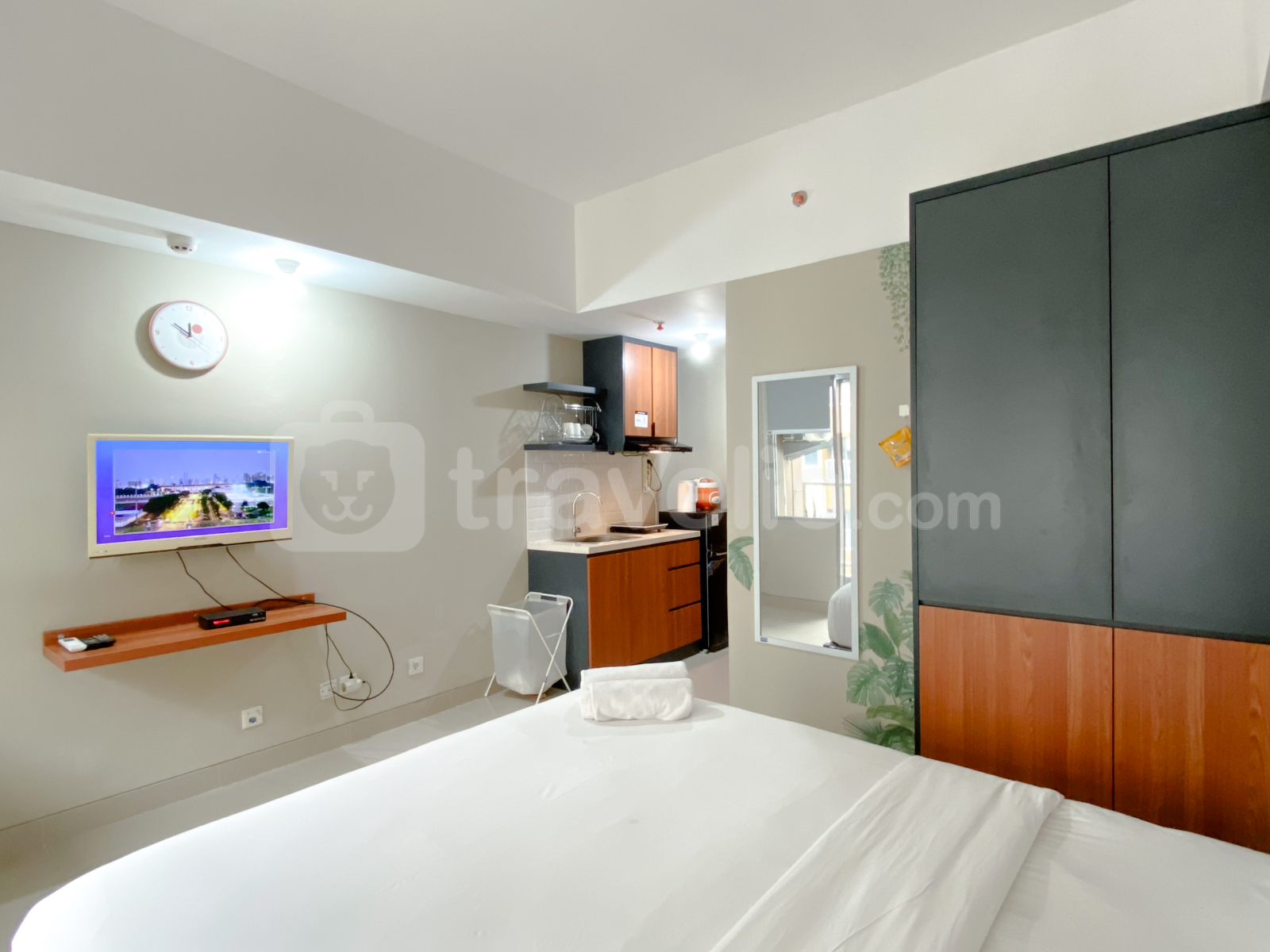 Perkenalkan, ini adalah Grey Toned Studio at LRT City Jatibening Apartment By Travelio. Studio ini menawarkan ruang tinggal yang nyaman dengan satu kamar tidur dan satu kamar mandi, cocok untuk individu atau pasangan yang mencari kenyamanan dan fasilitas modern. Unit ini dilengkapi dengan fasilitas penting seperti TV dan kulkas, memastikan tinggal yang nyaman bagi penghuni. Apartemen LRT City Jatibening memiliki beragam fasilitas gedung untuk meningkatkan gaya hidup penghuninya, termasuk keamanan 24 jam, CCTV di area publik, lintasan jogging, fasilitas locker, fasilitas pertemuan, dan kolam renang.