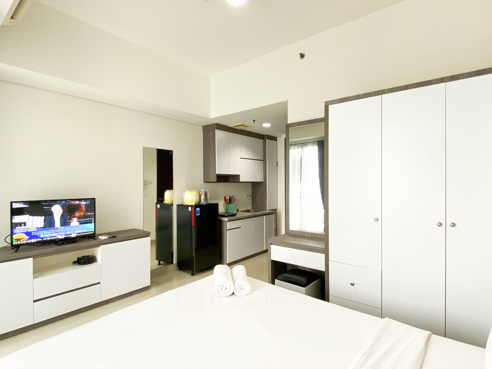 Selamat datang di Modern Look Studio at LRT City Bekasi Apartment By Travelio, unit studio seluas 27,57 m² yang memadukan desain modern dengan fungsionalitas maksimal. Sangat ideal untuk para profesional muda, pelajar, atau penghuni kota yang dinamis, unit ini menawarkan kenyamanan dan kepraktisan di pusat kawasan Bekasi Timur. Unit ini menghadirkan suasana modern dengan nuansa warna netral dan furnitur minimalis yang memperluas kesan ruang. Dilengkapi dengan fasilitas esensial seperti TV dan kulkas, unit ini siap untuk langsung dihuni. Berlokasi strategis dengan akses langsung ke Stasiun LRT Bekasi Timur, mobilitas ke Jakarta dan sekitarnya menjadi lebih efisien. Fasilitas gedung turut menunjang kualitas hidup Anda, mulai dari kolam renang, jogging track, taman bermain anak, hingga keamanan 24 jam dengan CCTV di area publik demi kenyamanan dan keamanan penghuni.