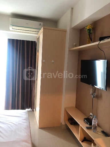 Selain itu, fasilitas dalam ruangan seperti 1 kasur dengan masing-masing ukuran queen bed (160x200) berbalut linen kualitas hotel berbintang, pendingin ruangan, televisi, akses Wi-Fi gratis, perlengkapan mandi, peralatan makan dan memasak juga tersedia. Apartemen dengan ini dihiasi dengan dekorasi bergaya standar. Dari hunian seluas 24 sqm ini, Anda bisa melihat pemandangan kota yang indah.