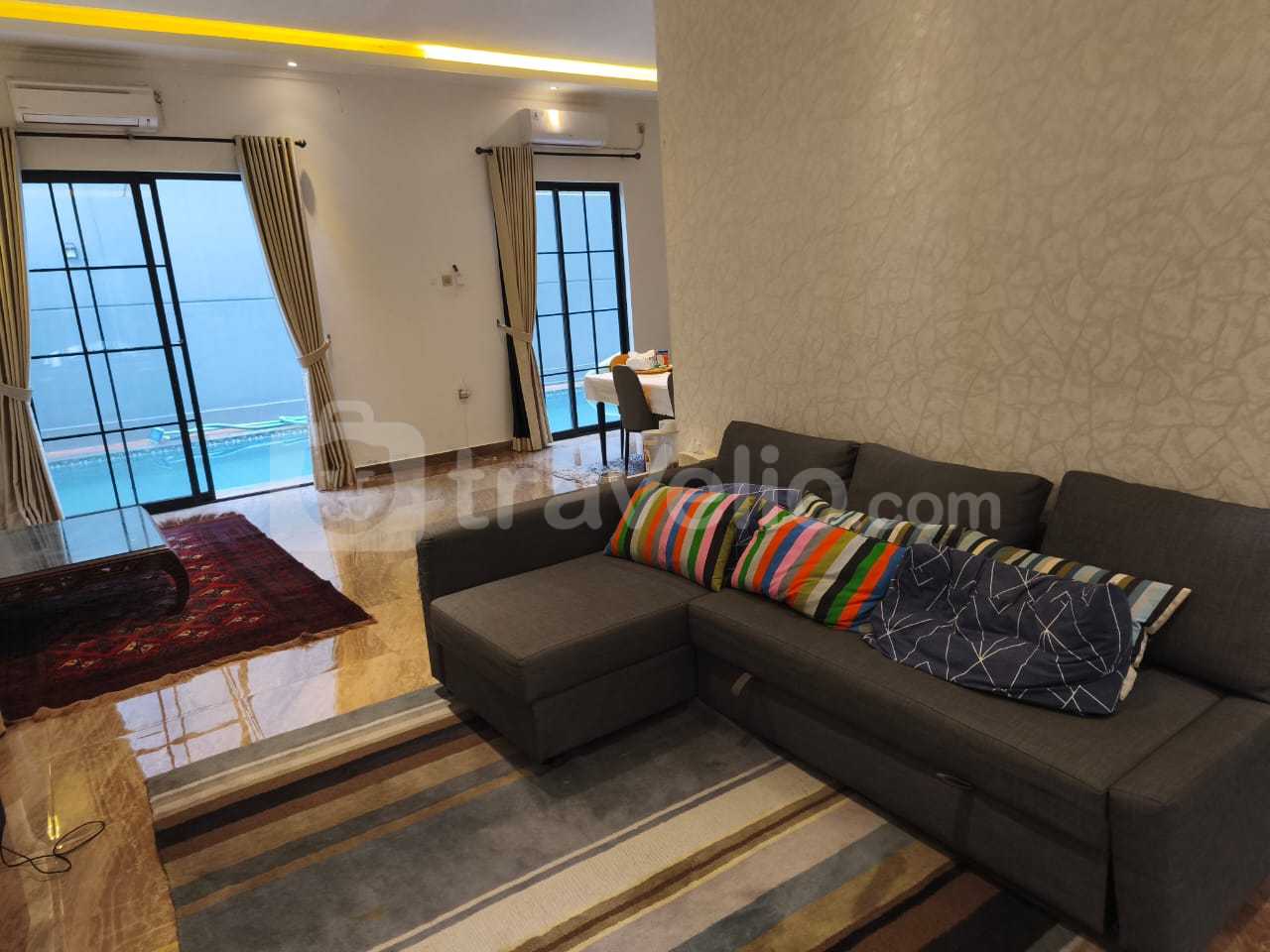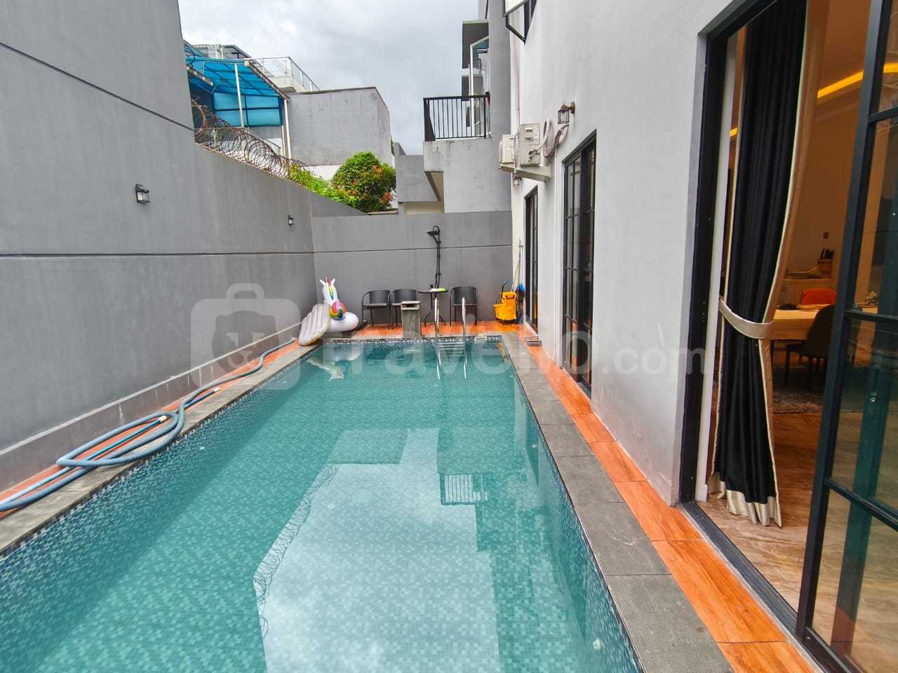 Dilengkapi dengan berbagai fasilitas seperti AC di seluruh ruangan, TV, kulkas, microwave, mesin cuci, dapur lengkap, akses internet, rooftop untuk bersantai, kolam renang, area parkir, dan CCTV di area publik untuk keamanan tambahan. Villa ini merupakan pilihan ideal bagi Anda yang menginginkan kenyamanan dalam suasana liburan yang tenang.