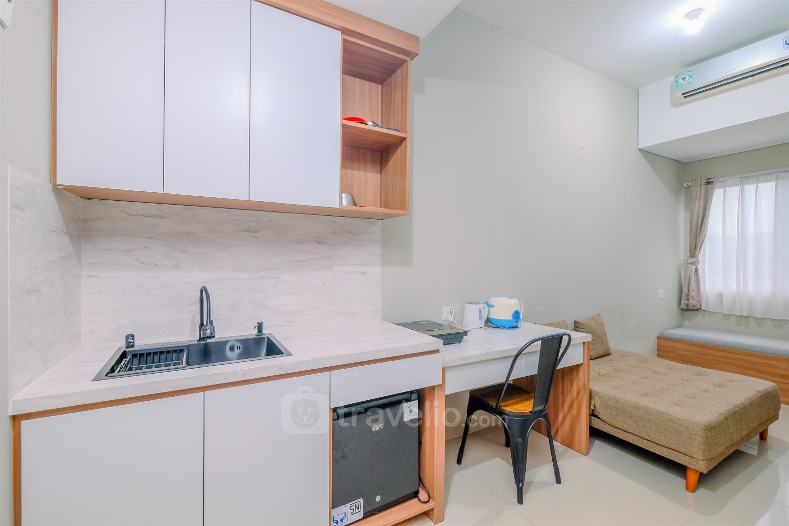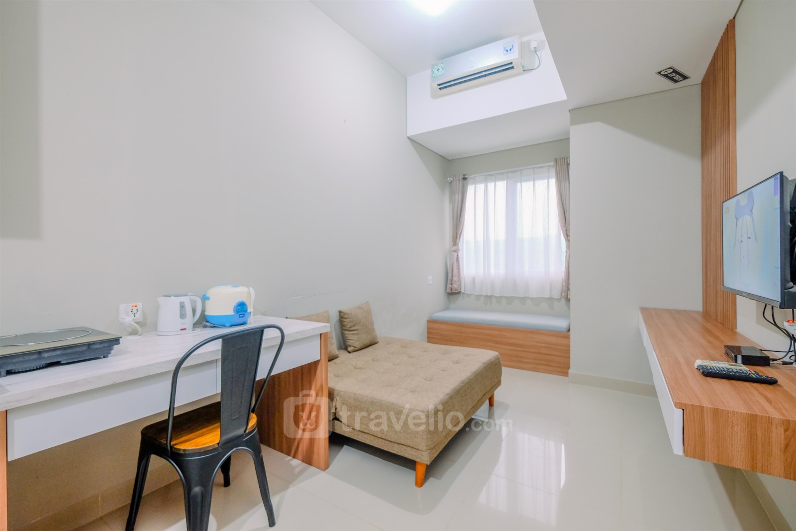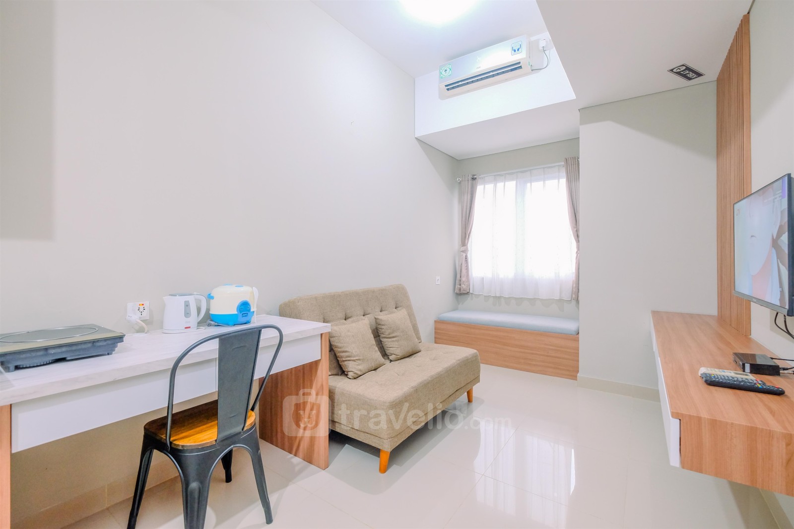 Memperkenalkan Modern Look 1BR at LRT City Sentul - Royal Sentul Park Apartment By Travelio. Unit yang dirancang dengan teliti ini memiliki luas 33,5 meter persegi dan menawarkan ruang hidup modern yang dihiasi dengan fasilitas penting untuk kenyamanan Anda.