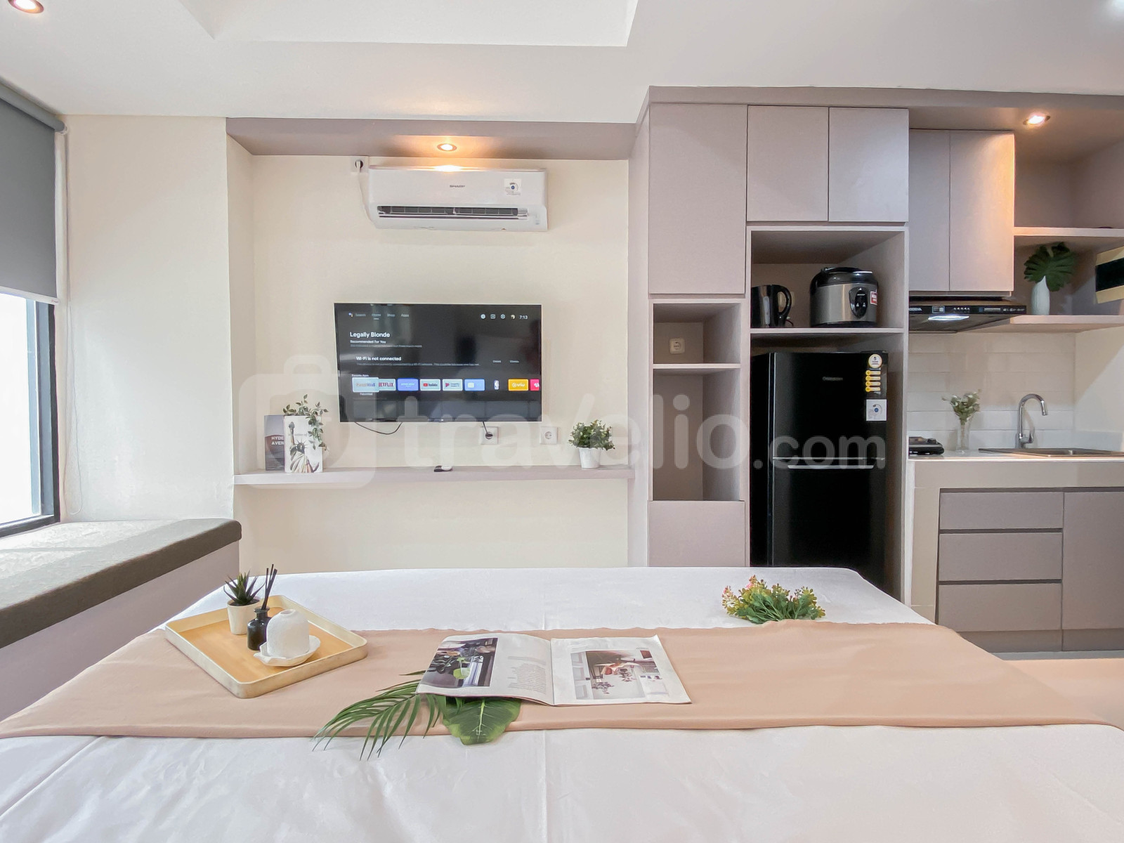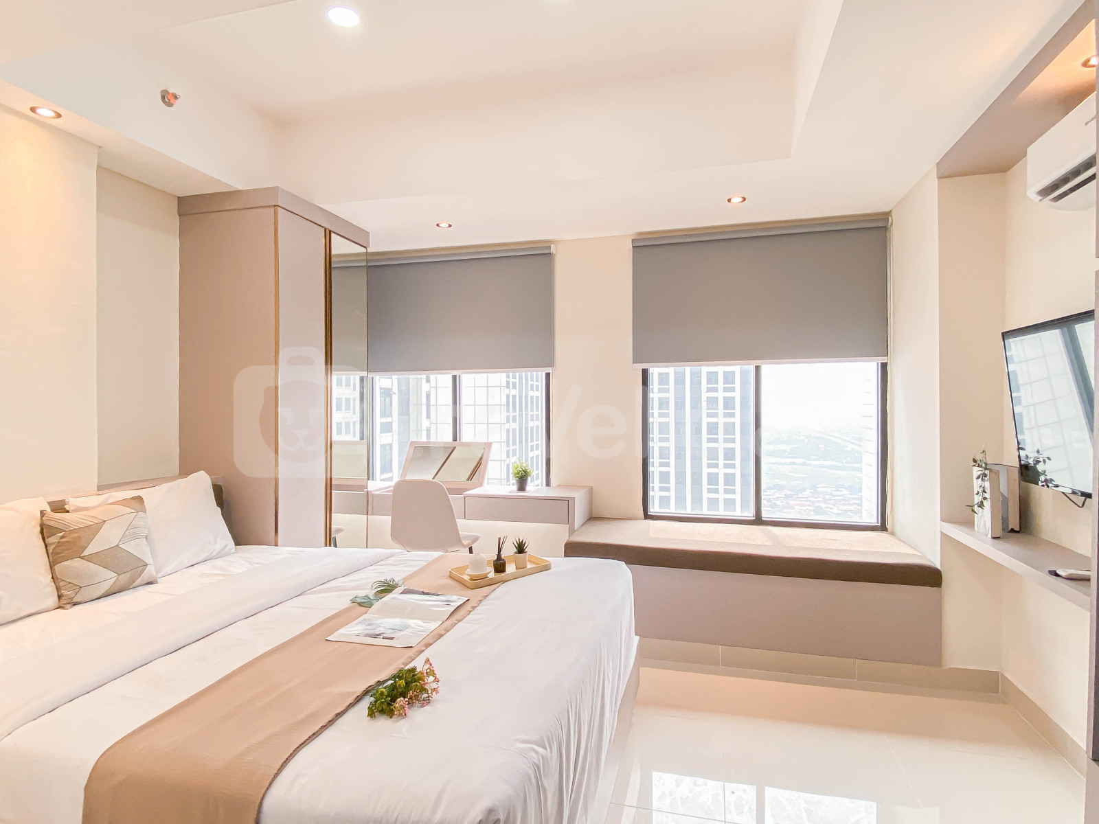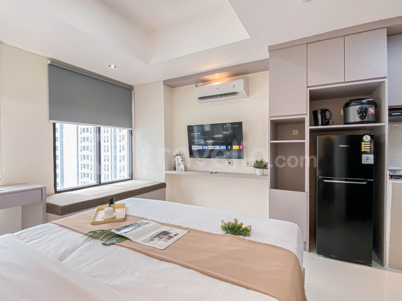 Unit studio ini menghadirkan desain modern minimalis yang nyaman dan fungsional, dilengkapi dengan TV dan kulkas untuk menunjang kebutuhan harian Anda. Apartemen ini juga menyediakan beragam fasilitas gedung seperti keamanan 24 jam, lapangan basket, CCTV area publik, lift, gym, jogging track, dan kolam renang, yang membuat pengalaman tinggal semakin menyenangkan dan seimbang antara gaya hidup aktif dan relaksasi.