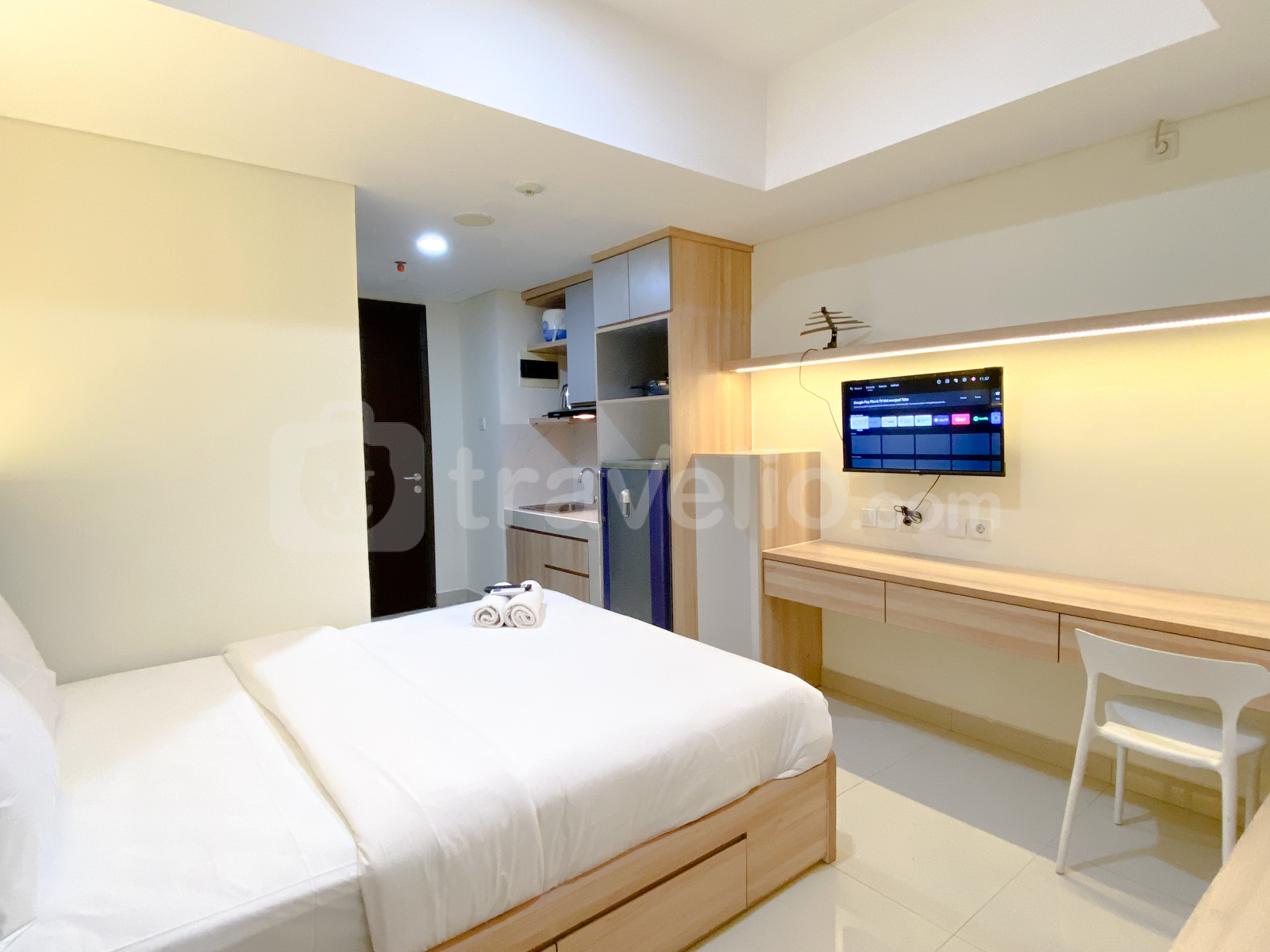 Perkenalkan, Simply Studio Pollux Chadstone Apartment, disajikan secara eksklusif oleh Travelio. Apartemen studio yang nyaman ini menawarkan ruang hidup minimalis namun nyaman, sempurna bagi individu yang mencari kesederhanaan dan kemudahan. Dengan fitur satu kamar tidur studio dan satu kamar mandi dalam tata letak kompak seluas 25 meter persegi, apartemen ini menyediakan lingkungan hidup yang fungsional dan efisien. Dilengkapi dengan fasilitas penting termasuk TV, kulkas, dan pemanas air, penghuni dapat menikmati kenyamanan modern dalam ruang terbatas mereka. Penghuni akan menghargai fasilitas penting gedung seperti keamanan 24 jam, lapangan basket, pengawasan CCTV di area publik, pusat kebugaran, taman langit, dan kolam renang.