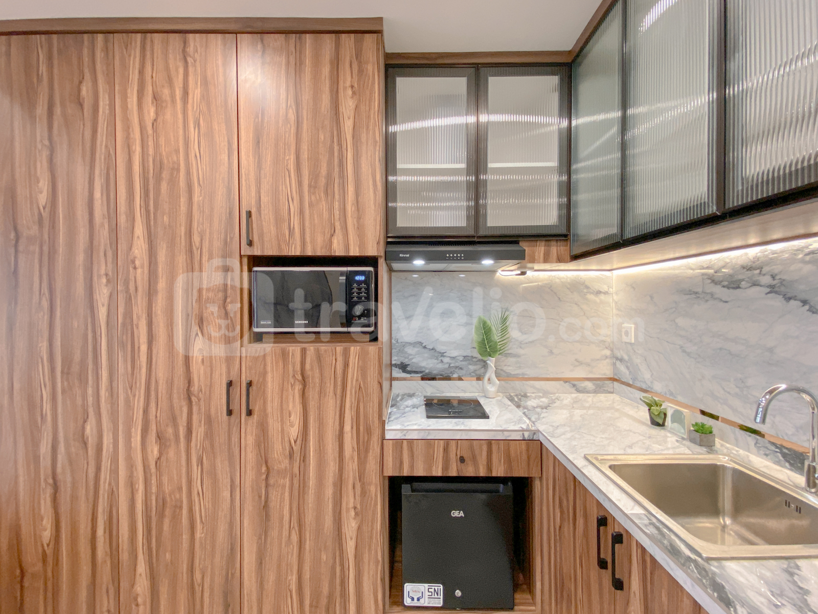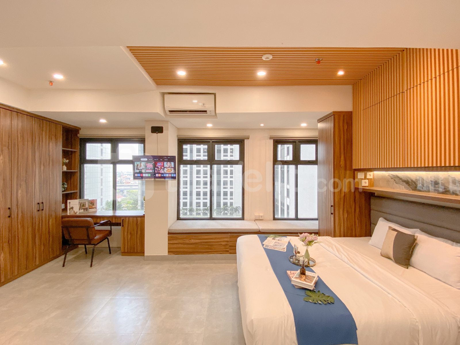 Unit ini telah dilengkapi fasilitas seperti TV, kulkas, microwave, dan water heater untuk memenuhi kebutuhan harian Anda.