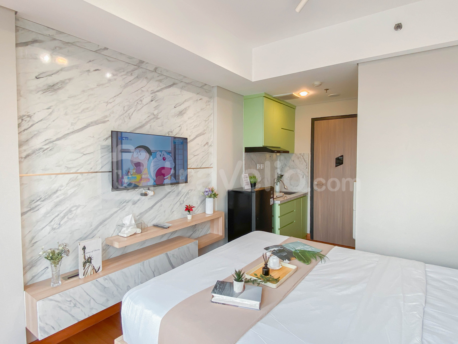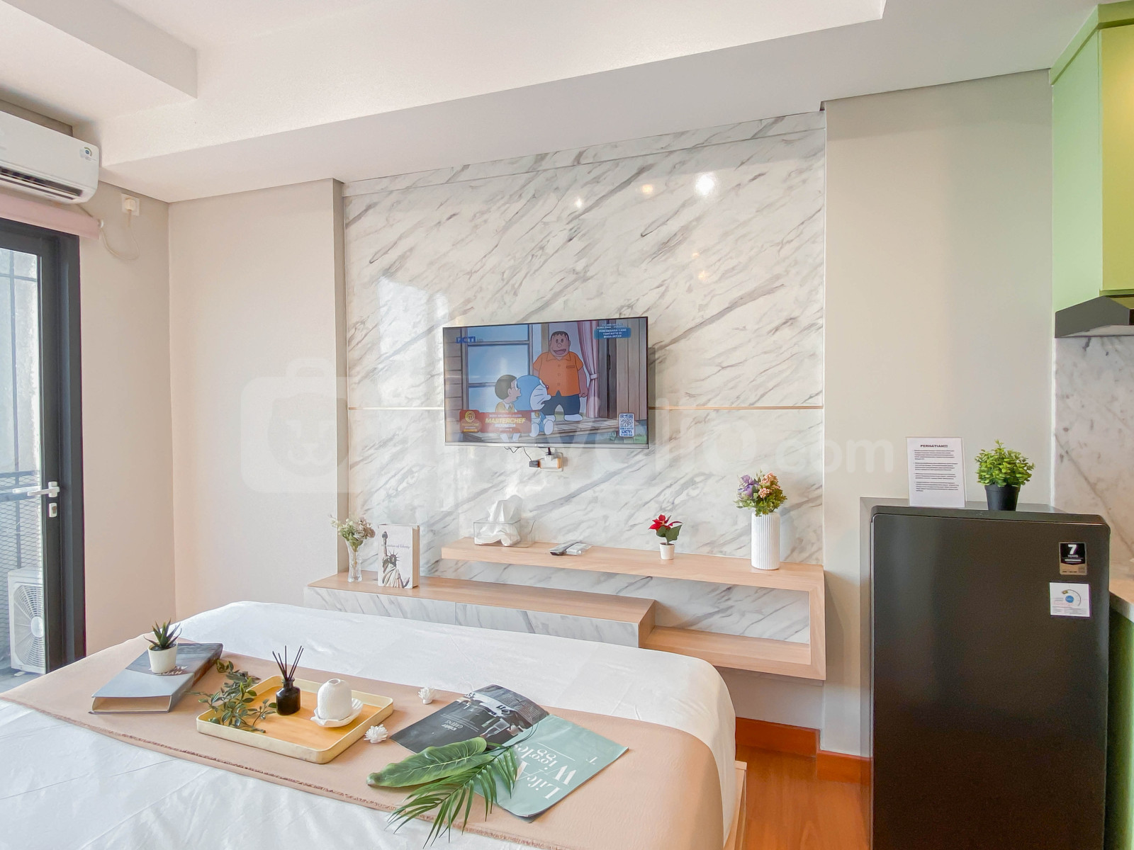 informasi sewa Warm Minimalist Studio Apartment Monroe Tower By Travelio