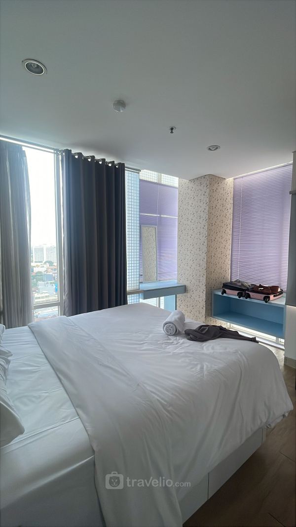 Unit apartemen ini dilengkapi dengan 1 kasur dengan masing-masing ukuran queen bed (160x200) berbalut linen kualitas hotel berbintang, pendingin ruangan, televisi, akses Wi-Fi gratis, perlengkapan mandi, peralatan makan dan memasak. Anda yang menginap di apartemen ini juga akan menemukan keamanan 24 jam, kartu akses, CCTV di area publik, kafe, lift, supermarket, dan kolam renang yang bisa diakses dengan mudah.