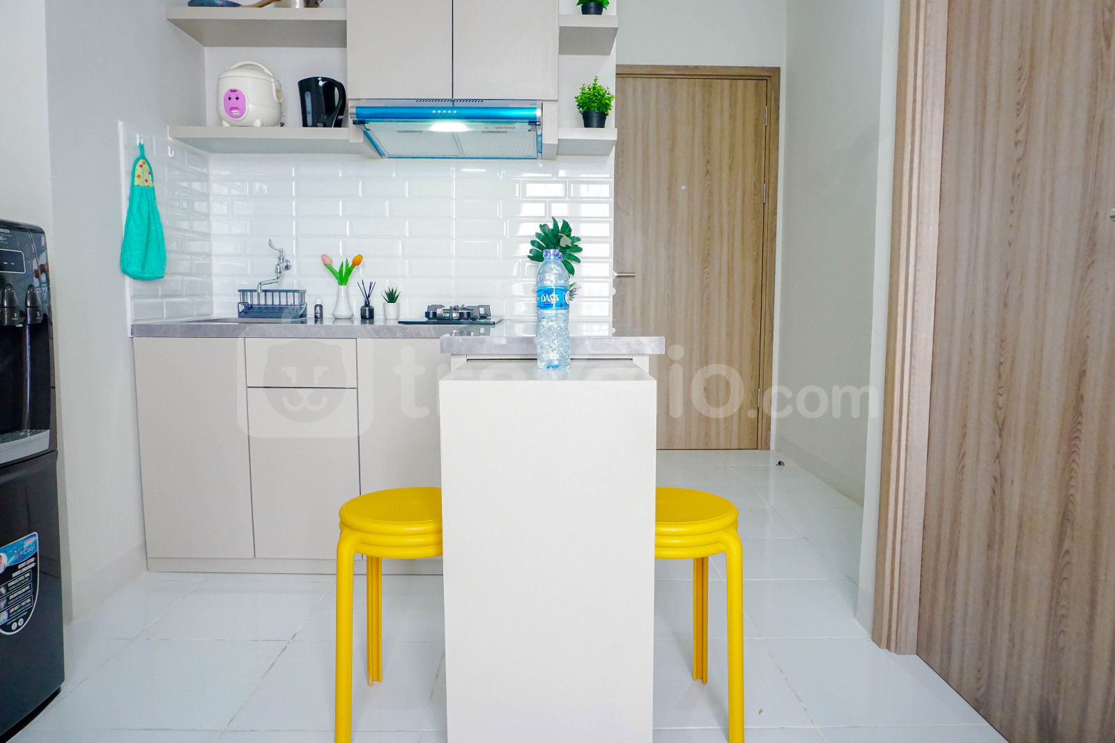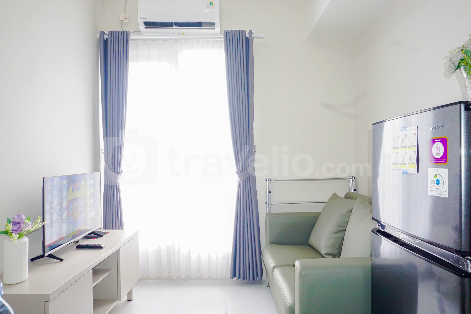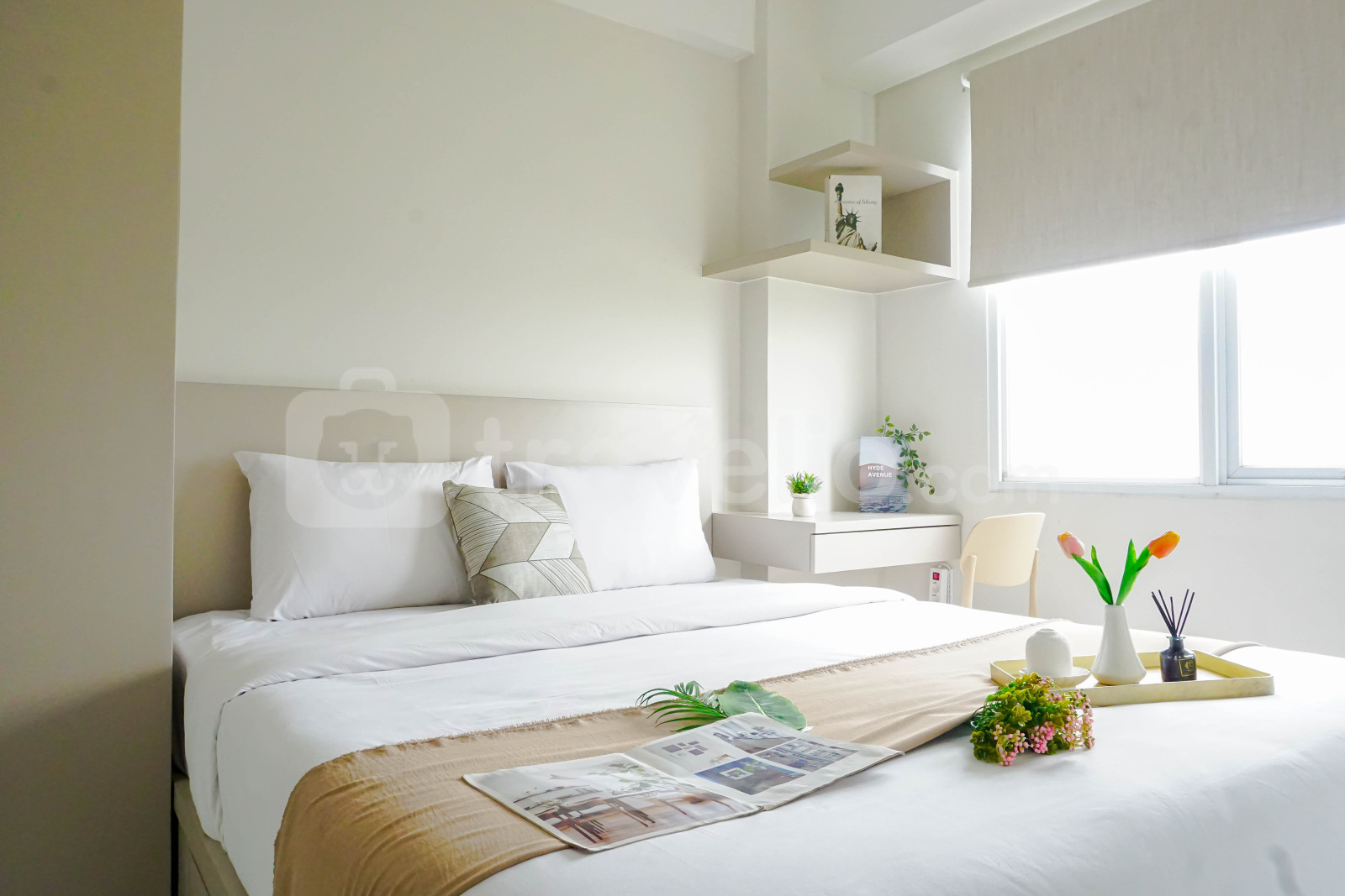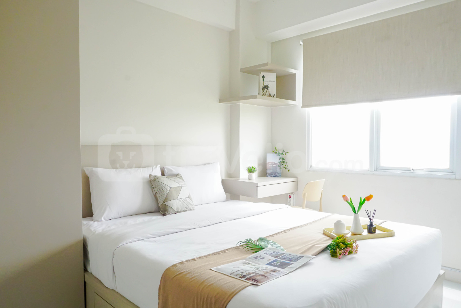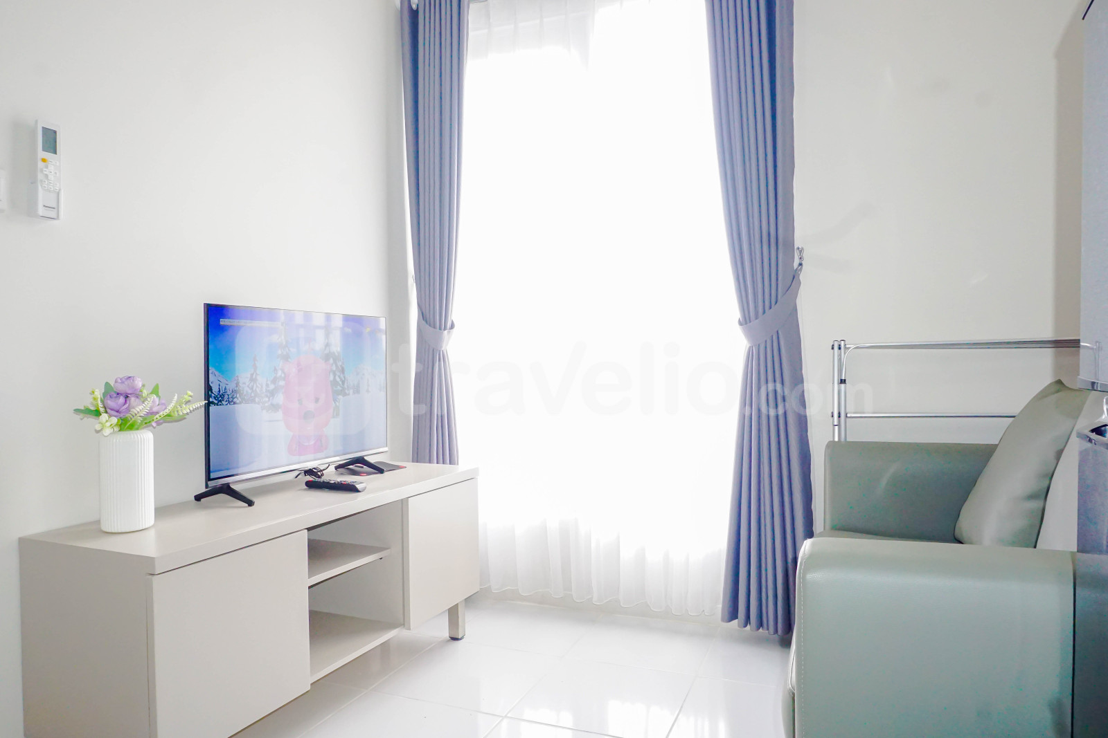 informasi sewa Comfy White 2BR at Podomoro Golf View Apartment By Travelio
