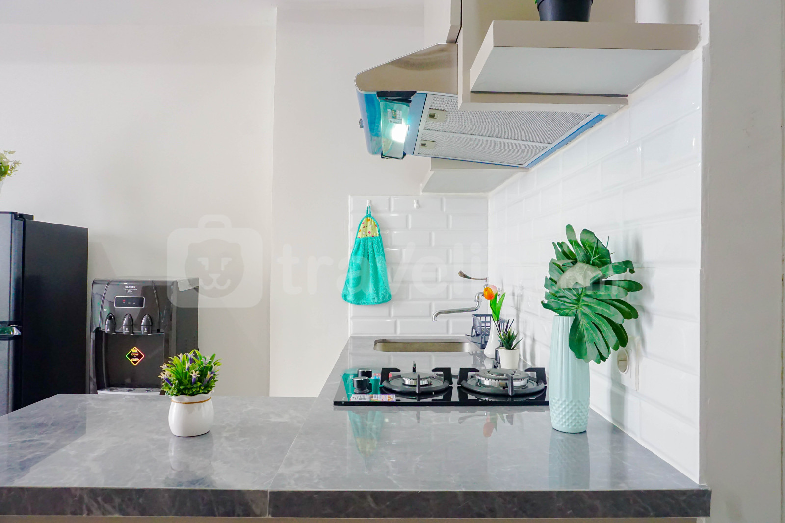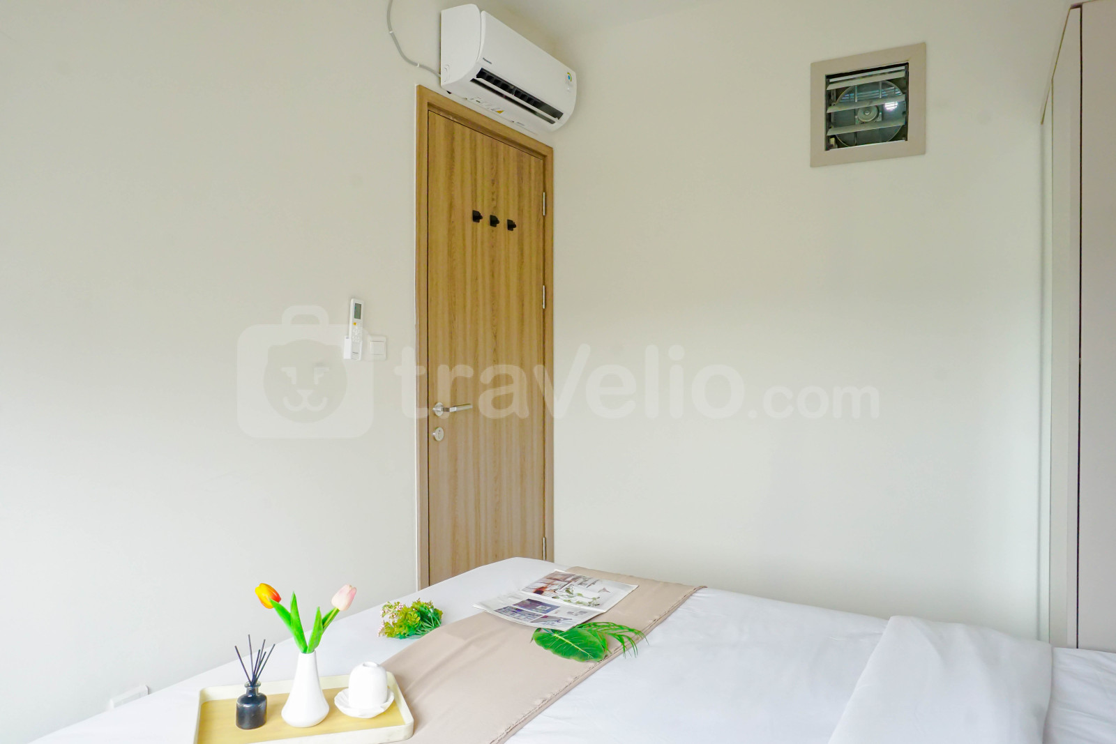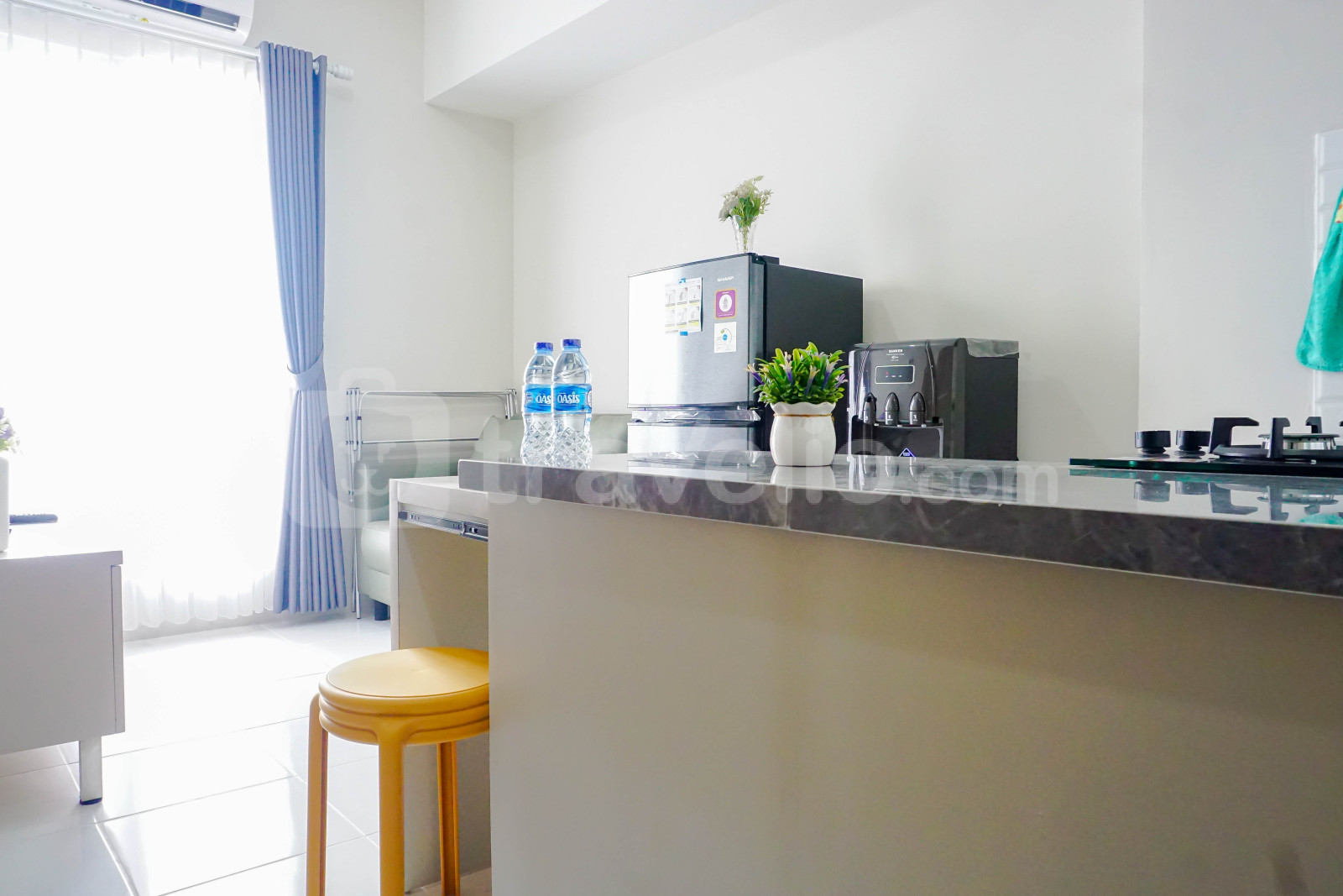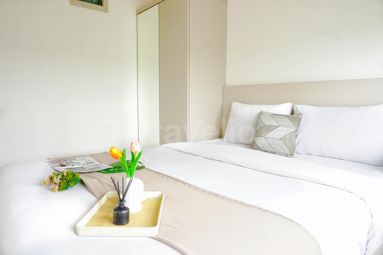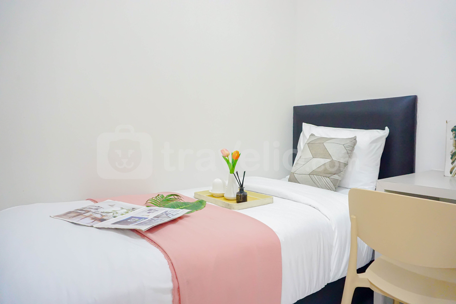 informasi sewa Comfy White 2BR at Podomoro Golf View Apartment By Travelio