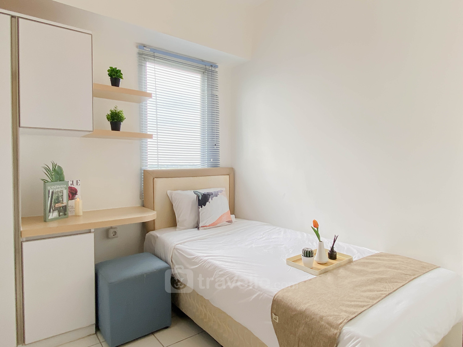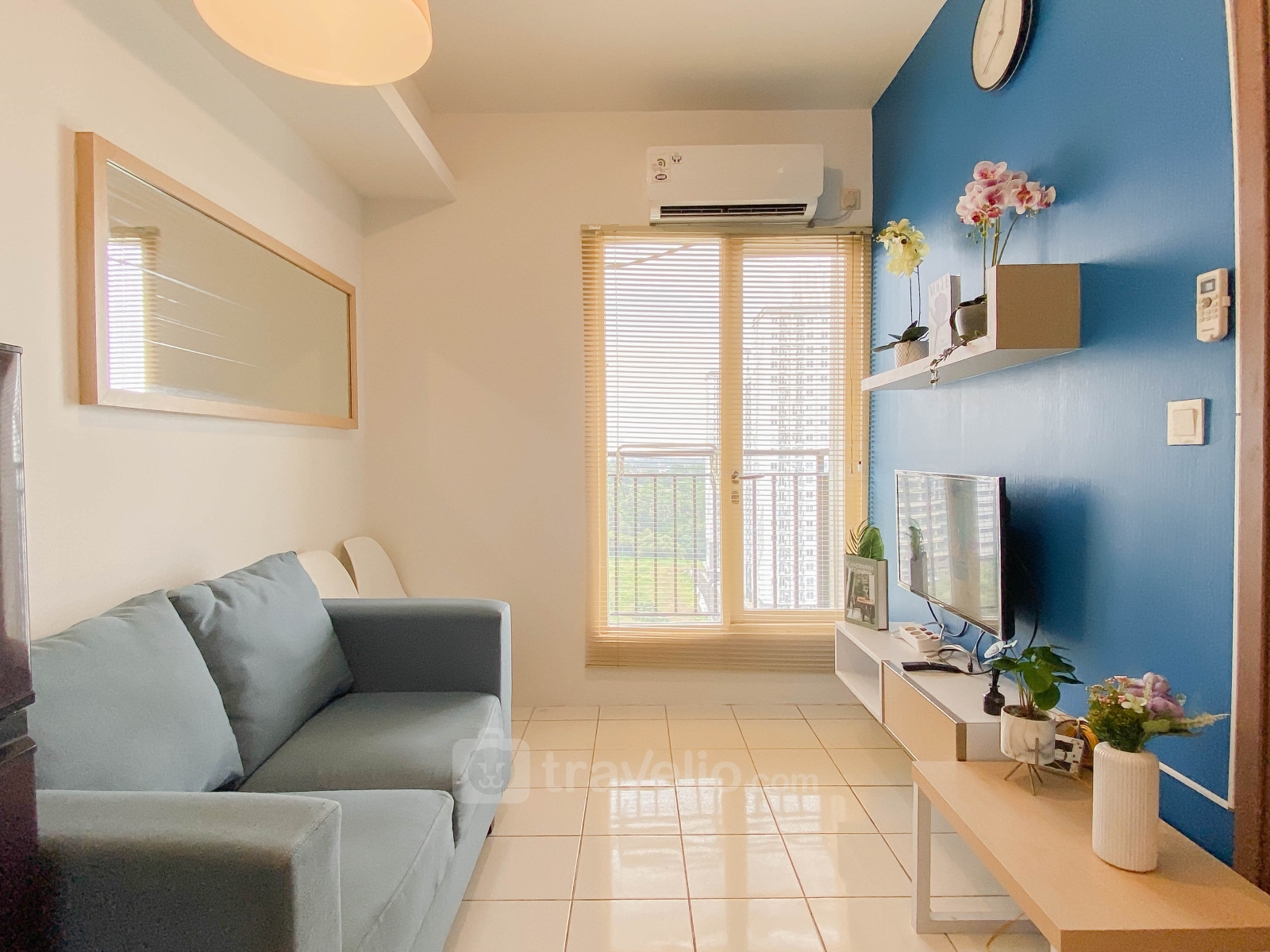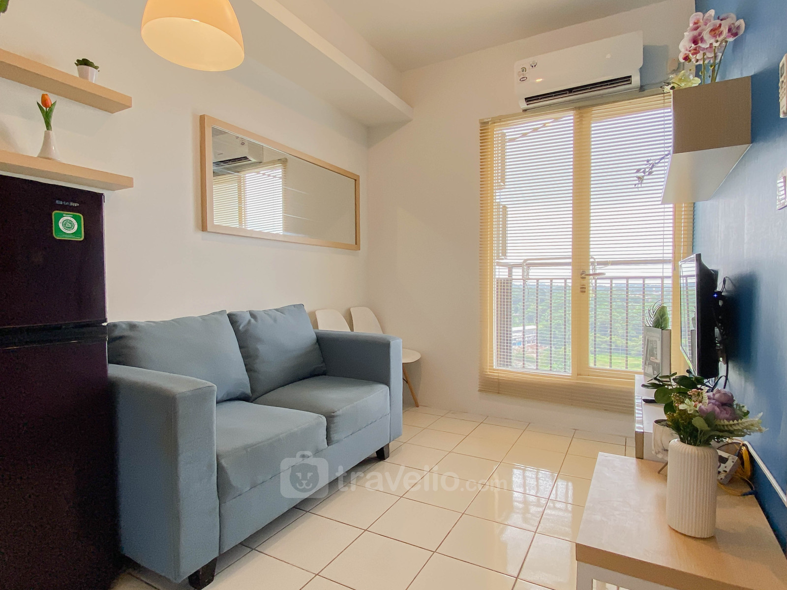 Rasakan hunian yang nyaman dan fungsional di Apartemen Podomoro Golf View yang memberikan kesan sejuk dan modern. Terletak di kawasan berkembang Cimanggis, Depok, unit seluas 36 sqm ini cocok untuk keluarga kecil, pasangan muda, maupun individu yang mencari hunian Unit ini dilengkapi dengan TV dan kulkas untuk menunjang kebutuhan sehari-hari. Sentuhan warna biru pada interior menciptakan suasana hunian yang tenang dan menyenangkan untuk beristirahat.