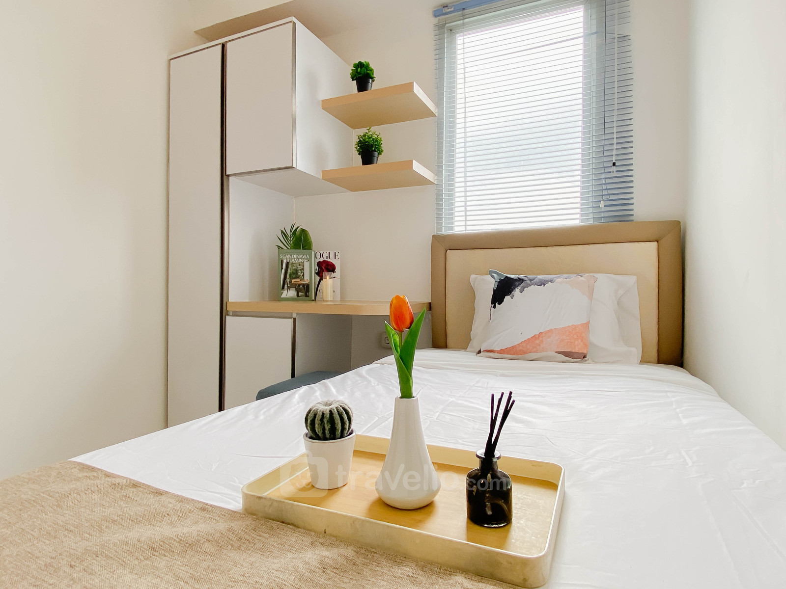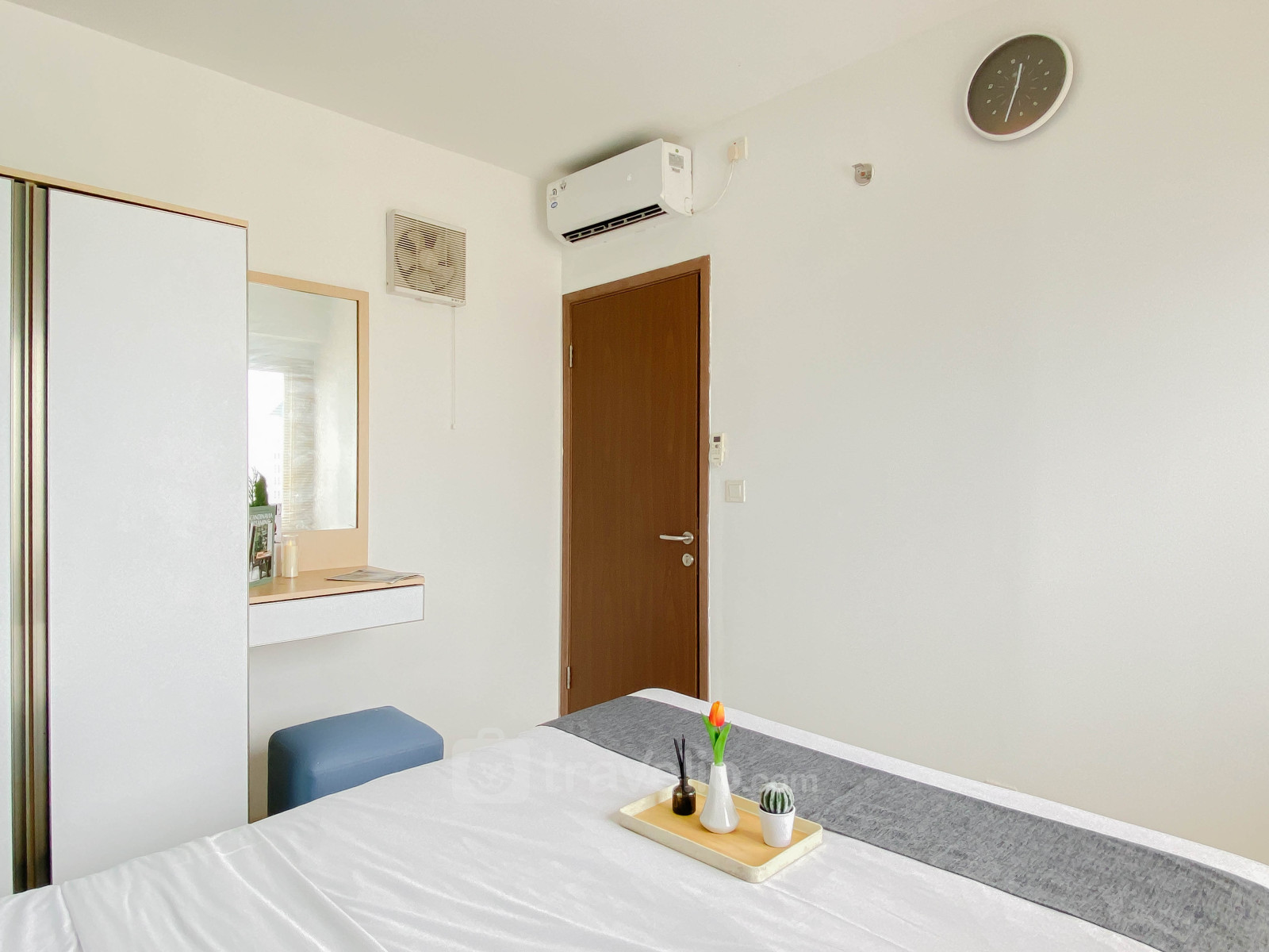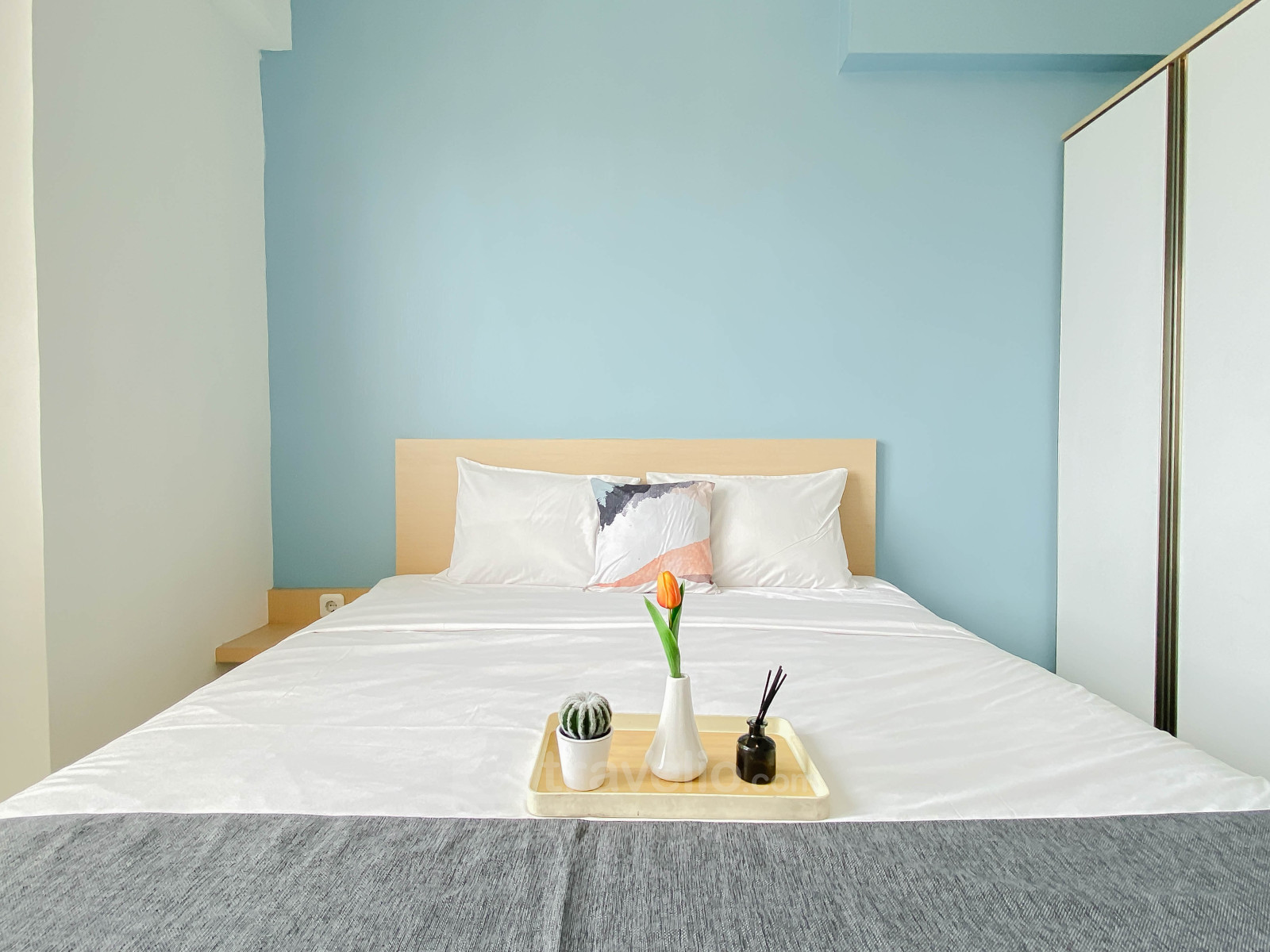 Rasakan hunian yang nyaman dan fungsional di Apartemen Podomoro Golf View yang memberikan kesan sejuk dan modern. Terletak di kawasan berkembang Cimanggis, Depok, unit seluas 36 sqm ini cocok untuk keluarga kecil, pasangan muda, maupun individu yang mencari hunian Unit ini dilengkapi dengan TV dan kulkas untuk menunjang kebutuhan sehari-hari. Sentuhan warna biru pada interior menciptakan suasana hunian yang tenang dan menyenangkan untuk beristirahat.