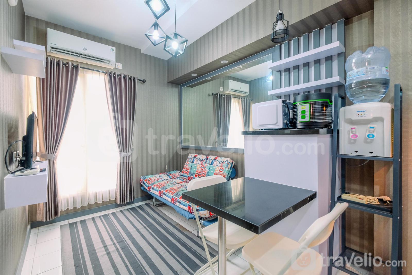 Perkenalkan, Homey and Cozy Living 2BR Podomoro Golf View Apartment By Travelio, sebuah pilihan yang menyenangkan untuk menginap di Gunung Putri, Kabupaten Bogor, Jawa Barat. Apartemen ini menawarkan ruang tinggal yang nyaman dengan luas 35 meter persegi, cocok untuk keluarga kecil atau kelompok teman. Dengan tata letak yang baik dan fasilitas yang memikirkan kenyamanan Anda, tinggal di sini akan menyenangkan dan santai. Apartemen ini memiliki dua kamar tidur, termasuk tempat tidur trundle dengan tempat tidur super single dan tempat tidur super single tambahan, serta tempat tidur ukuran queen (160x200). Anda akan menemukan semua yang Anda butuhkan untuk tinggal yang nyaman, termasuk TV 32" untuk hiburan, microwave untuk makanan cepat saji, pemanas air untuk mandi yang menenangkan, dan AC untuk menjaga Anda tetap sejuk saat hari panas.