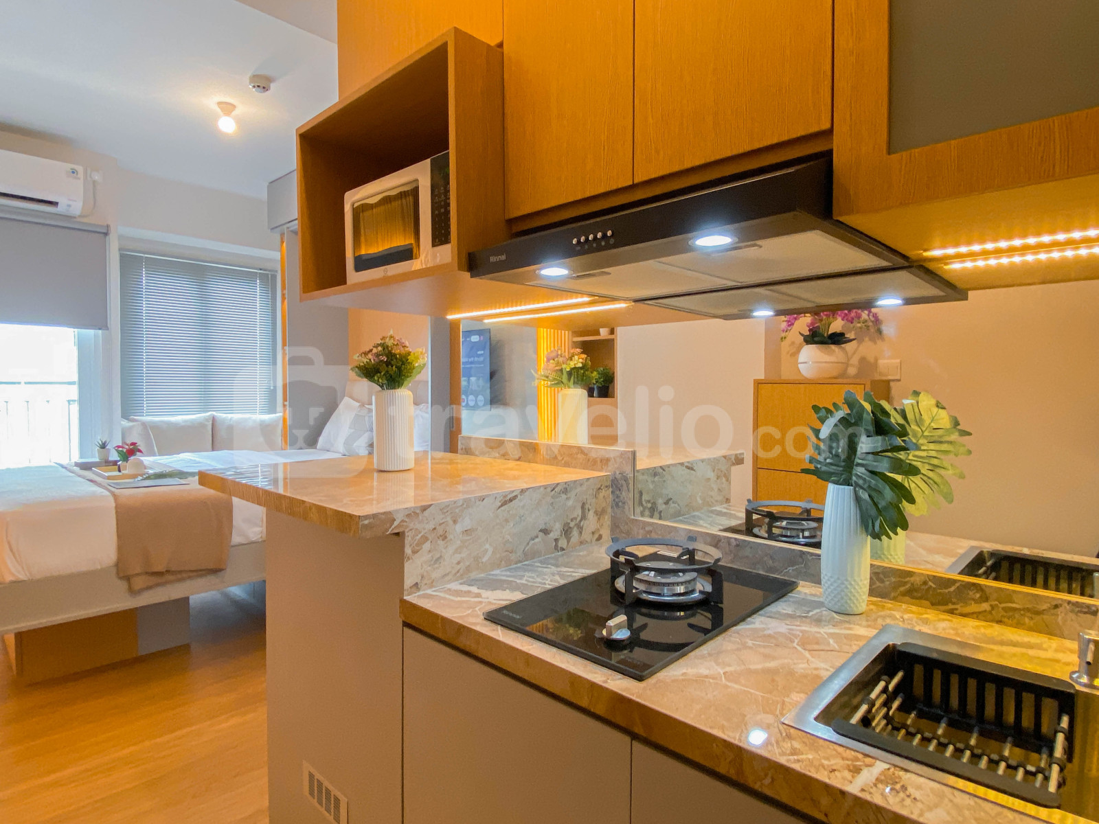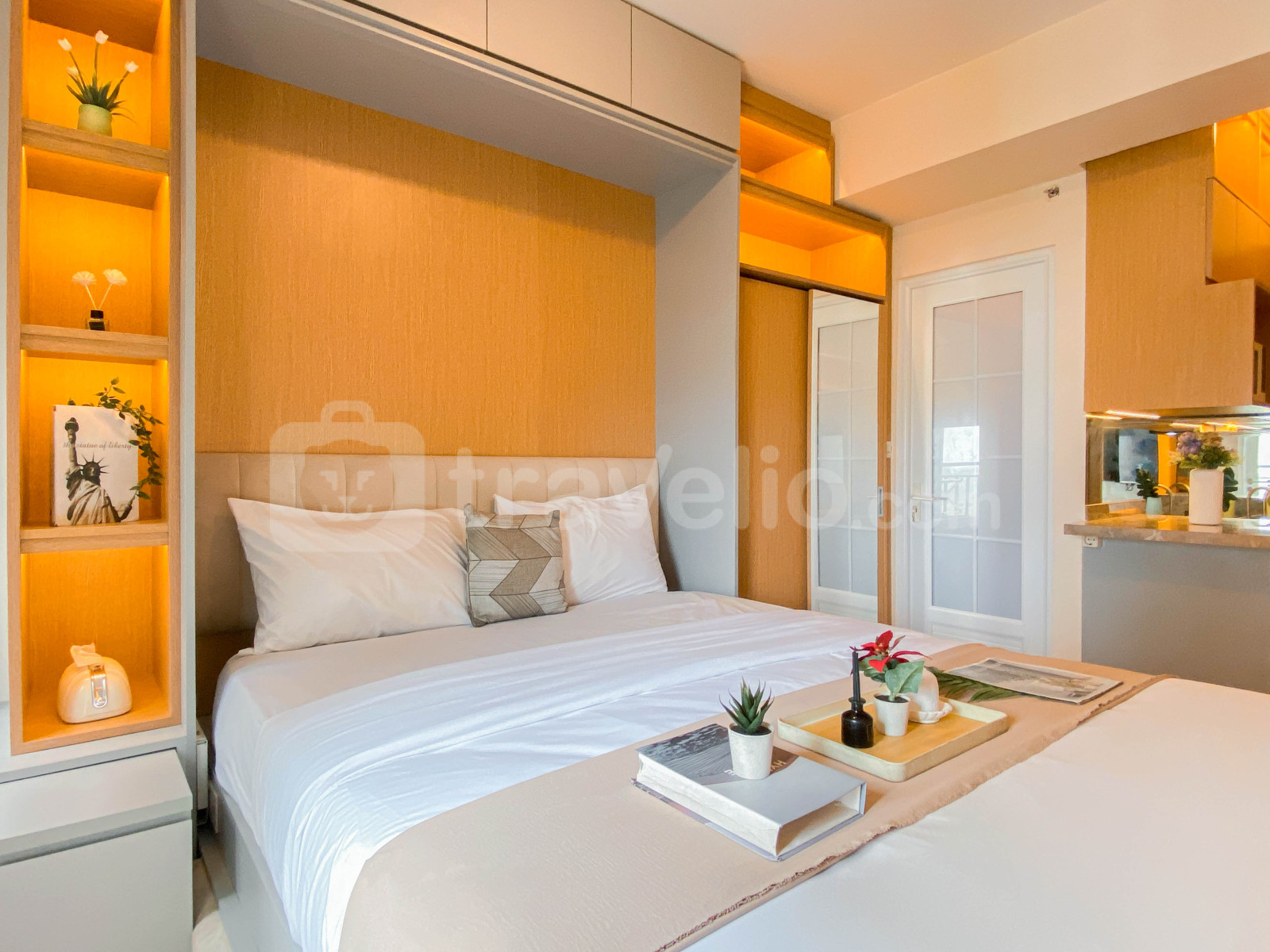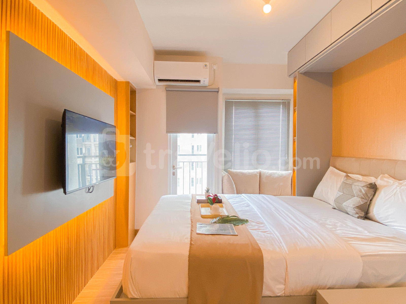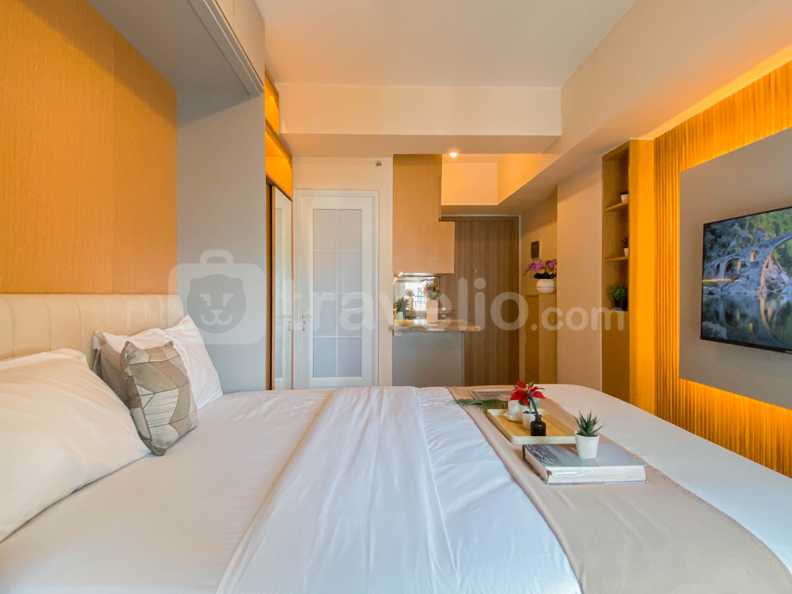 informasi sewa Modern Neutral Studio at Podomoro Golf View Apartment By Travelio