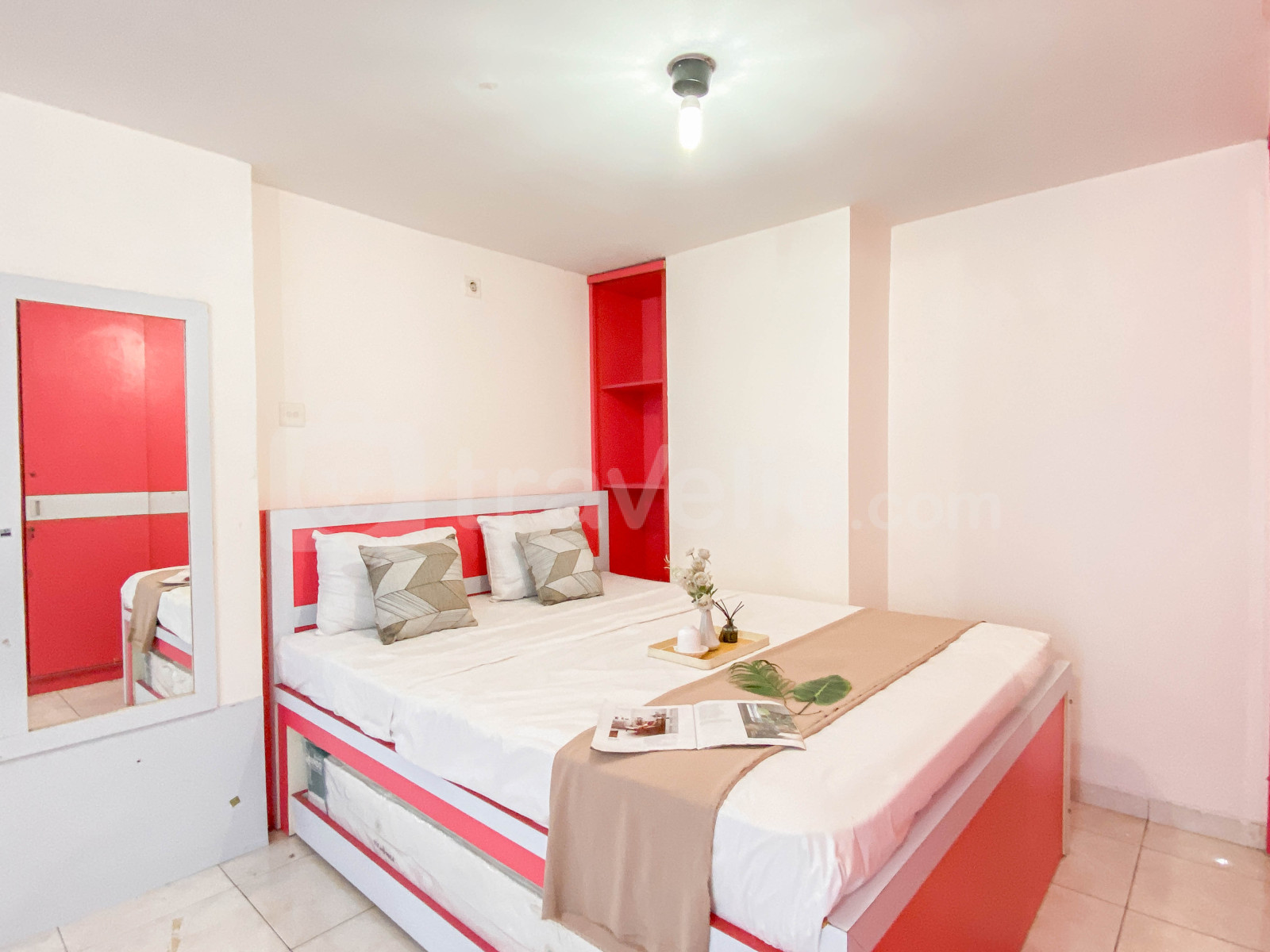 Jika Anda mencari akomodasi di area Margonda, maka Apartemen Margonda Residence 2 patut dipertimbangkan. Selain lokasinya dekat Depok Town Square, apartemen ini menyediakan fasilitas Keamanan 24 Jam, CCTV Area Publik, Lift, Kolam Renang. Unit apartemen seluas 40 meter persegi ini juga dilengkapi dengan 1 kasur dengan masing-masing ukuran Queen Bed (160x200) berbalut linen kualitas hotel berbintang, pendingin ruangan, televisi, perlengkapan mandi, peralatan makan dan memasak. Spacious Combined Unit 1BR Apartment at Margonda Residence 2 By Travelio bisa disewa secara bulanan dan tahunan. Tersedia pemanas air di kamar mandi.