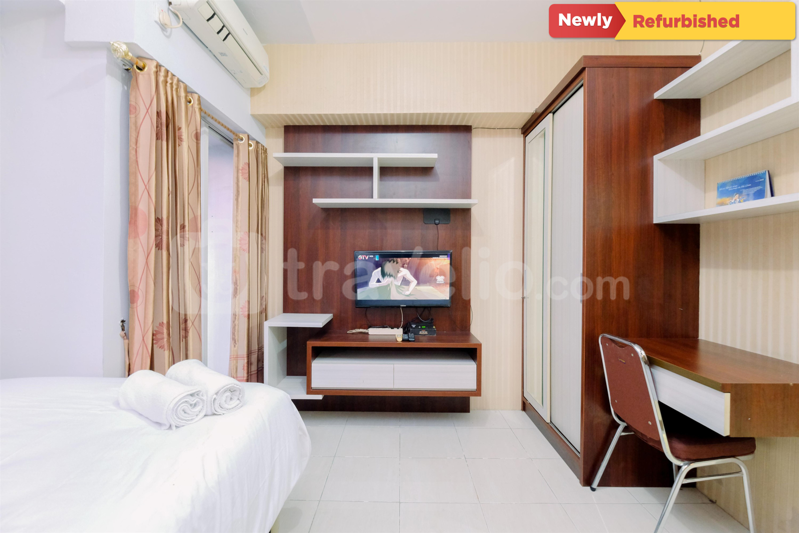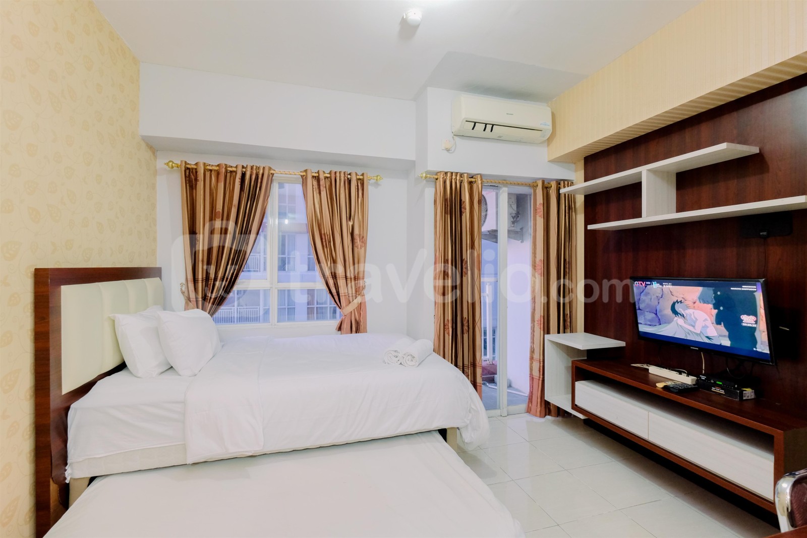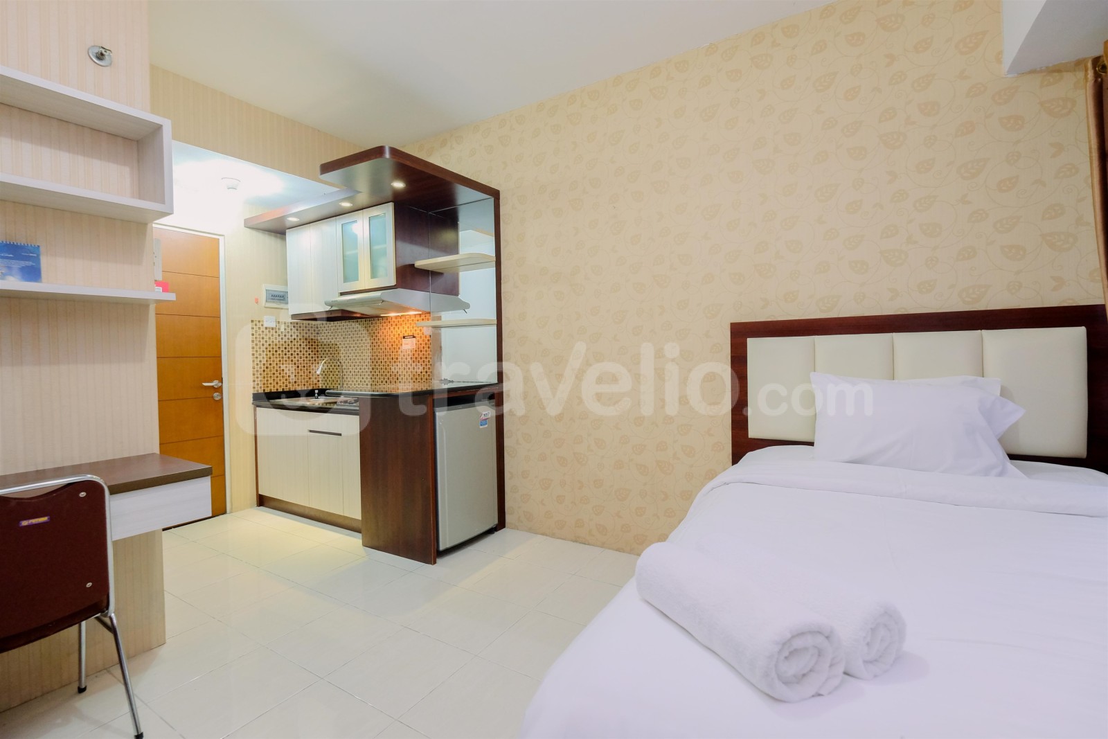 Unit apartemen ini dilengkapi kasur dengan ukuran Trundle Bed (Super Single Bed & Super Single Underbed) berbalut linen kualitas hotel berbintang, pendingin ruangan, televisi, akses Wi-Fi gratis, perlengkapan mandi, peralatan makan dan memasak. Anda dapat mengakses fasilitas Keamanan 24 Jam, Layanan Kamar 24 Jam, ATM, Kartu Akses, Kafe, Lift, Laundry (Berbayar), Restoran, dan Kolam Renang. Ruangan apartemen seluas 23.7 ini memiliki merupakan pilihan terbaik di area Margonda. Warm and Nice Studio Apartment at Taman Melati Margonda By Travelio bisa disewa secara harian, bulanan, dan tahunan.