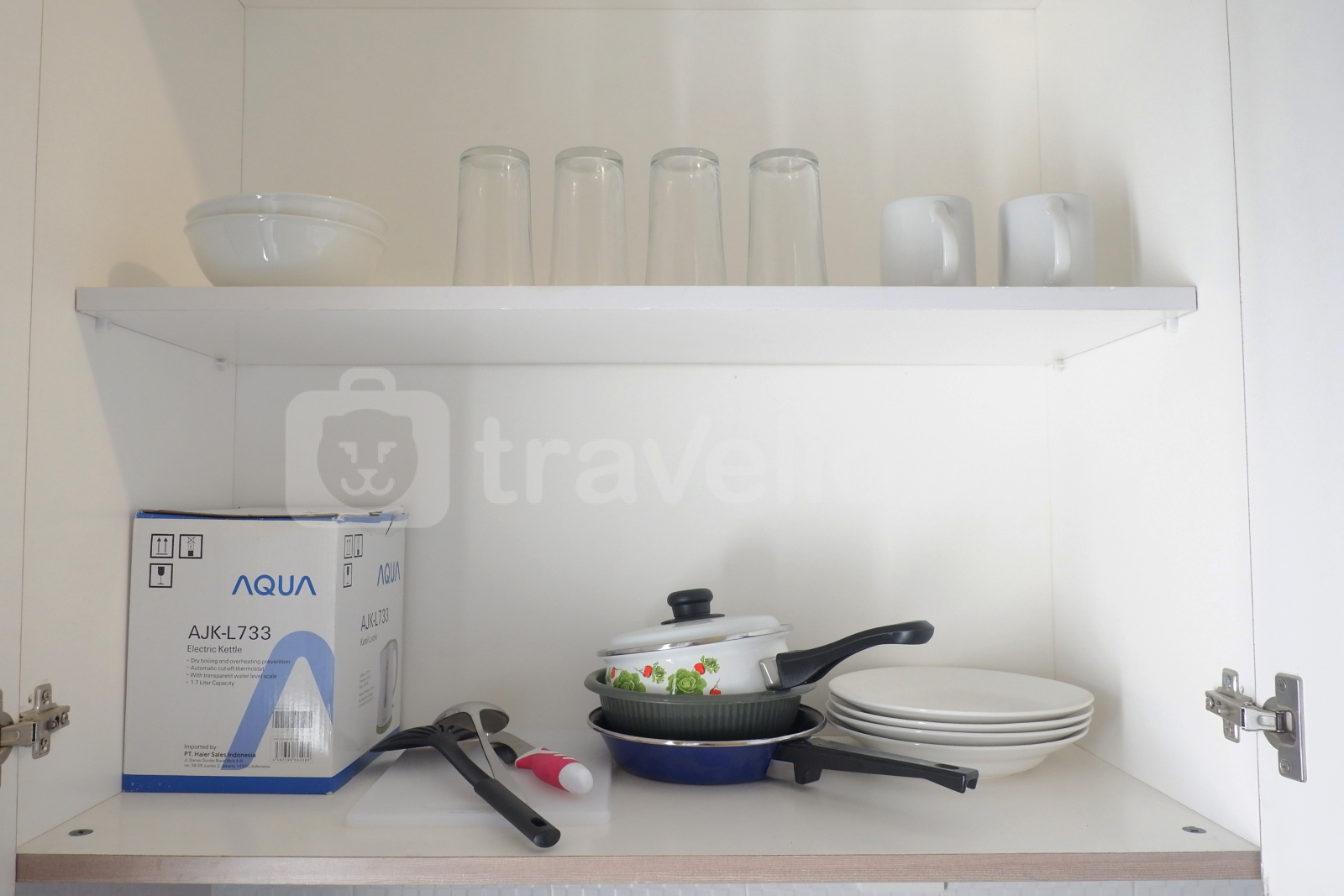 Fasilitas pendingin ruangan dan akses internet gratis tersedia di dalam ruangan yang bisa Anda gunakan kapan saja. Sofa bed empuk dan TV nampak menghiasi ruang tengah apartemen. Rice cooker, teko listrik, kompor listrik, dan berbagai perlengkapan masak serta makan sederhana lainnya tersedia di dalam dapur yang sudah difasilitasi juga dengan meja makan. Kamar tidur nyaman dengan kasur ukuran queen yang besar dan meja rias. Pemanas air dan perlengkapan mandi pun disediakan di dalam kamar mandi.
