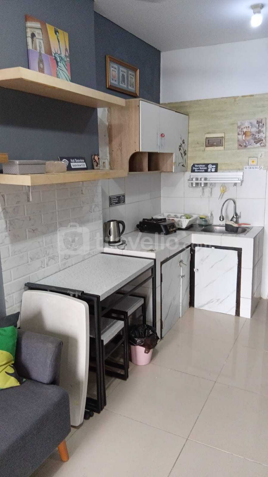 Apartemen ini menawarkan fasilitas yang akan melengkapi kebutuhan hidup Anda, seperti TV, AC, meja dan bangku, kulkas, kompor gas dan lain-lain. Apartemen ini memiliki dua kamar tidur yang dilengkapi dengan kasur tipe single dan double. Kamar mandinya dilengkapi dengan shower. Terdapat balkon yang akan menghadap langsung ke laut Jakarta.