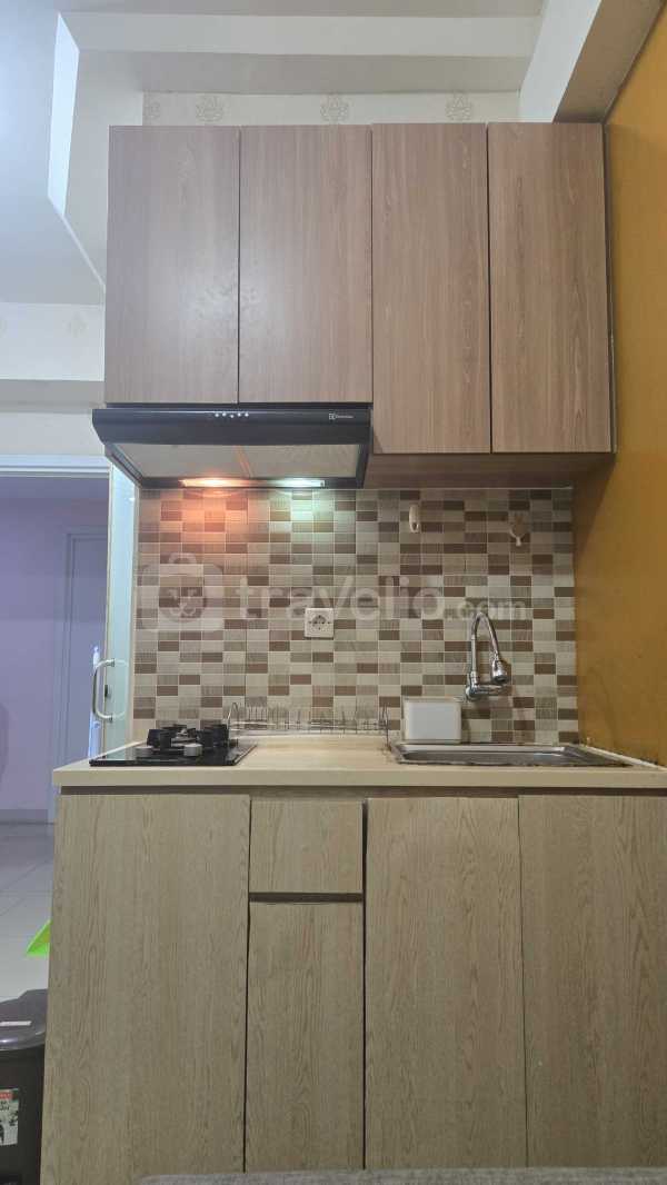Unit apartemen seluas 33 sqm ini terdiri atas kitchen, living room, bathroom, dan 2 bedrooms. Setiap ruangannya menampilkan desain interior bergaya modern. Dari hunian yang terletak di lantai 15 ini, Anda juga bisa menikmati pemandangan kota yang menawan. Terdapat balkon dengan pemandangan. Ruang tamu menyediakan sofa bed. Gedung apartemen ini memiliki akses langsung ke Mall Green Pramuka Square.