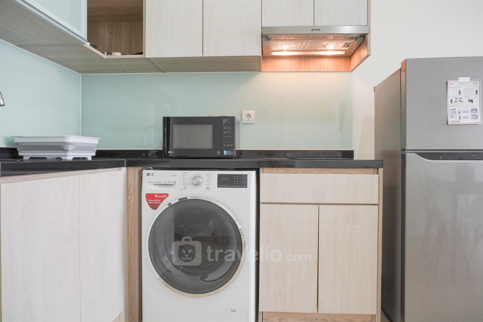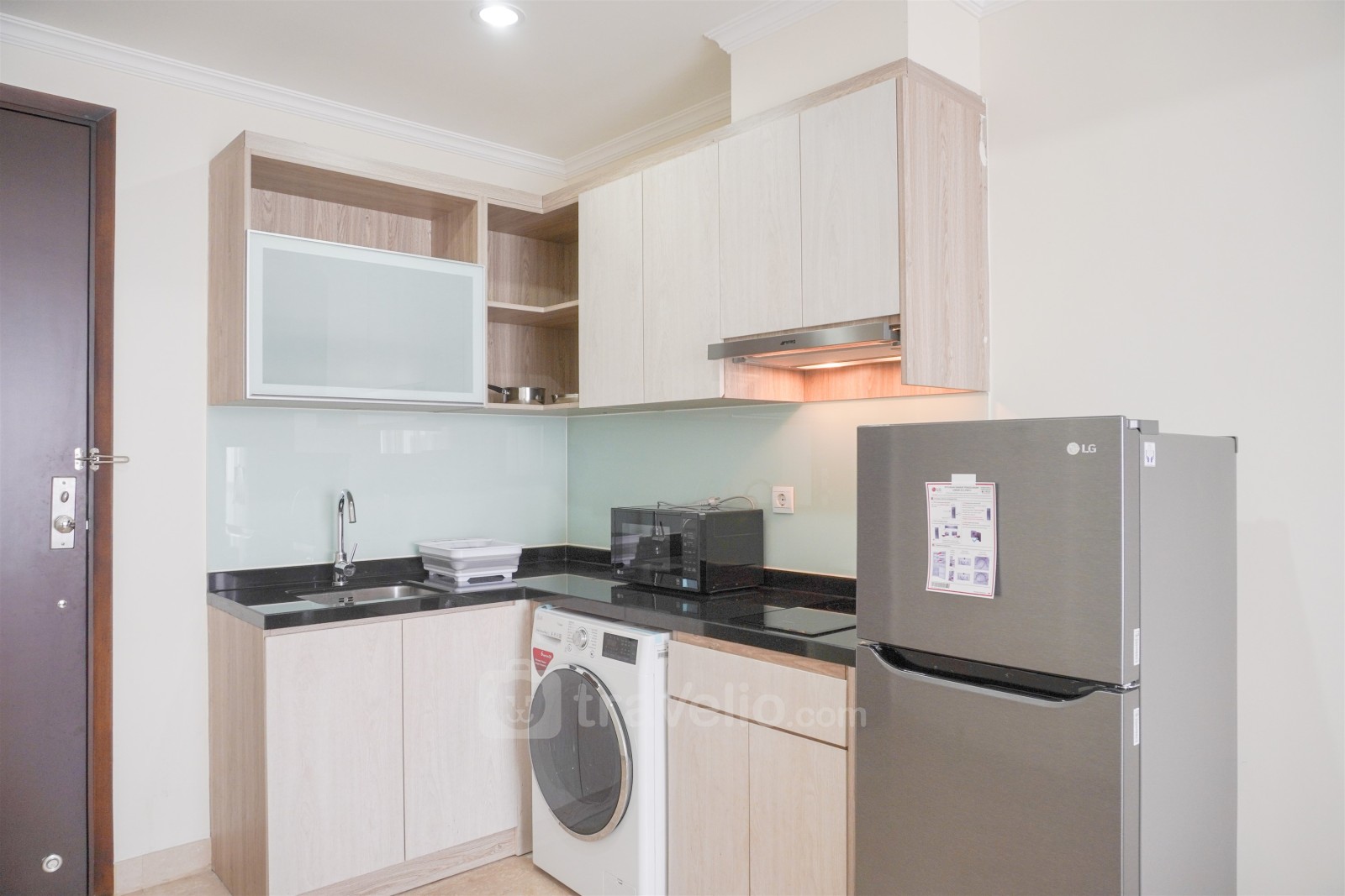 Apartemen ini dilengkapi dengan fasilitas modern termasuk TV, kulkas, microwave, pemanas air, dan mesin cuci, sehingga memberikan kenyamanan tinggal yang lengkap. Fasilitas bangunan mencakup keamanan 24 jam, kartu akses, pengawasan CCTV di area umum, lift, pusat kebugaran, layanan laundry (dikenakan biaya), taman bermain, dan kolam renang untuk kenyamanan dan hiburan penghuni.