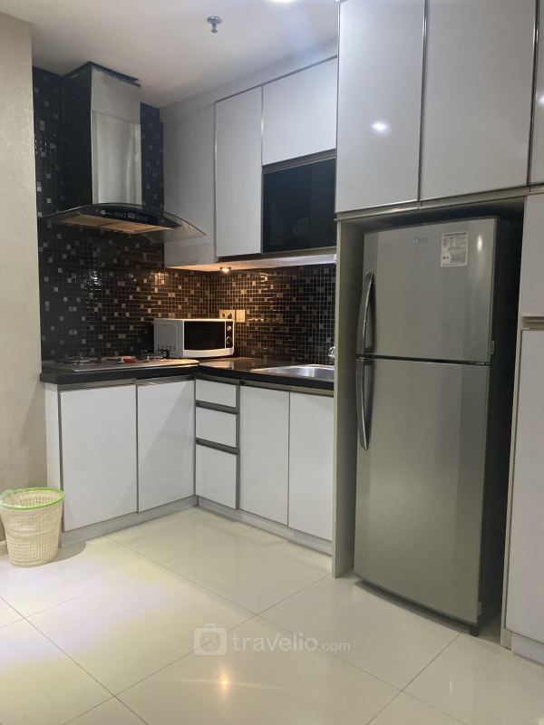 Unit apartemen seluas 80 ini juga dilengkapi dengan 2 kasur dengan masing-masing ukuran King Bed (180x200) dan King Bed (180x200), pendingin ruangan, televisi, perlengkapan mandi, peralatan makan dan memasak. Spacious with City View 2BR Apartment at Casa Grande Residence By Travelio bisa disewa secara harian, bulanan, dan tahunan.