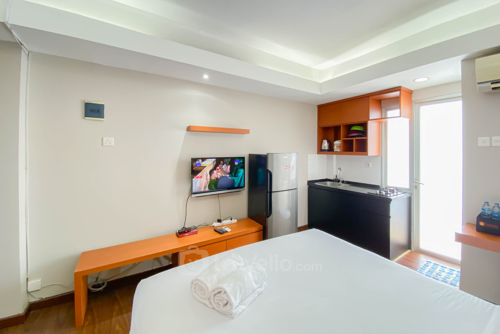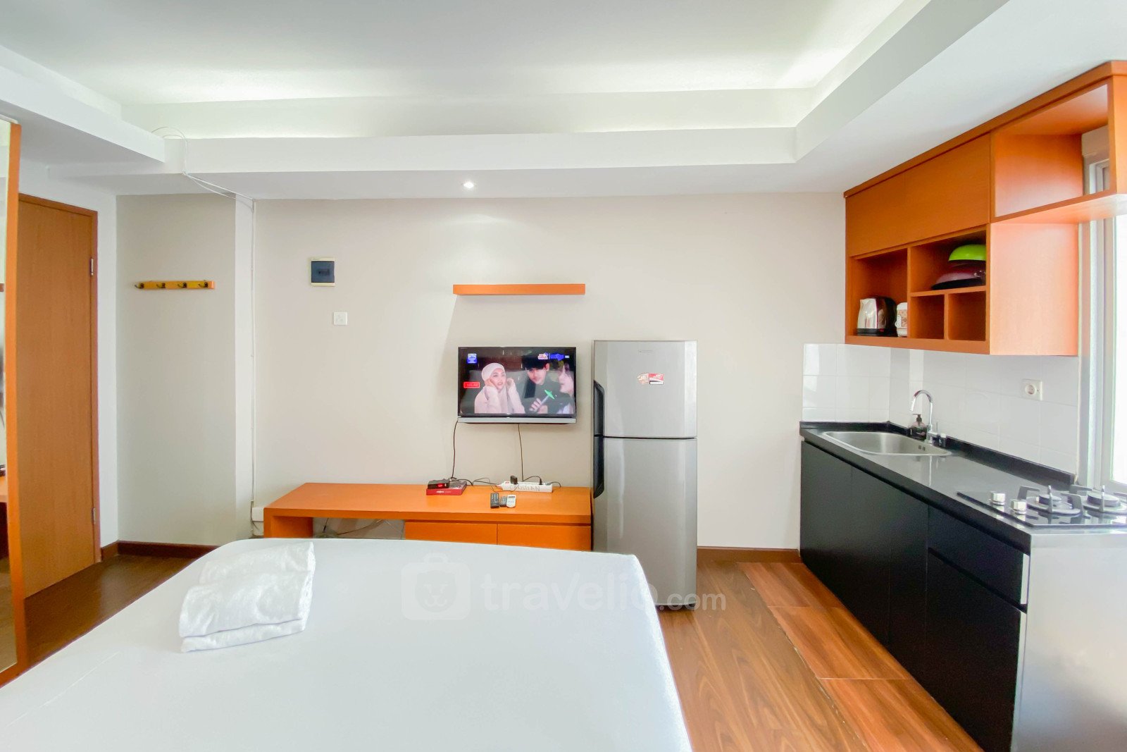 Perkenalkan, Best Deal and Cozy Studio Green Park View Apartment By Travelio. Unit studio ini memiliki ruang hunian yang nyaman, ideal untuk individu atau pasangan yang mencari gaya hidup perkotaan yang praktis.