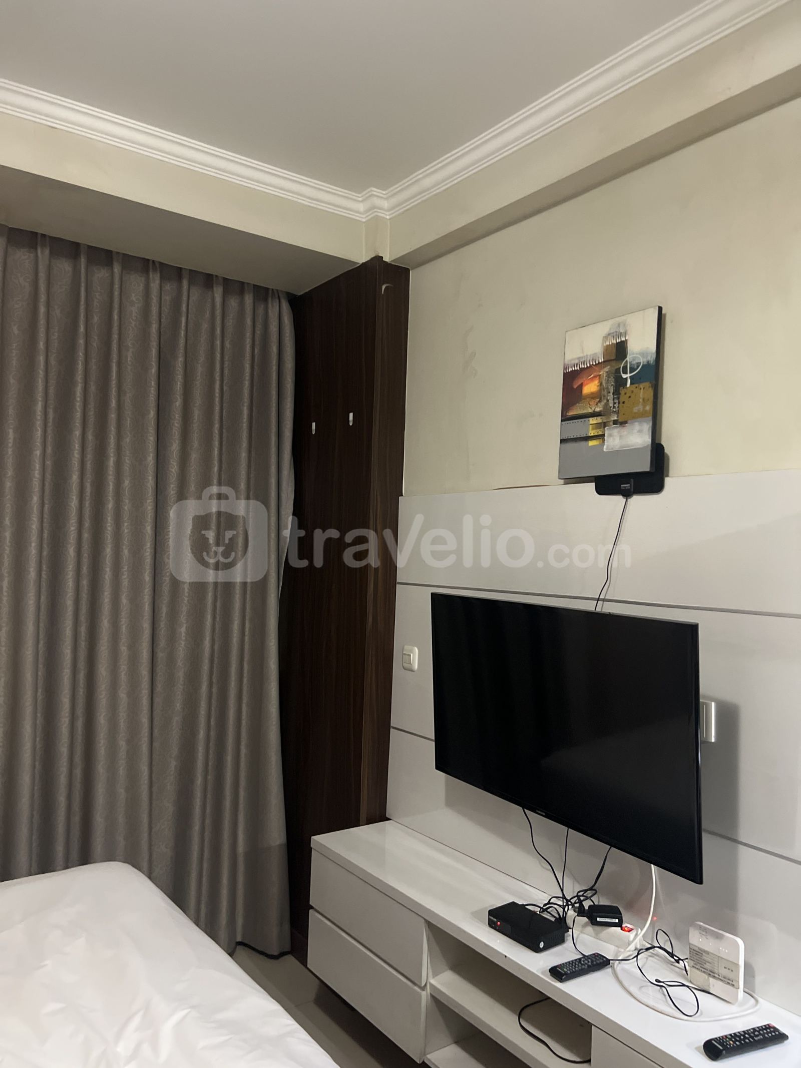 Unit apartemen ini dilengkapi dengan 1 kasur ukuran Queen (160x200) berbalut linen kualitas hotel berbintang, pendingin ruangan, televisi, perlengkapan mandi, peralatan makan dan memasak. Anda yang menginap di apartemen ini juga akan menemukan 24-Hour Security, ATM On Site, Access Card, CCTV In Public Area, Cafe, Car Park, Elevator, Fitness Center, Jogging Track, Laundry (Charge), Playground, Restaurant, Supermarket, Swimming Pool yang bisa diakses dengan mudah.