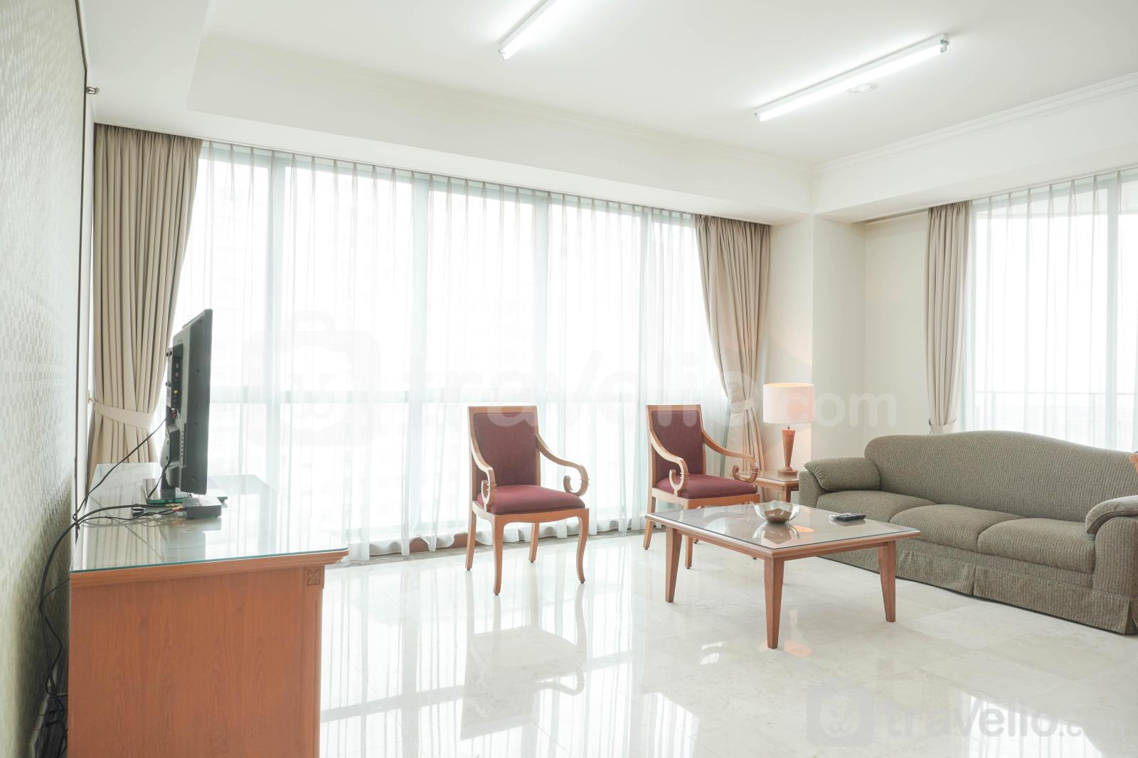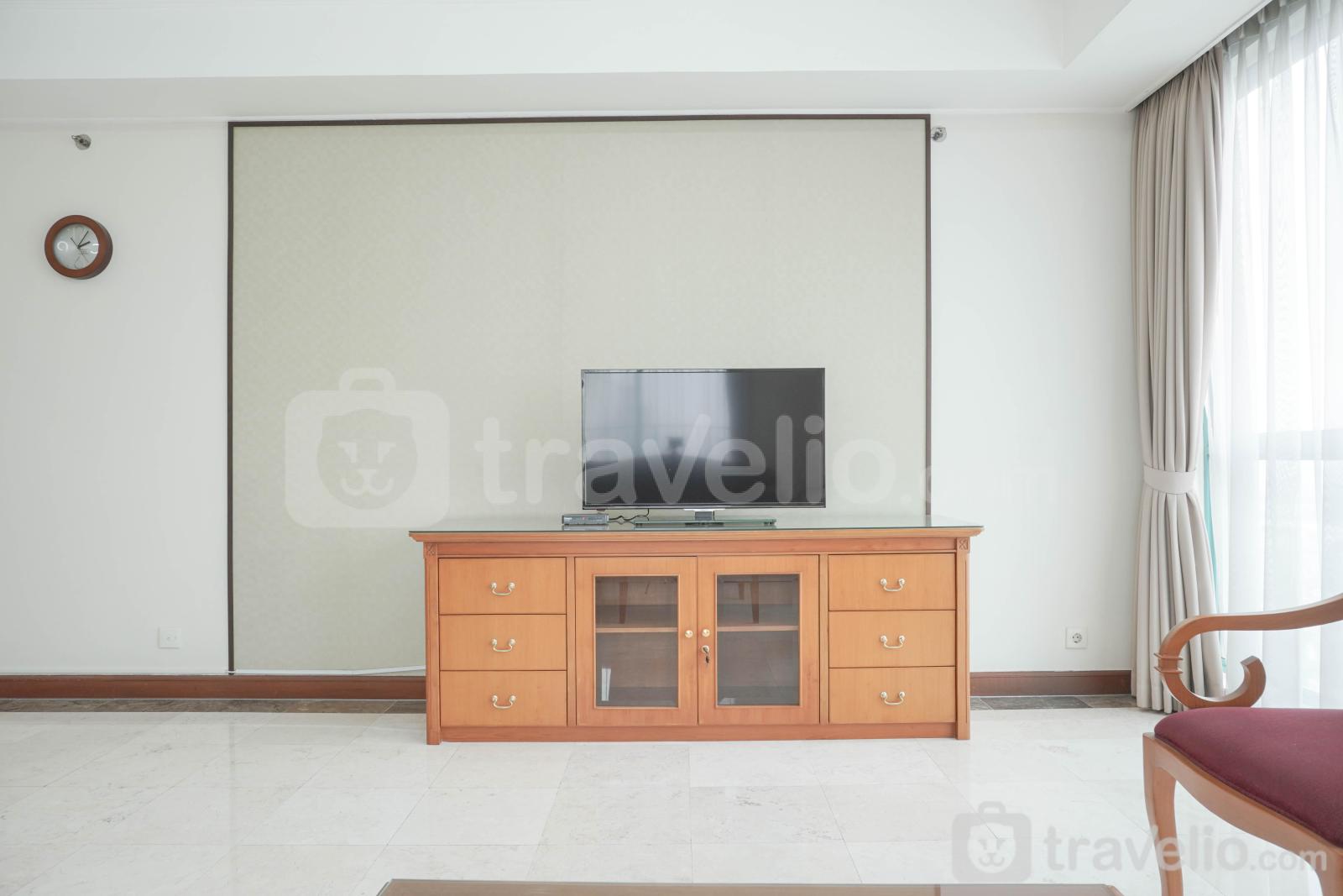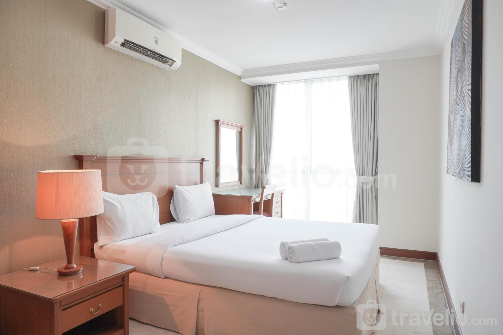 Unit apartemen ini juga menyediakan 2 kasur dengan masing-masing ukuran King Bed (180x200) dan Queen Bed (160x200) berbalut linen kualitas hotel berbintang, pendingin ruangan, televisi, perlengkapan mandi, peralatan makan dan memasak untuk menunjang kebutuhan harian Anda. Comfort and Spacious 2BR at Casablanca Apartment By Travelio bisa disewa secara bulanan dan tahunan.