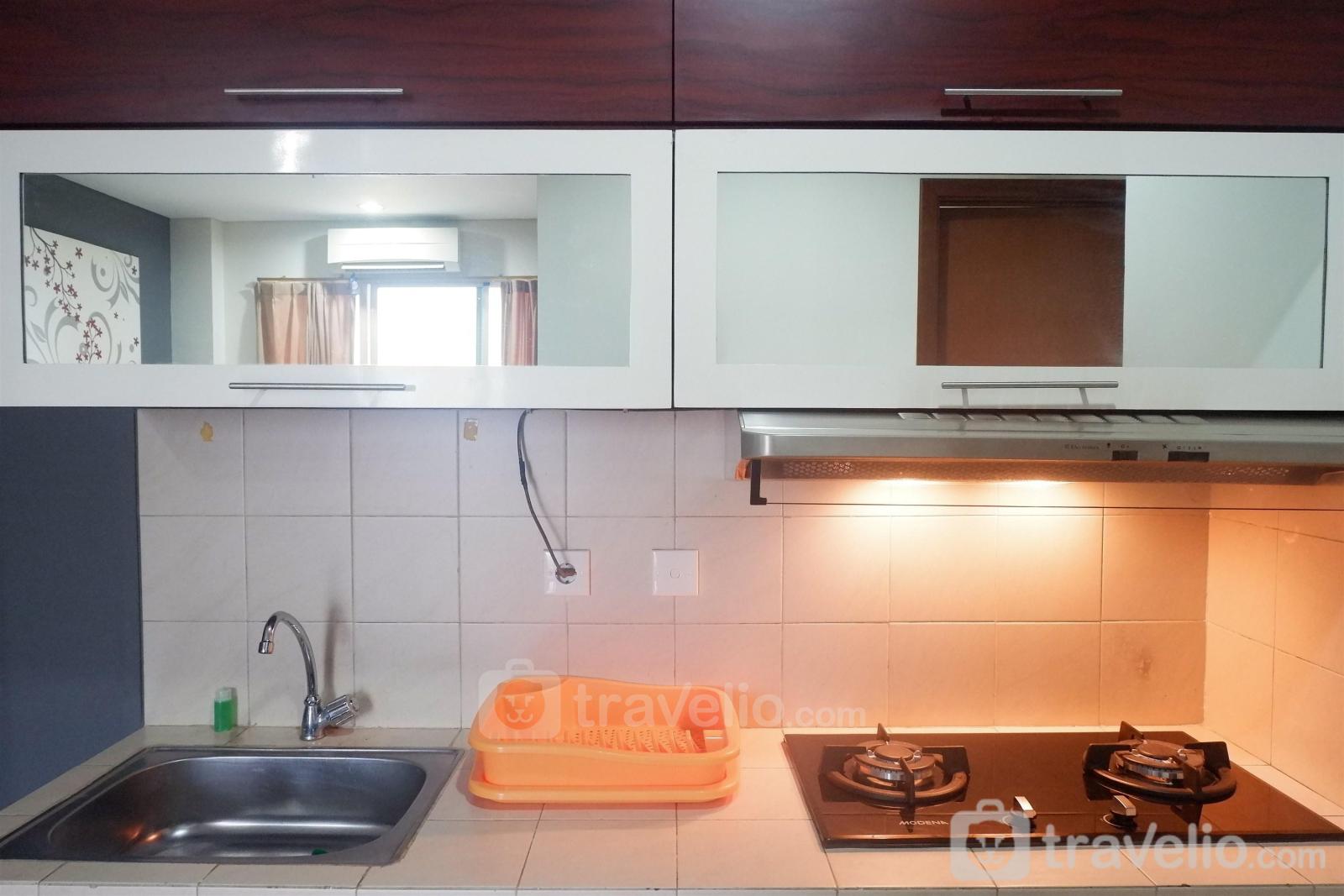 Tersedia dapur minimalis beserta perkakasnya seperti gas stove, oven, rice cooker, kettle, cooker hood, dan kitchenware lainnya. Untuk menjaga kebugaran Anda, apartemen ini dilengkapi dengan kamar mandi beserta peralatan mandi seperti water heater, toilet brush, shower, closet, dan toiletries lainnya.