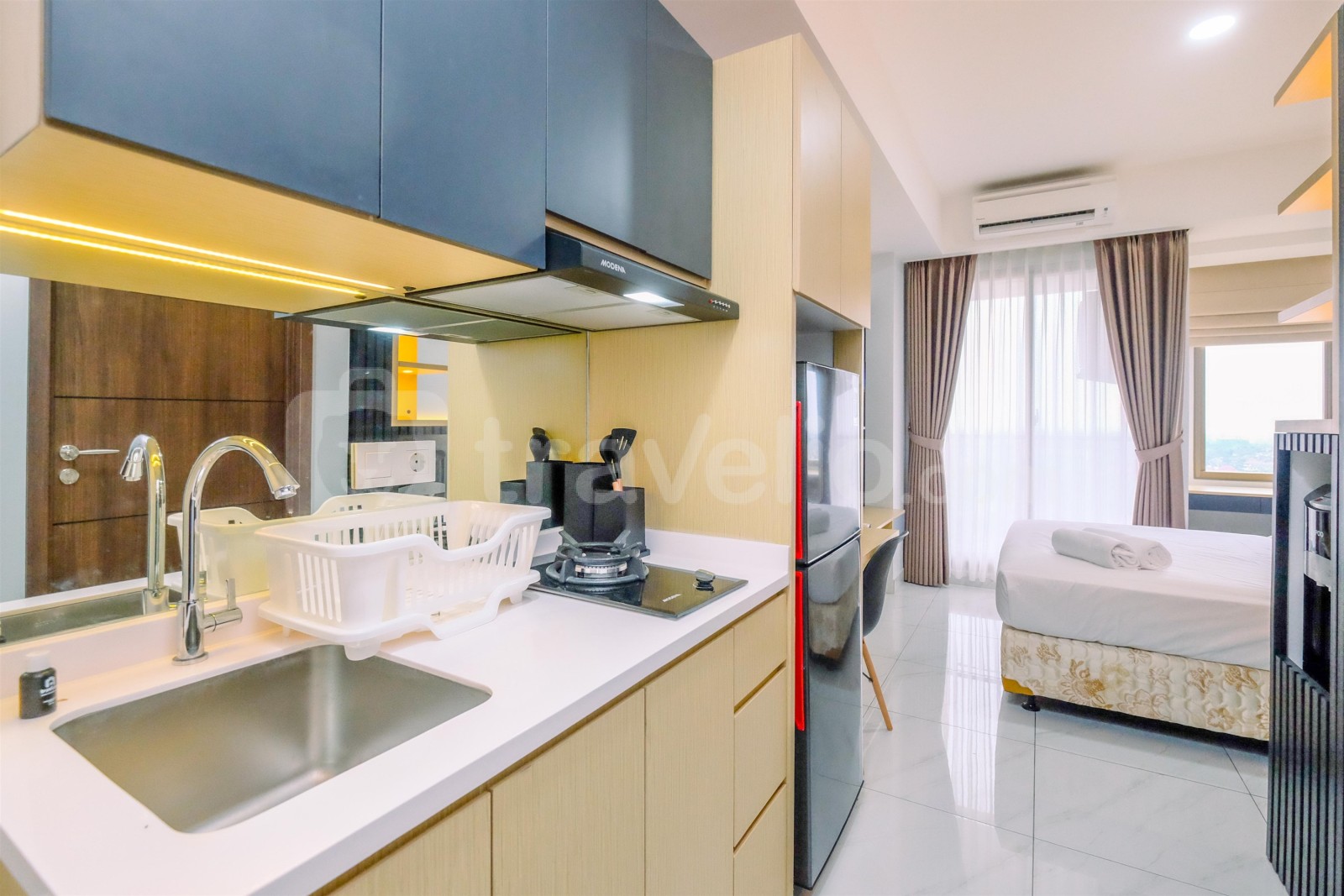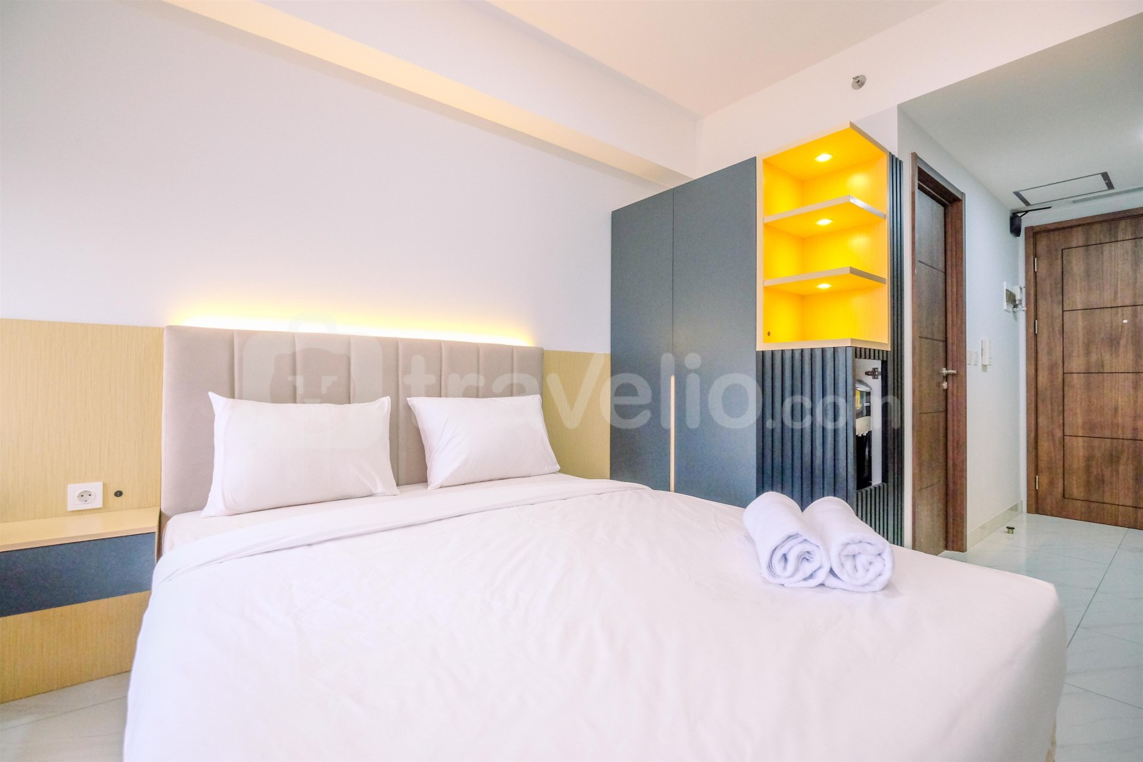 Perkenalkan, Elegant and Homey Studio Sakura Garden City Apartment By Travelio, sebuah tempat tinggal menawan yang terletak di kawasan Ciracas yang penuh warna Jakarta. Apartemen studio ini didesain dengan baik, menawarkan ruang hidup yang nyaman, sempurna bagi mereka yang mencari gabungan elegansi dan kenyamanan.