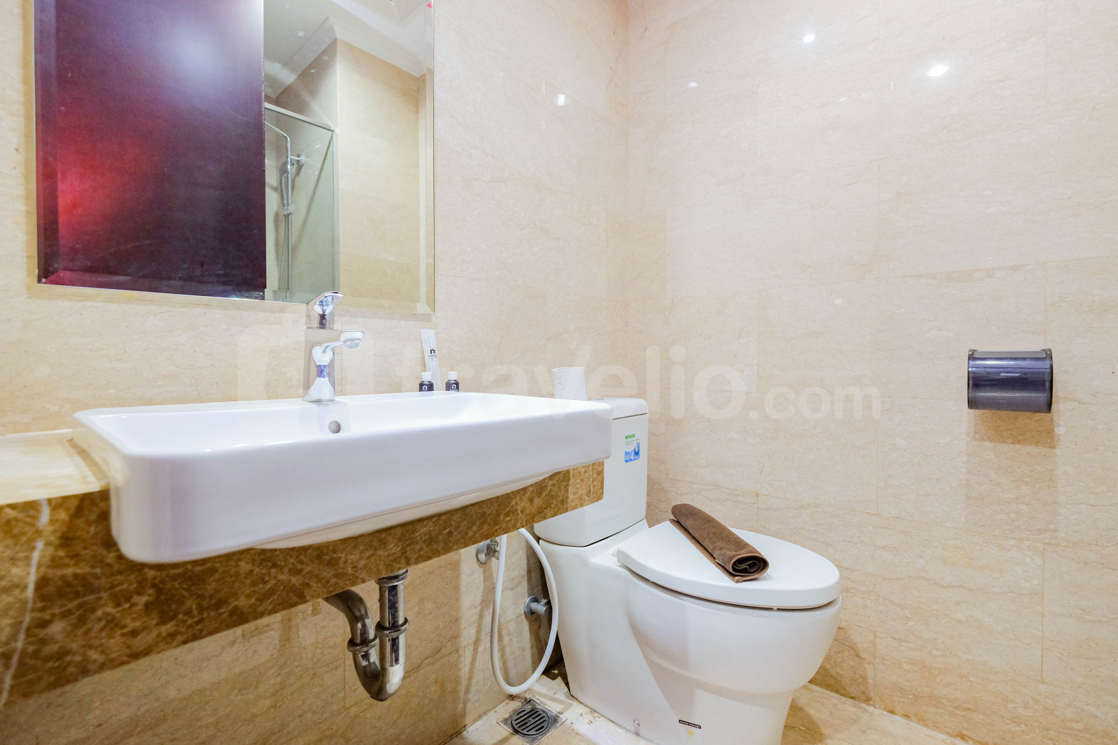 Kamar mandi dilengkapi dengan pemanas air. Unit apartemen ini difasilitasi dengan mesin cuci. Terdapat balkon dengan pemandangan. Setiap ruangan di apartemen ini memiliki desain interior Minimalis.