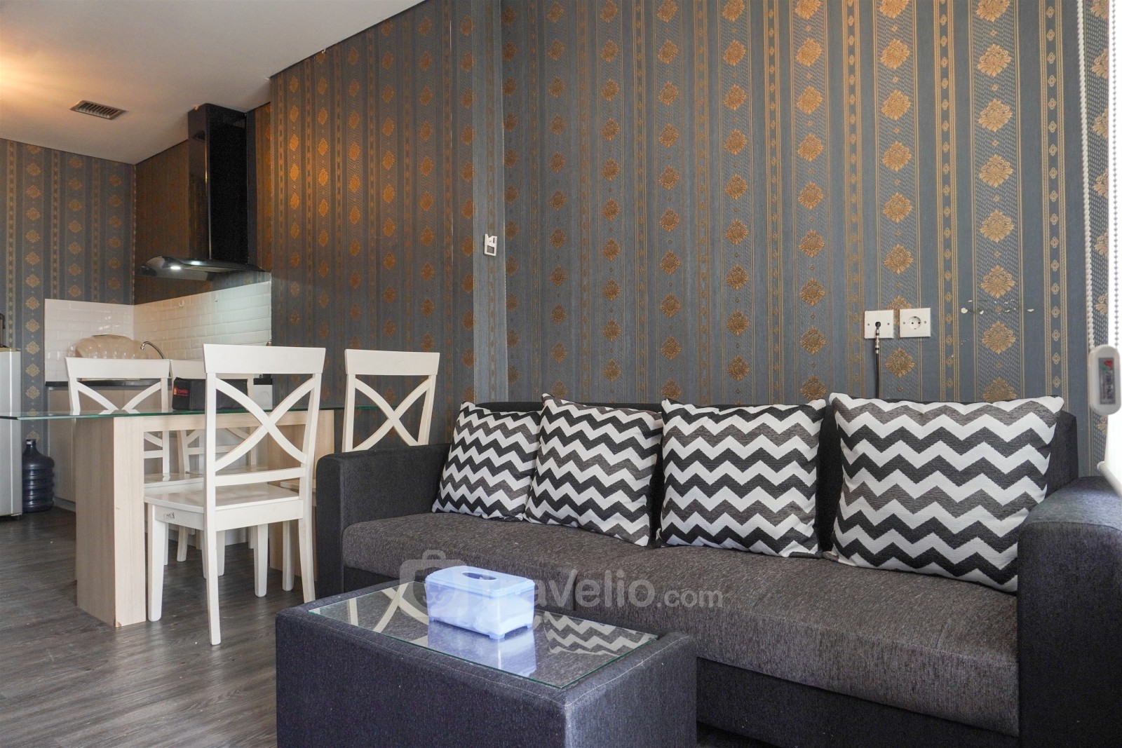 Perkenalkan, Good and Homey 2BR at Nifarro Park Apartment By Travelio. Hunian yang mengundang ini menawarkan ruang hidup yang nyaman dengan luas 51,5 meter persegi, ideal untuk keluarga kecil atau individu yang mencari suasana hangat dan ramah.