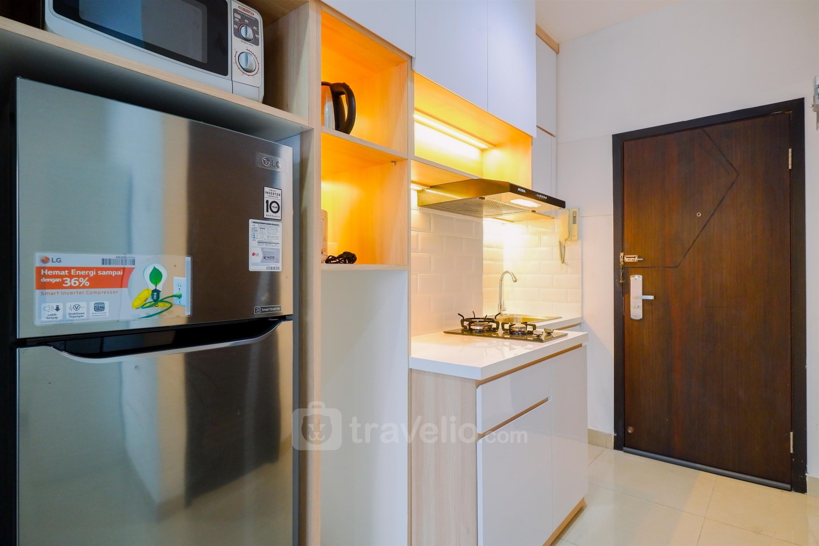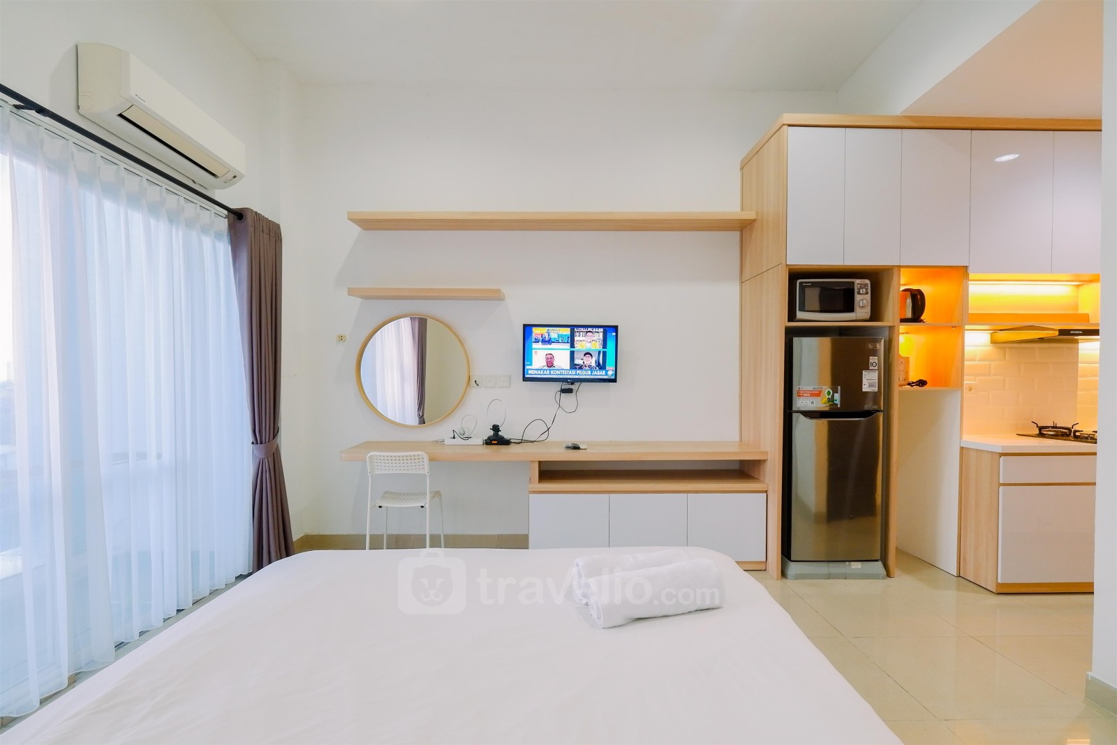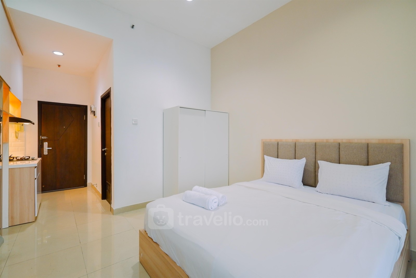 Fasilitas dalam ruangan unit apartemen milik Travelio juga sangat lengkap untuk menunjang kebutuhan anda sehari-hari. Tiap kamar tidur memiliki tipe kasur Queen Bed (160x200) yang dibalut dengan linen berkualitas hotel berbintang. Selain itu, fasilitas pendukung seperti, pemanas air juga dapat anda temukan di unit ini. Unit apartemen ini memiliki luas 27.47 sehingga membuat anda dapat beraktivitas dengan leluasa di unit apartemen ini. Apartemen milik Travelio dapat disewa secara bulanan dan tahunan.