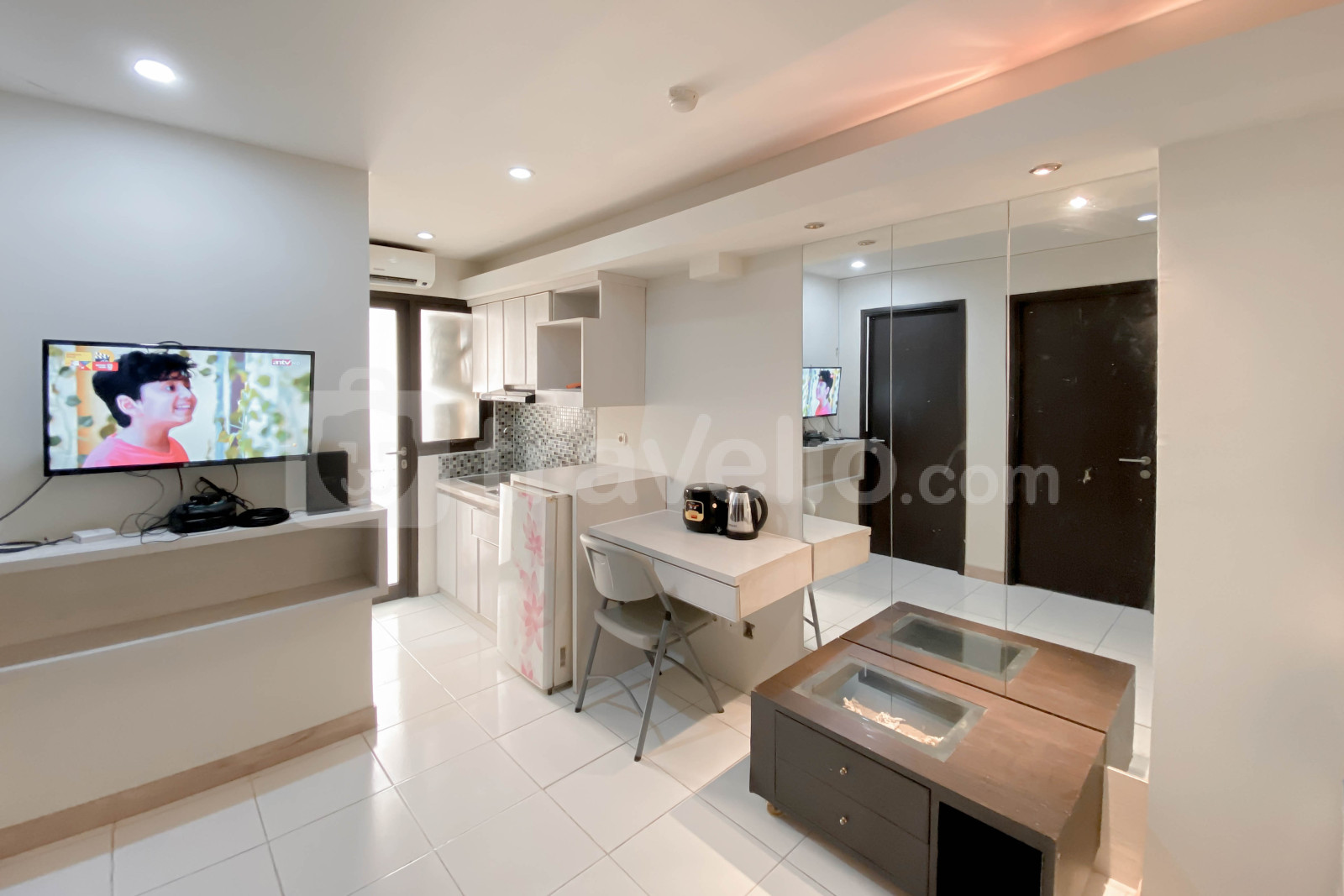 Unit ini dilengkapi dengan fasilitas penting seperti TV dan kulkas, memastikan lingkungan hidup yang nyaman. Gedung ini juga menawarkan berbagai fasilitas, termasuk keamanan 24 jam, ATM di tempat, akses kartu, CCTV di area publik, kafe, lift, layanan laundry (berbayar), taman bermain, restoran, supermarket, dan kolam renang.