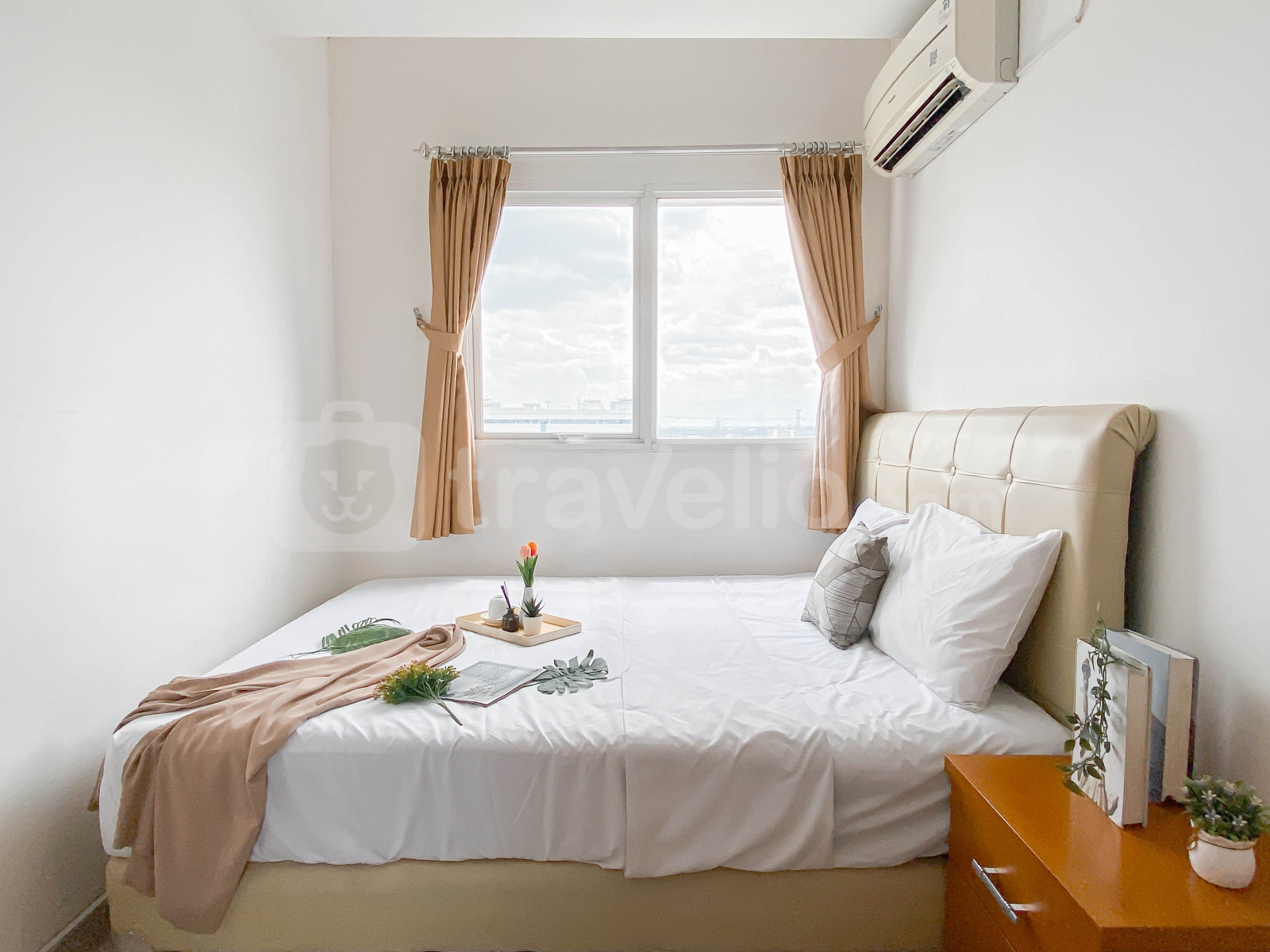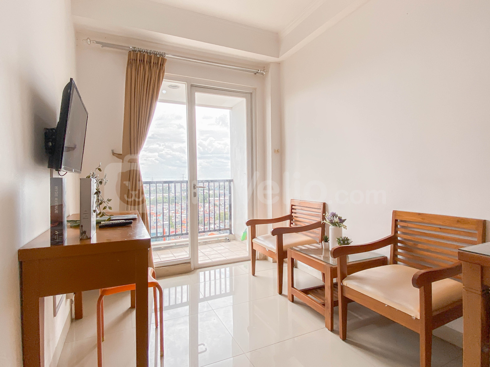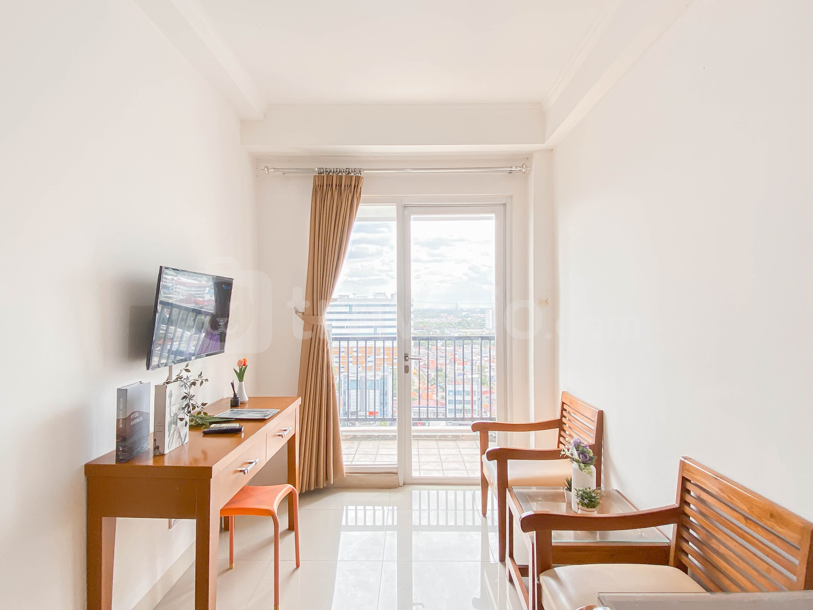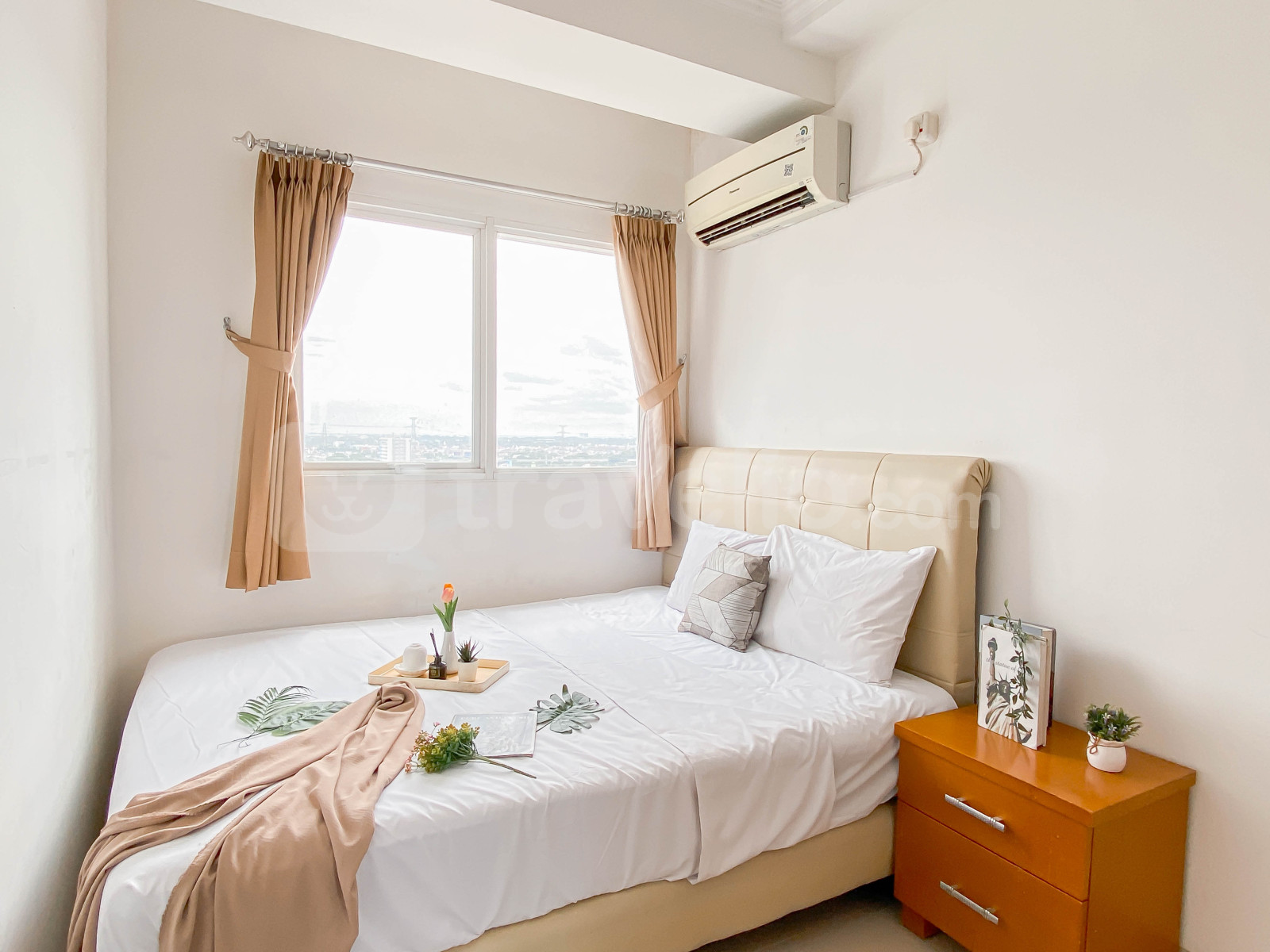 Unit apartemen ini juga menyediakan 1 kasur berukuran queen (160x200) berbalut linen kualitas hotel berbintang, pendingin ruangan, televisi, akses Wi-Fi gratis, perlengkapan mandi, peralatan makan dan memasak untuk menunjang kebutuhan harian Anda. Akomodasi ini menawarkan pemandangan kota yang luar biasa. Ruangan apartemen ini berdesain minimalis. Tersedia pemanas air di kamar mandi. Hunian ini difasilitasi dengan balkon dimana Anda bisa menikmati pemandangan sekitar. Unit apartemen ini full AC.
