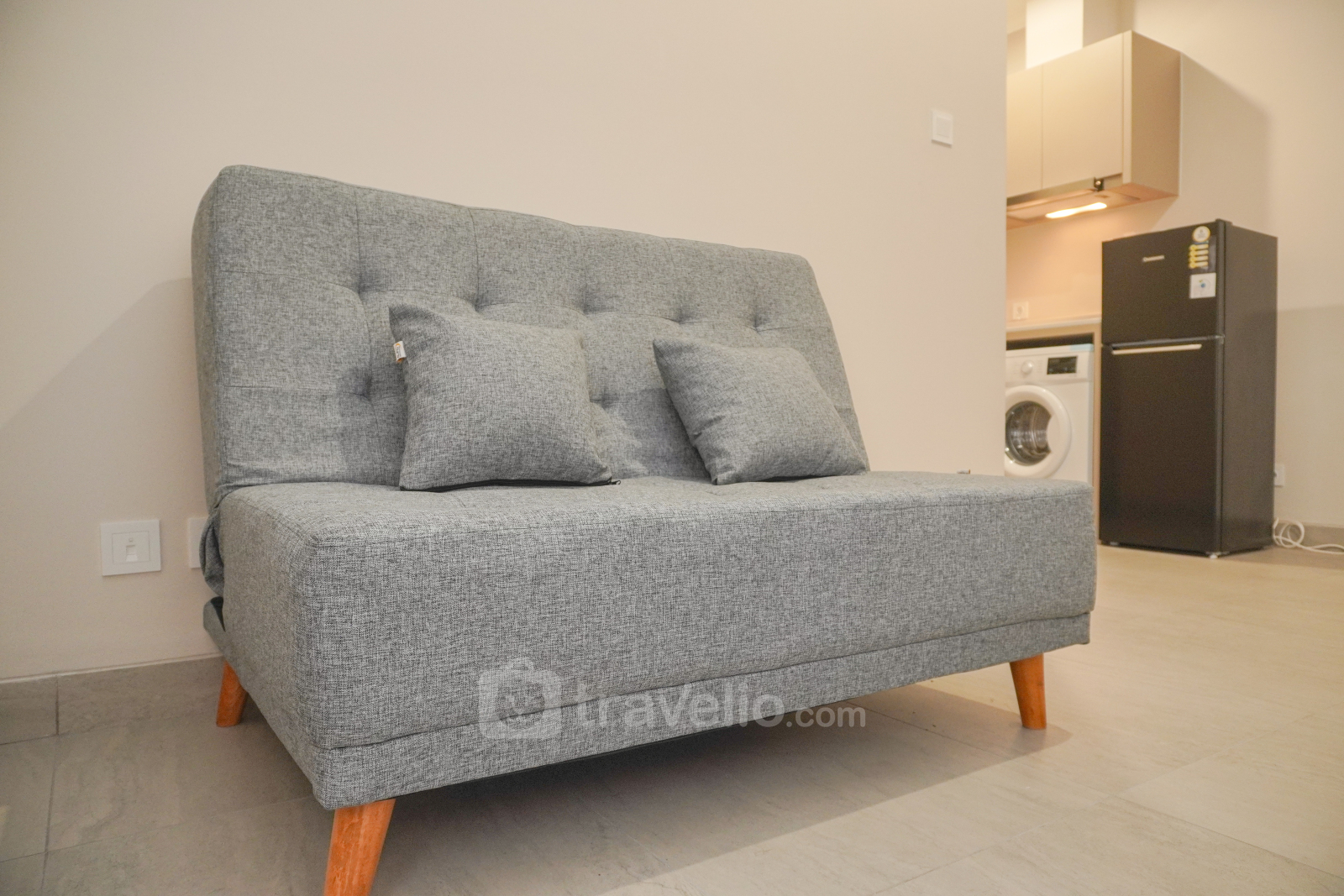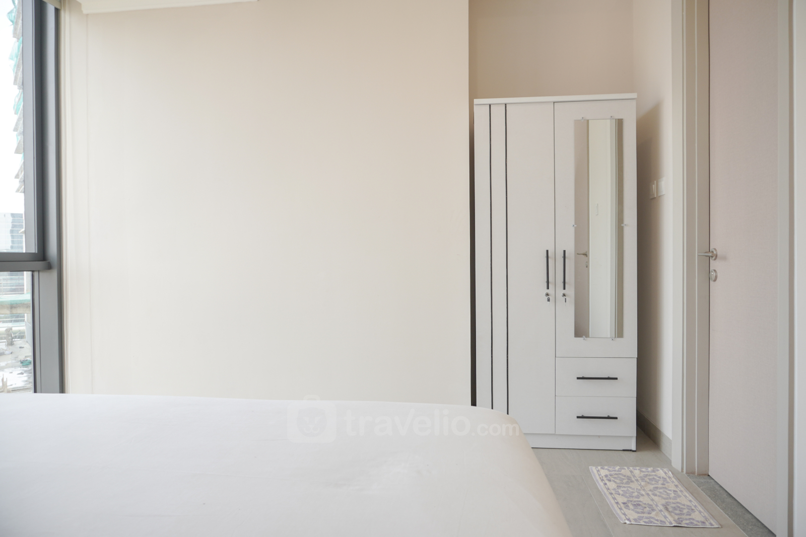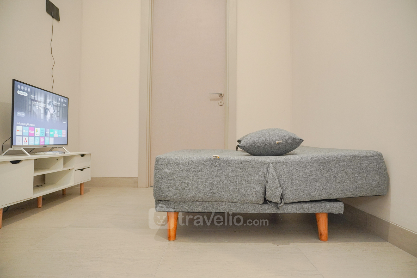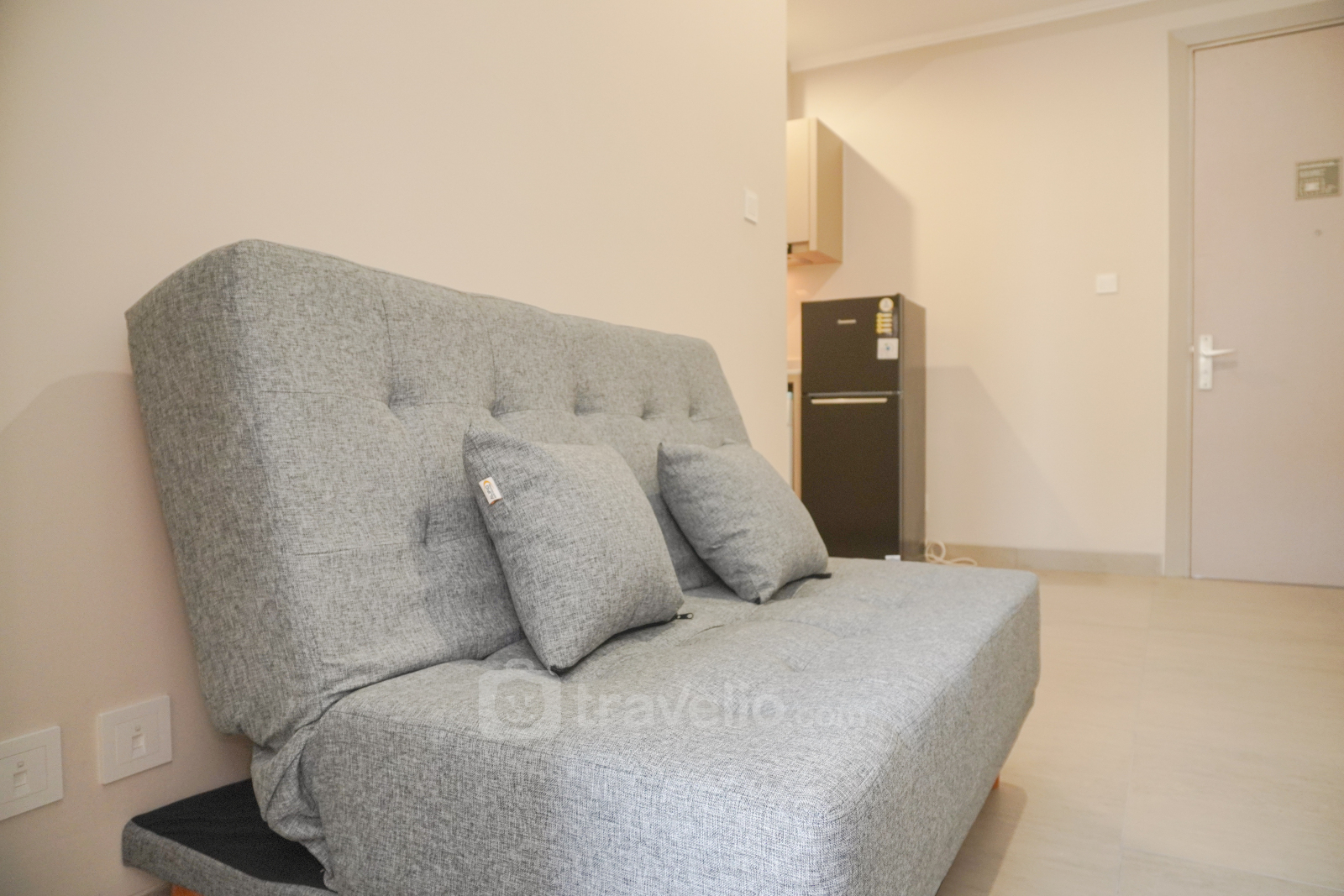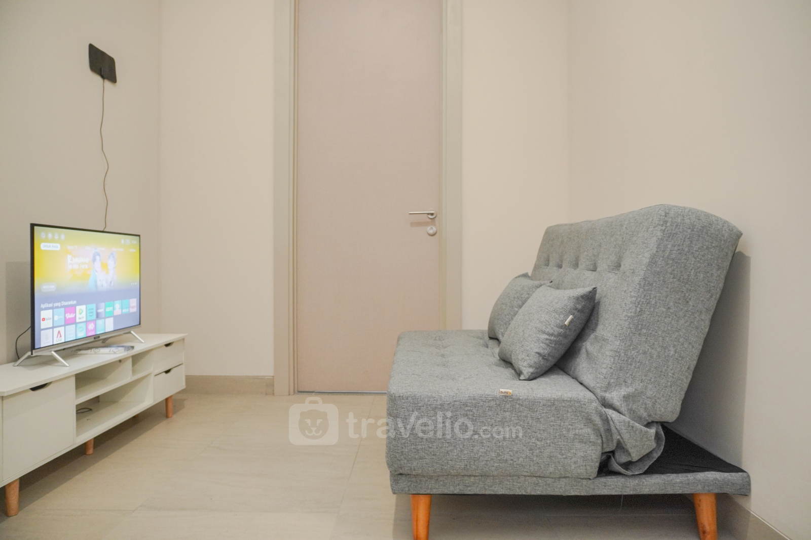 Perkenalkan, Minimalist and Comfort 1BR Menara Jakarta Kemayoran Apartment By Travelio. Apartemen ini menyediakan ruang tinggal yang tenang dengan fasilitas penting.