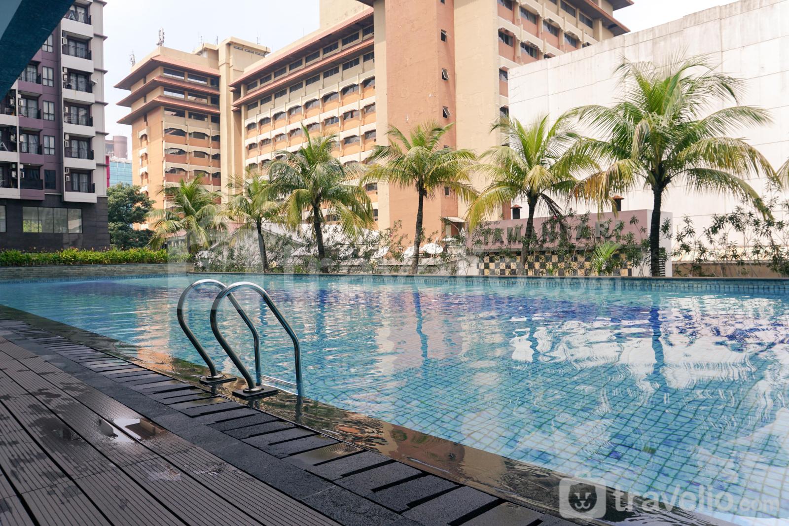 Keamanan 24 Jam, ATM, Kartu Akses, CCTV Di Area Publik, Kedai Kopi, Lift, Restoran, Toko-Toko, Kolam Renang akan membuat pengalaman menginap Anda semakin berkesan. dilengkapi dengan 1 kasur ukuran King (180x200) berbalut linen kualitas hotel berbintang, pendingin ruangan, televisi, akses Wi-Fi gratis, perlengkapan mandi, peralatan makan dan memasak.