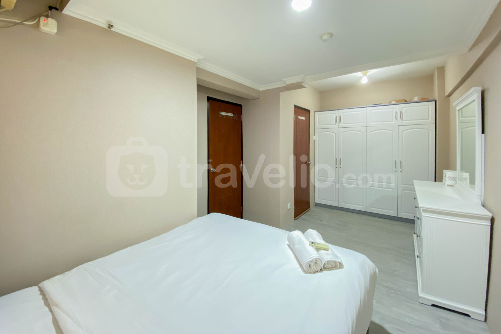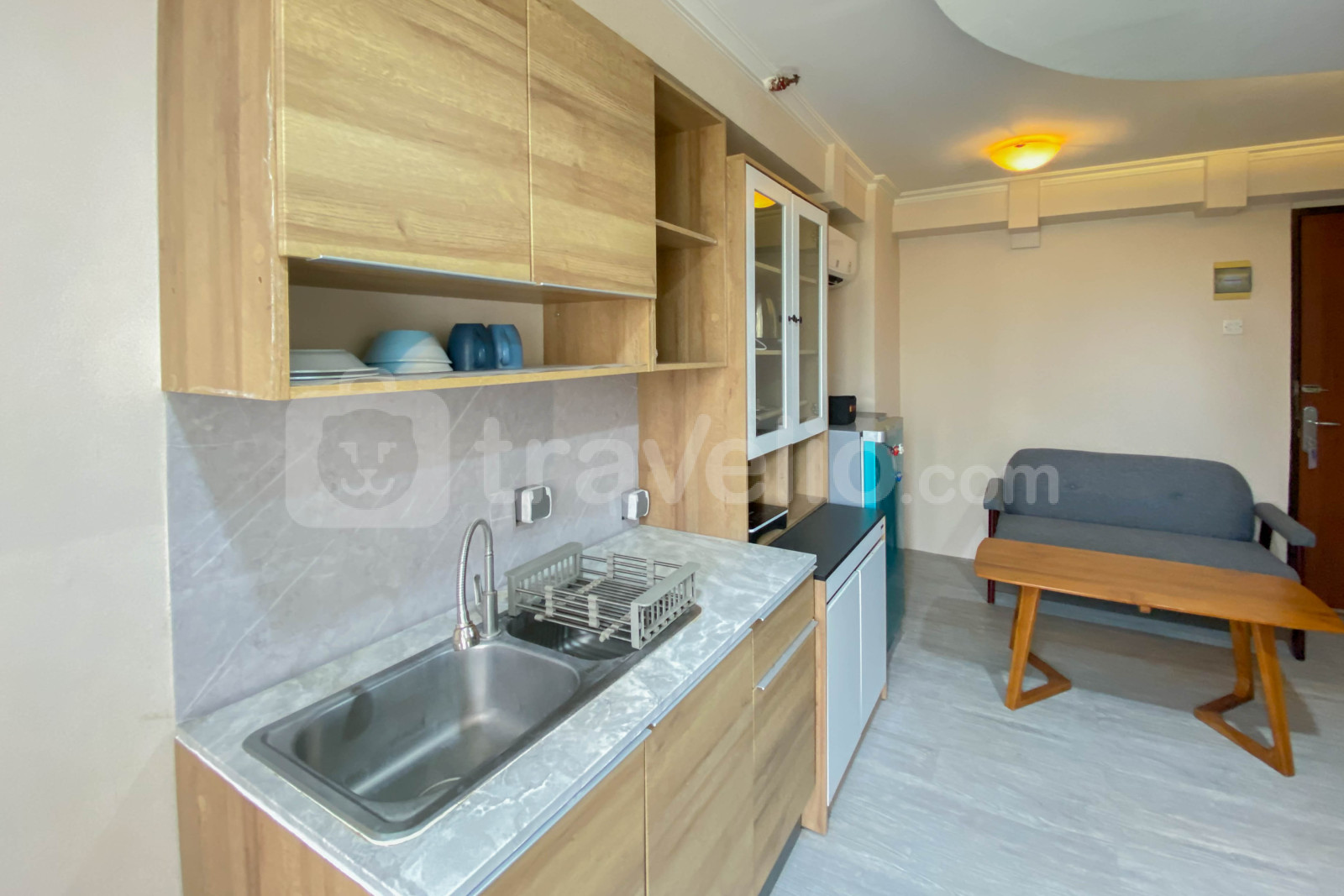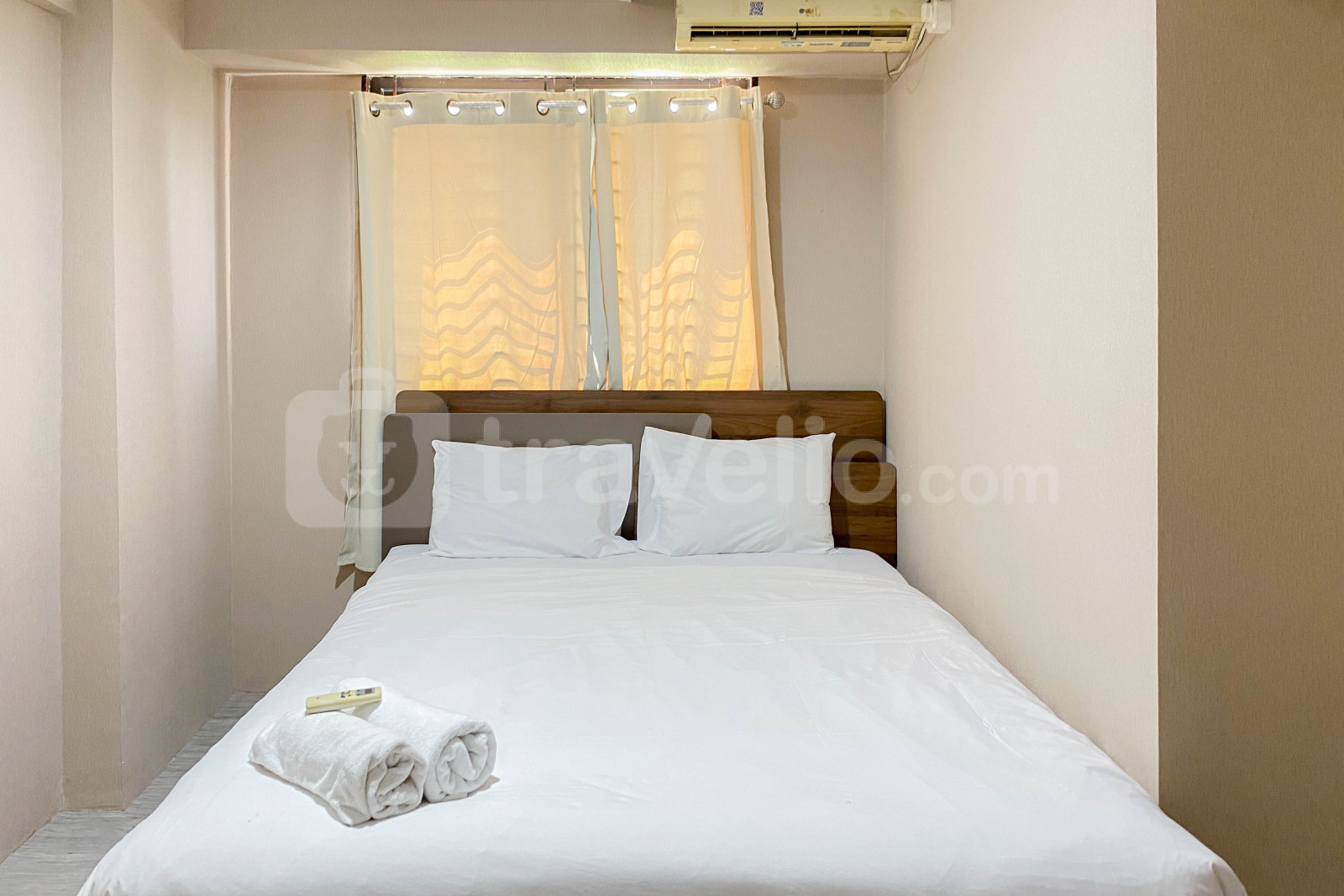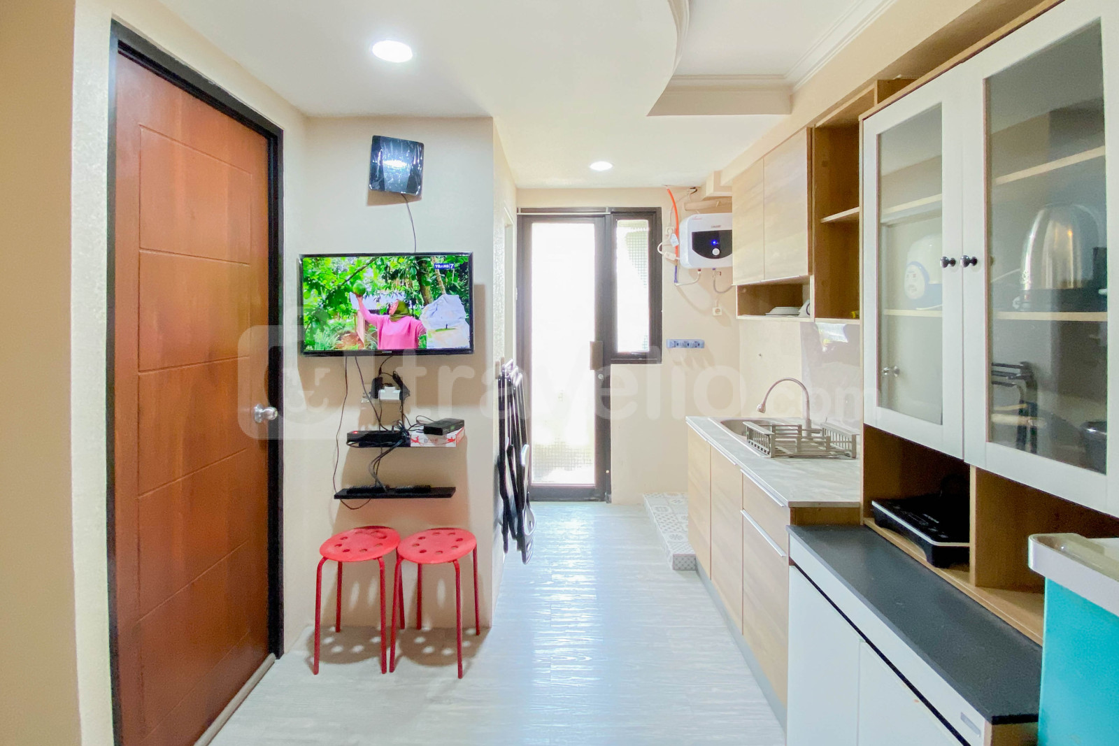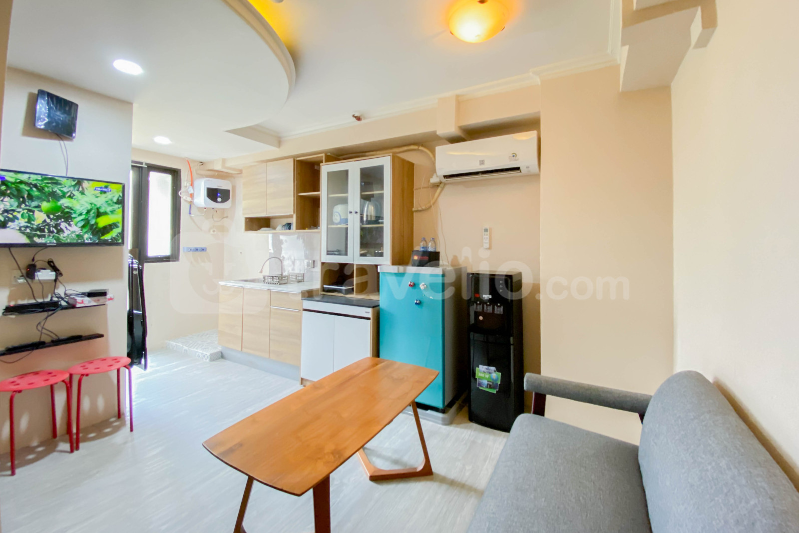 Apartemen ini memiliki 1 kamar tidur dan 1 kamar mandi, dilengkapi dengan fasilitas penting seperti TV, kulkas, dan pemanas air, menjamin pengalaman tinggal yang menyenangkan dan fungsional.