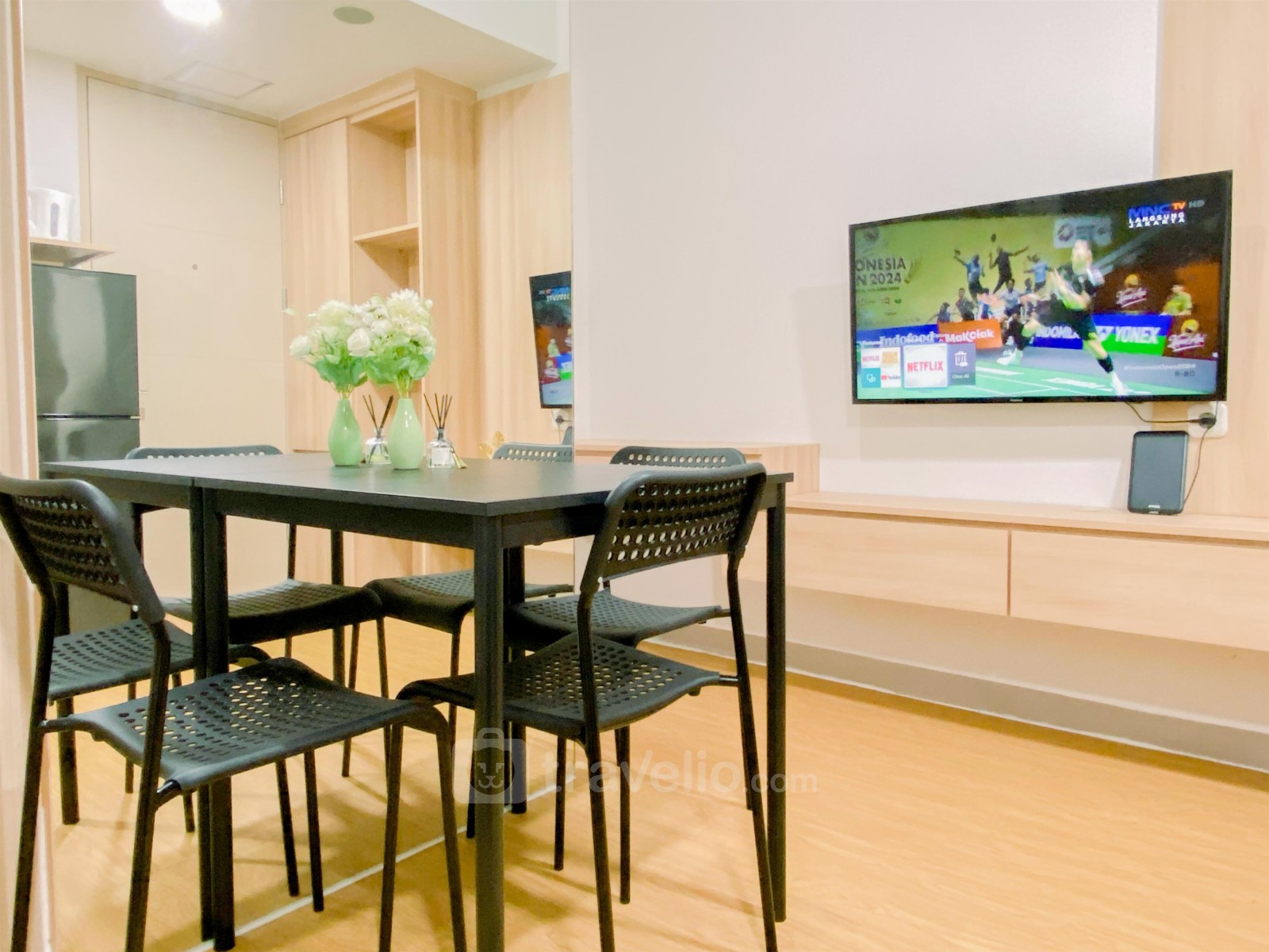 Nikmati perpaduan antara kehidupan modern dan suasana yang tenang di Modern and Serene Look 2BR Tokyo Riverside PIK 2 Apartment By Travelio, yang secara strategis terletak untuk menawarkan akses mudah ke belanja, makan, rekreasi, dan opsi transportasi penting.