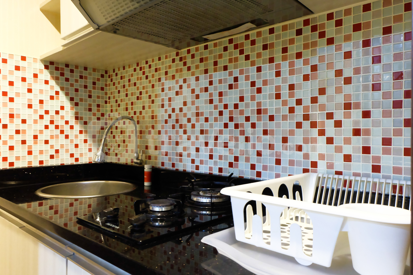 Sedangkan dapurnya sudah dilengkapi dengan kompor gas, rice cooker, kulkas, dan peralatan masak serta makan sederhana. Kamar mandinya juga sudah dilengkapi dengan peralatan mandi dan shower.