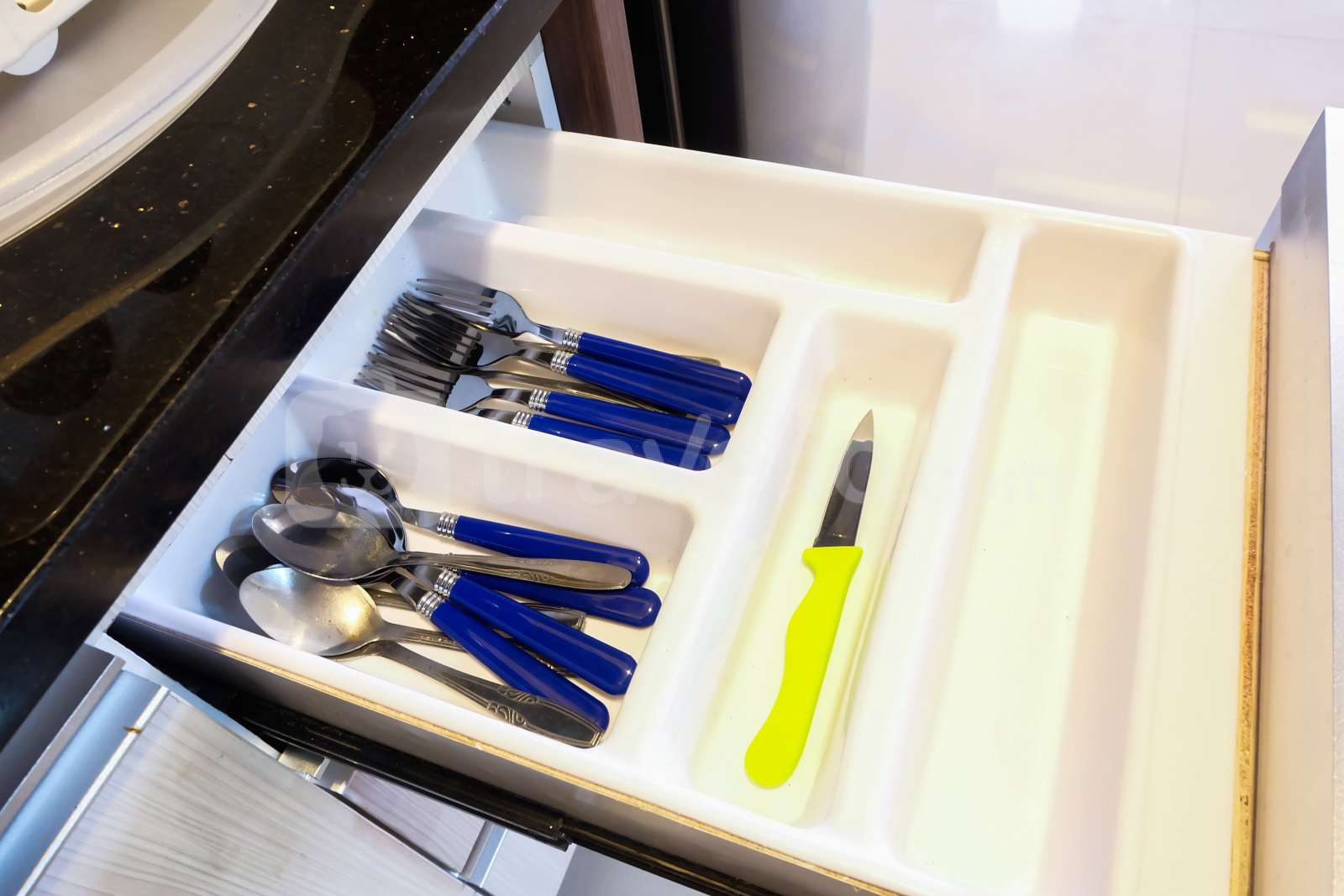 Dapur dilengkapi dengan kompor gas, rice cooker, kulkas, dan peralatan masak seperti penggorengan, panci, spatula, serta perlengkapan makan juga sudah disediakan. Sedangkan kamar mandinya sudah difasilitasi dengan peralatan mandi, shower, jet washer, dan wastafel.