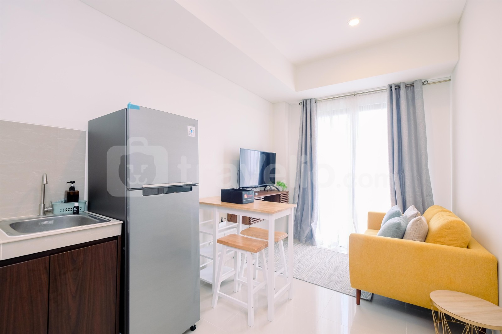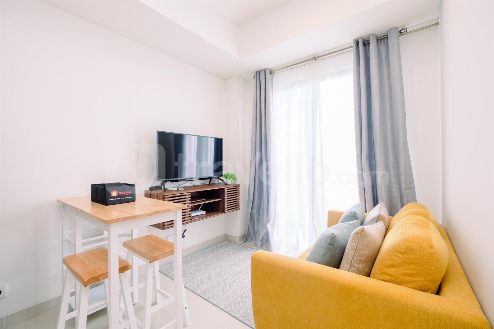 Fasilitas dalam ruangan unit apartemen milik Travelio juga sangat lengkap untuk menunjang kebutuhan anda sehari-hari. Setiap kamar tidur memiliki tipe kasur Queen Bed (160x200) and Single Bed (90x200) yang dibalut dengan linen berkualitas hotel berbintang. Selain itu, fasilitas pendukung seperti pemanas air juga dapat anda temukan di unit ini. Unit apartemen ini memiliki luas 54.43 meter persegi sehingga membuat anda dapat beraktivitas dengan leluasa di unit apartemen ini. Apartemen milik Travelio dapat disewa secara harian, bulanan, dan tahunan.