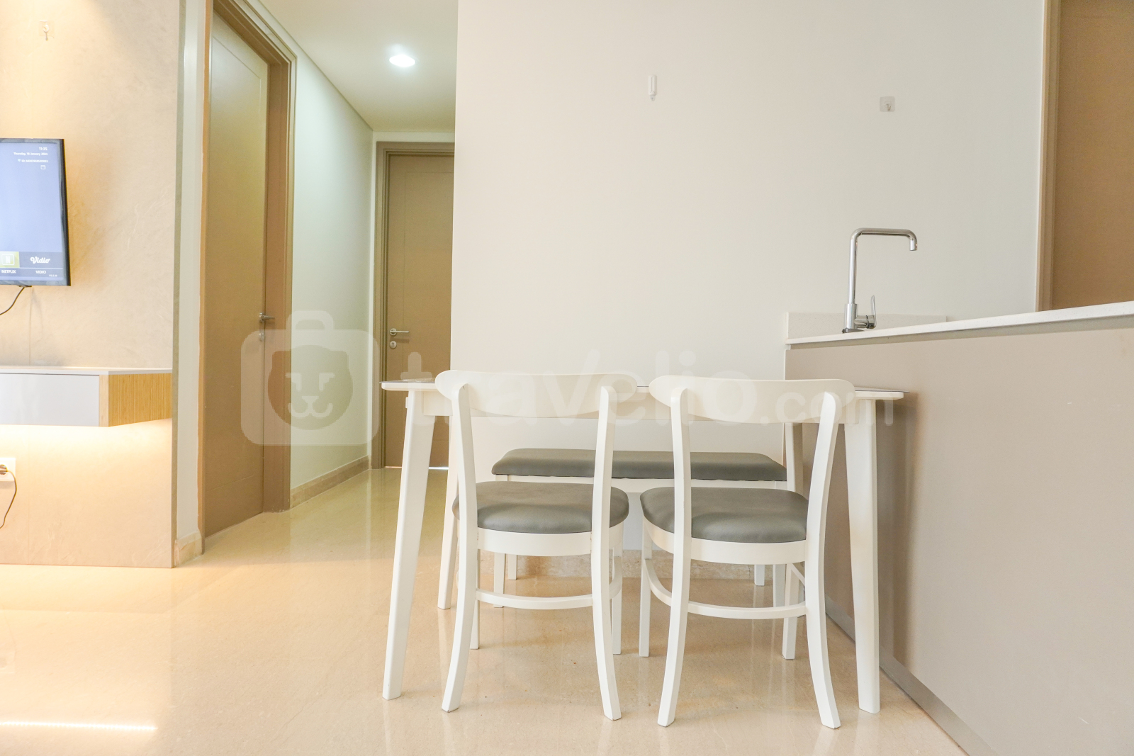 Memperkenalkan Modern Look and Nice 2BR Gold Coast Apartment near PIK By Travelio. Unit 2 kamar tidur ini, dengan desain kontemporer dan fasilitas lengkap, menawarkan pengalaman hidup yang luas dan menyenangkan bagi mereka yang mencari akomodasi berkualitas di dekat PIK.