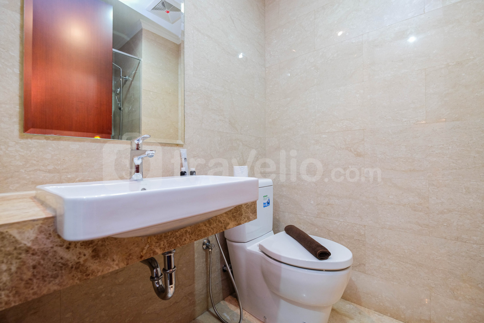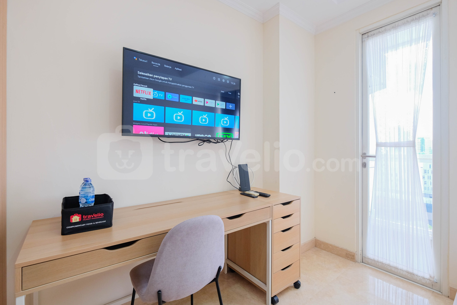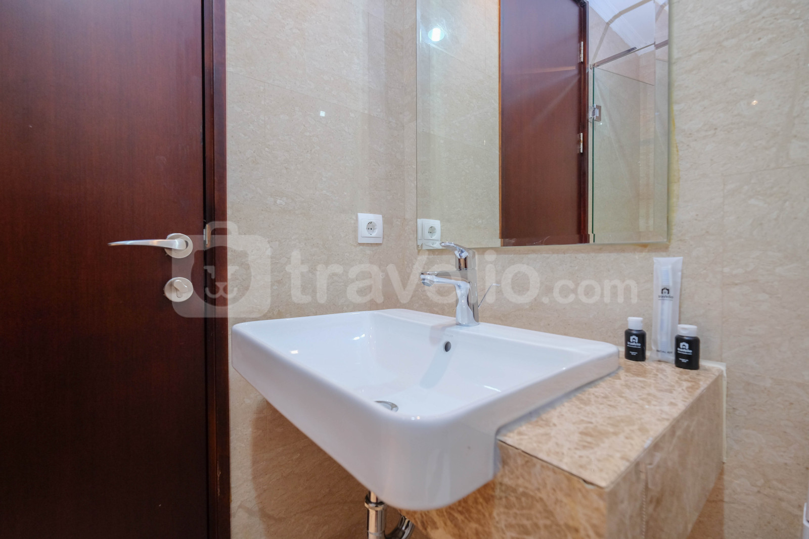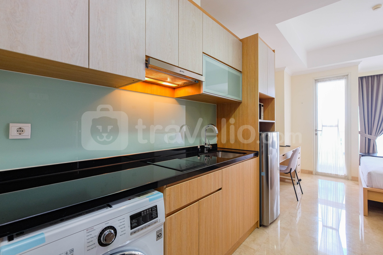 Perkenalkan, Modern Look Studio Room Menteng Park Apartment By Travelio. Studio ini menampilkan kamar tidur yang nyaman, kamar mandi yang lengkap dengan peralatan modern, dan luas 28 meter persegi.