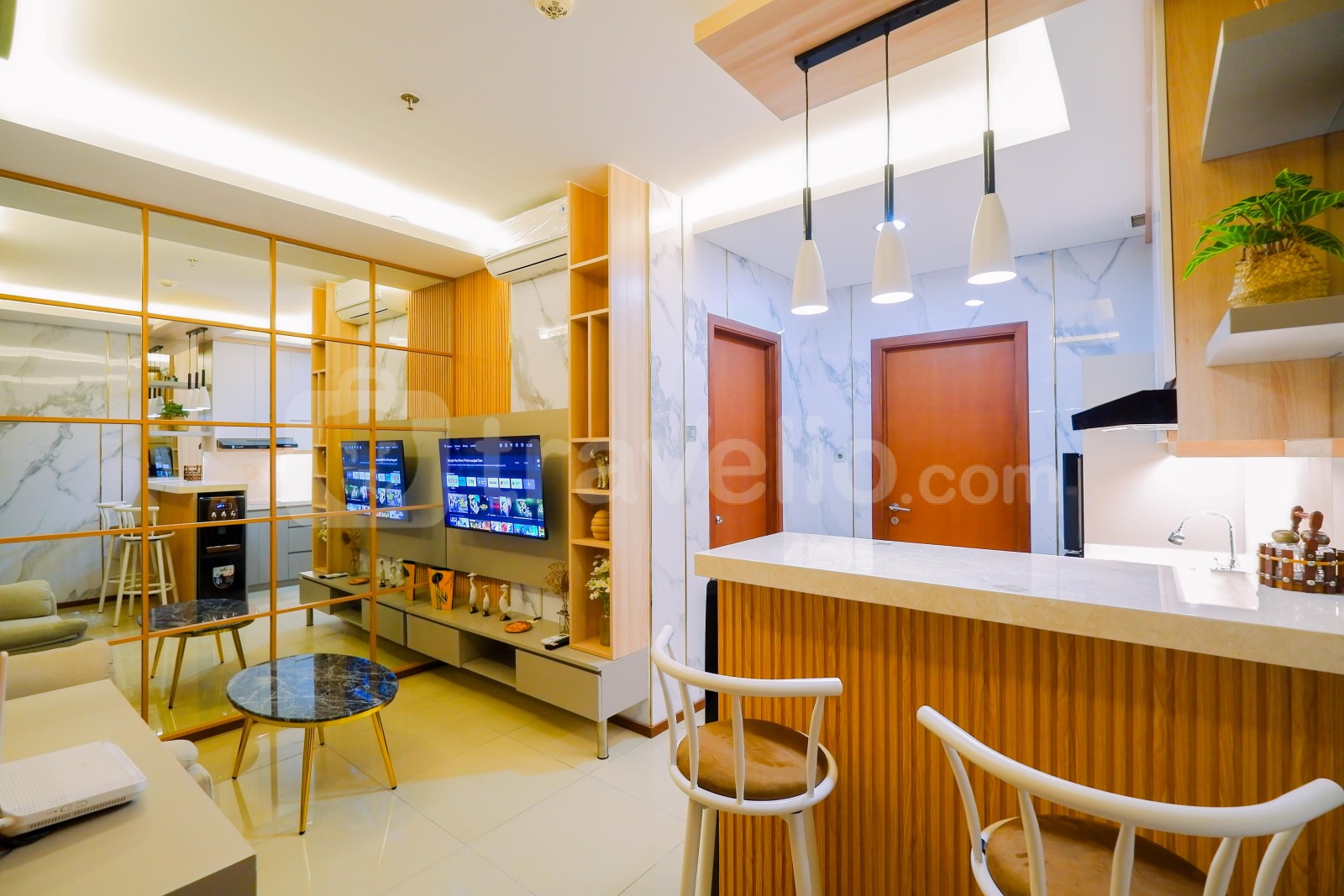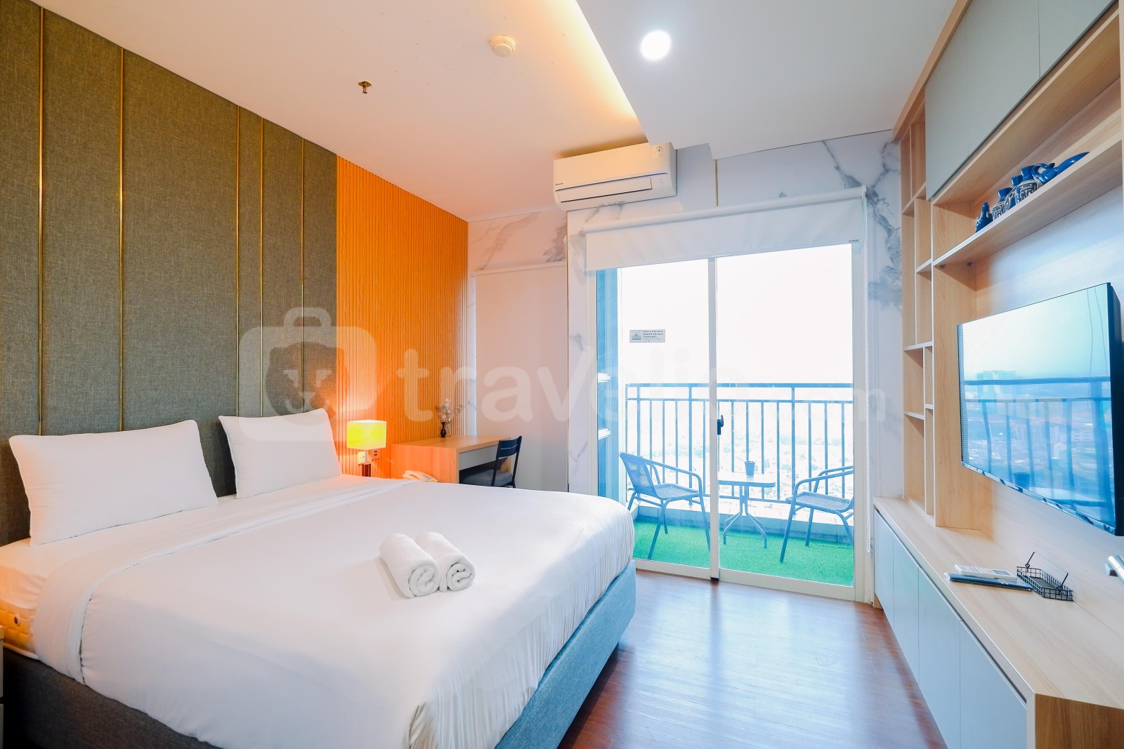 Selain itu, fasilitas dalam ruangan seperti 1 kasur dengan masing-masing ukuran King Bed (180x200) berbalut linen kualitas hotel berbintang, pendingin ruangan, televisi, akses Wi-Fi gratis, perlengkapan mandi, peralatan makan dan memasak juga tersedia. Apartemen dengan ini dihiasi dengan dekorasi bergaya Modern. Dari hunian seluas 37 ini, Anda bisa melihat City View yang indah. Nice and Private 1BR Apartment at Thamrin Residence By Travelio bisa disewa secara bulanan dan tahunan.