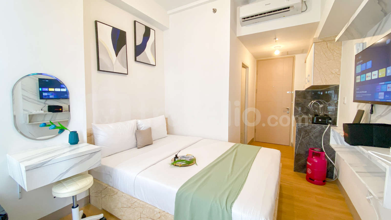Unit studio yang nyaman di Tokyo Riverside PIK 2 ini menawarkan ruang seluas 21 sqm yang dirancang dengan baik, memberikan lingkungan hunian yang nyaman dan praktis. Unit ini dilengkapi dengan fasilitas penting seperti TV, kulkas, pemanas air, lemari dapur, kain dapur, dan gunting dapur, membuatnya cocok untuk kebutuhan hidup sehari-hari. Berlokasi di Lemo, Kabupaten Tangerang, Banten, apartemen ini menawarkan lokasi strategis di kawasan PIK 2 yang berkembang, dikenal dengan infrastruktur modern dan berbagai tempat rekreasi.