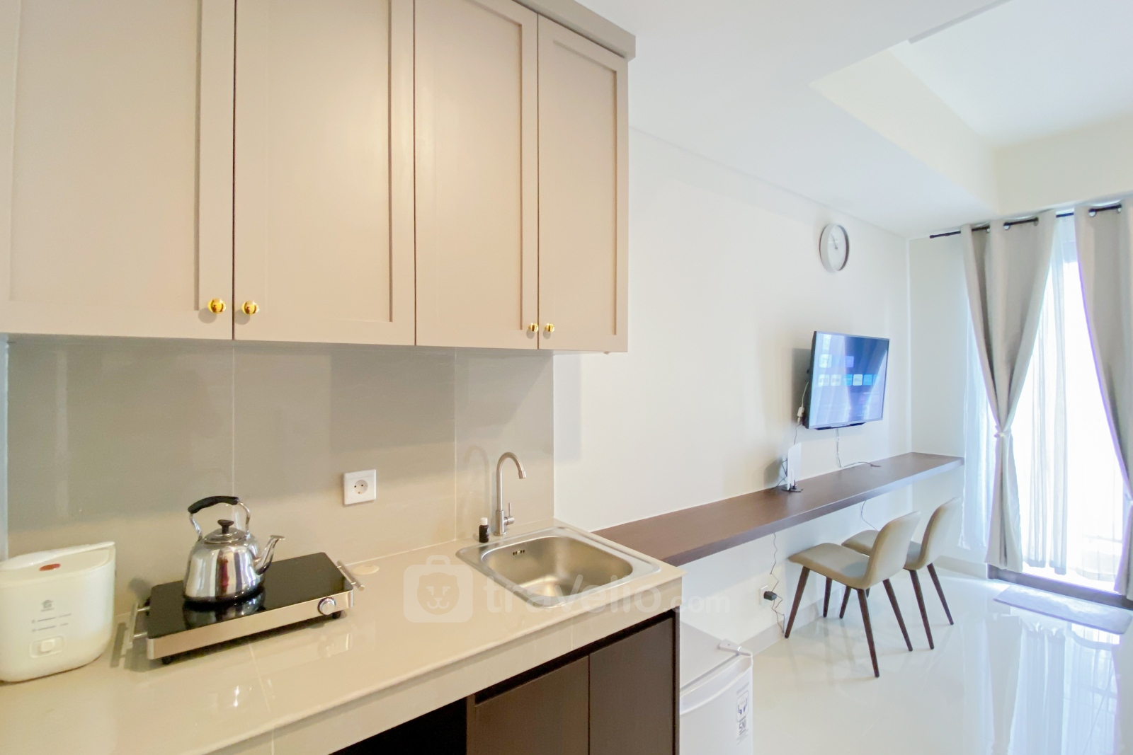 Pilihan unit ideal yang nyaman dengan kemudahan akses ke area publik dapat menjadi salah satu pilihan menginap anda yang ditawarkan pada unit Simply Look Studio Room Vasaka Solterra Apartment By Travelio ini.