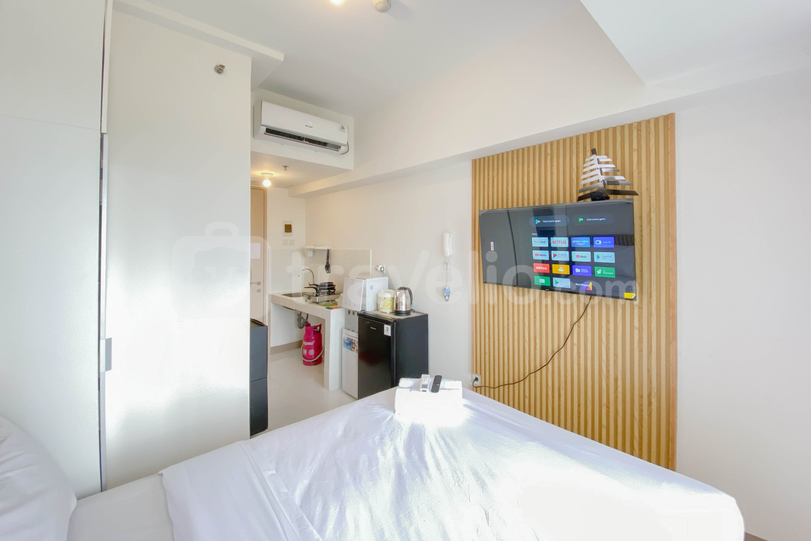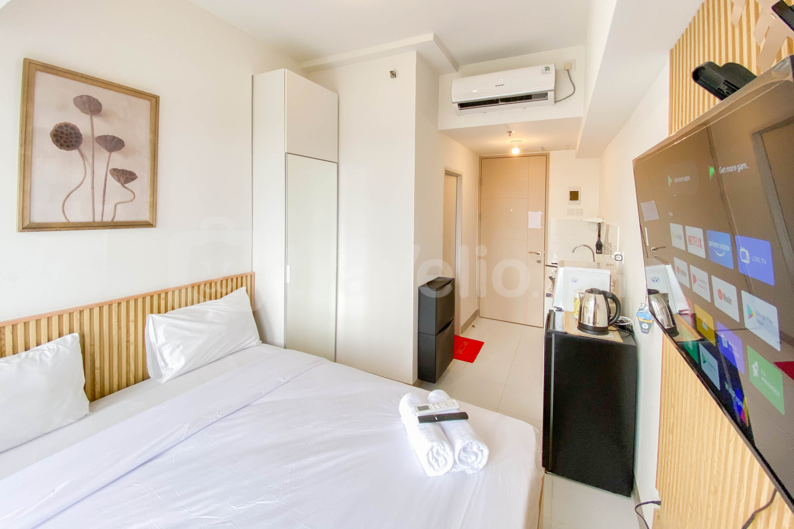 Unit apartemen bertipe Studio ini memiliki desain interior Modern yang akan membuat anda semakin nyaman. Unit apartemen ini memiliki fasilitas dalam ruangan yang lengkap, seperti pemanas air. Unit ini kasurnya dibalut dengan linen berkualitas hotel berbintang lima. Selama anda menginap di unit ini, anda akan merasakan kenyamanan yang tidak anda dapati di hunian lainnya. Sewa apartemen di Travelio dapat dilakukan secara bulanan dan tahunan. Tunggu apa lagi? Segera sewa apartemen di Travelio!