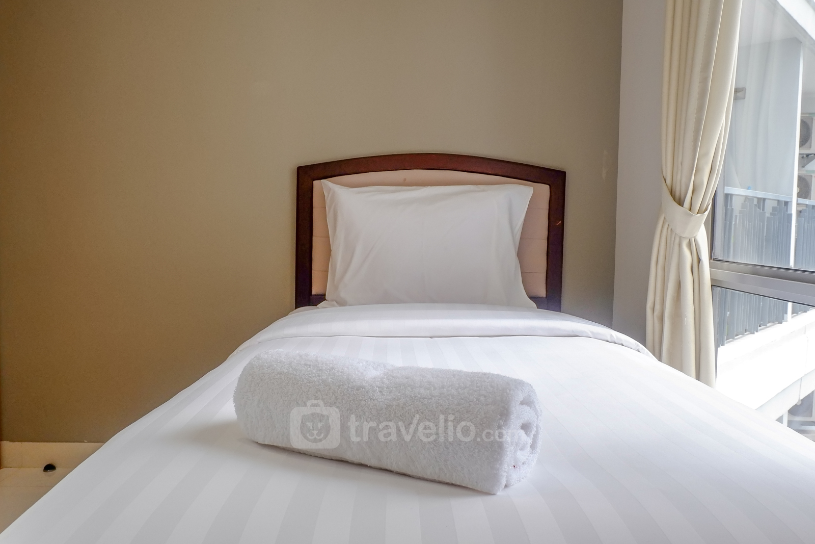 Berdesain modern kontemporer, unit apartemen bertipe dua kamar tidur ini dilengkapi dengan AC, TV, serta kasur ukuran queen pada kamar tidur utama serta single pada kamar tidur kedua. Terdapat jendela besar pada kamar tidur dan ruang tengahnya sehingga ruangan apartemen nampak lebih terang dan luas.